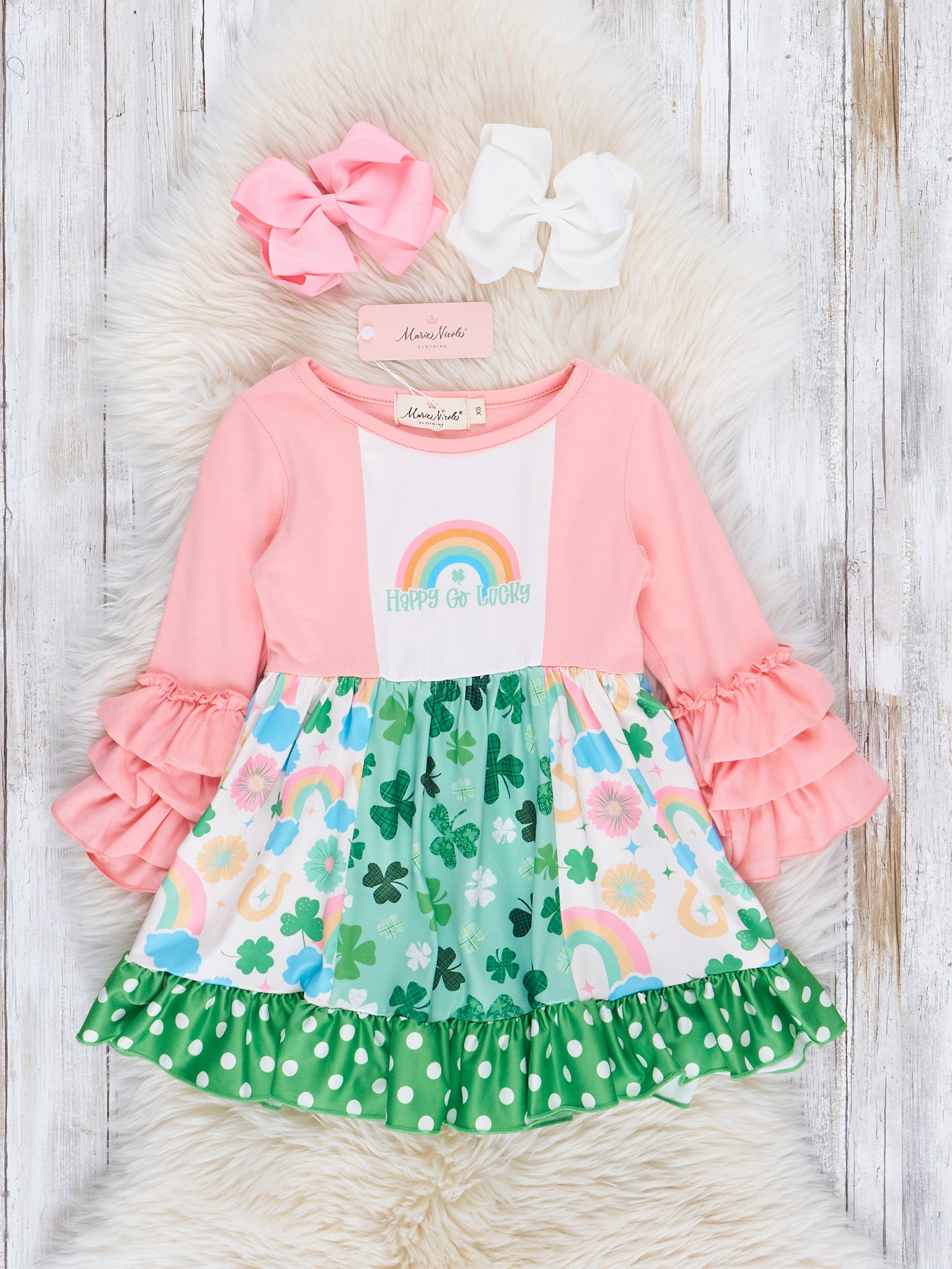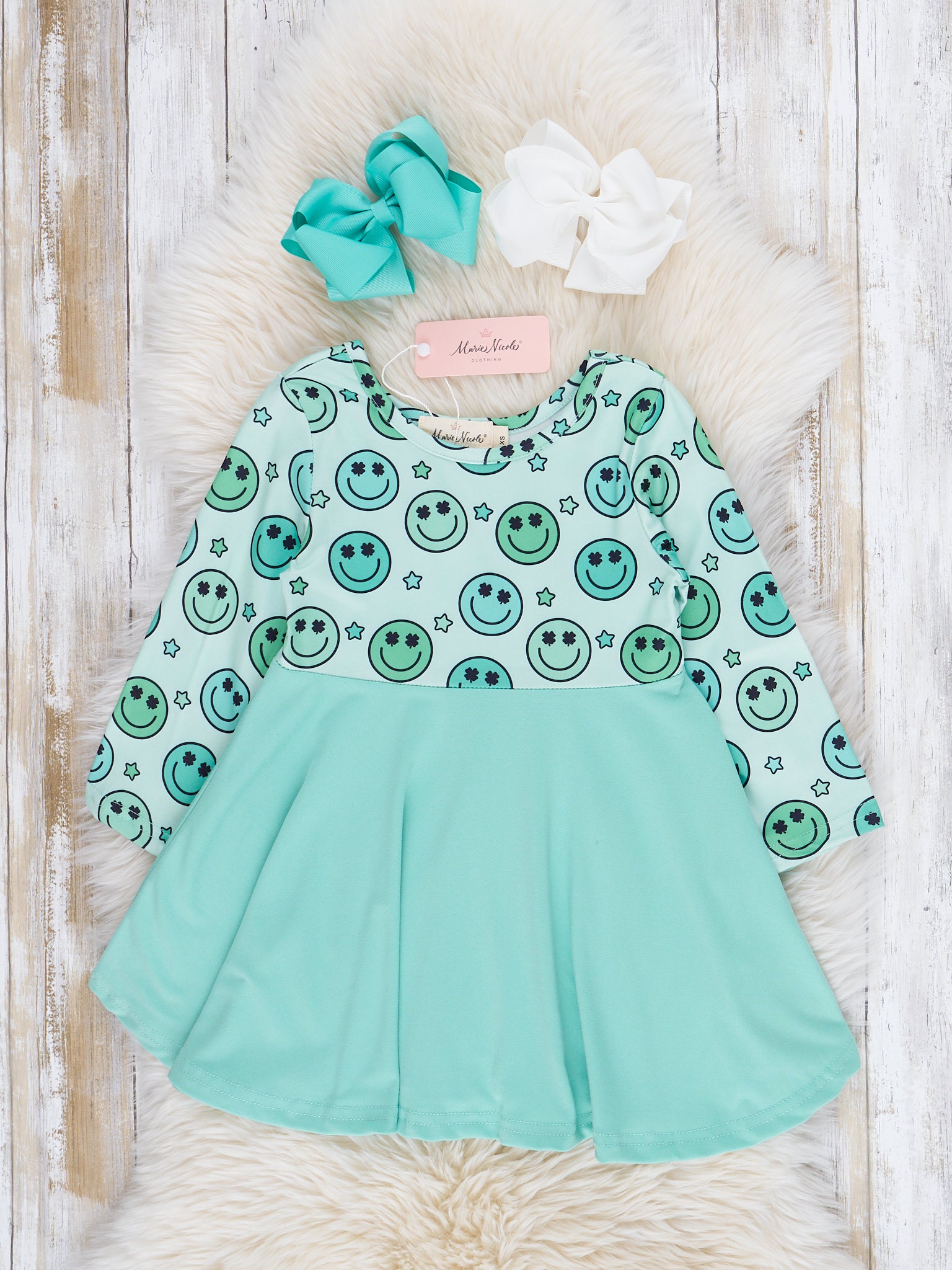 Happy Lucky Shamrocks Embroidered Cotton Dress