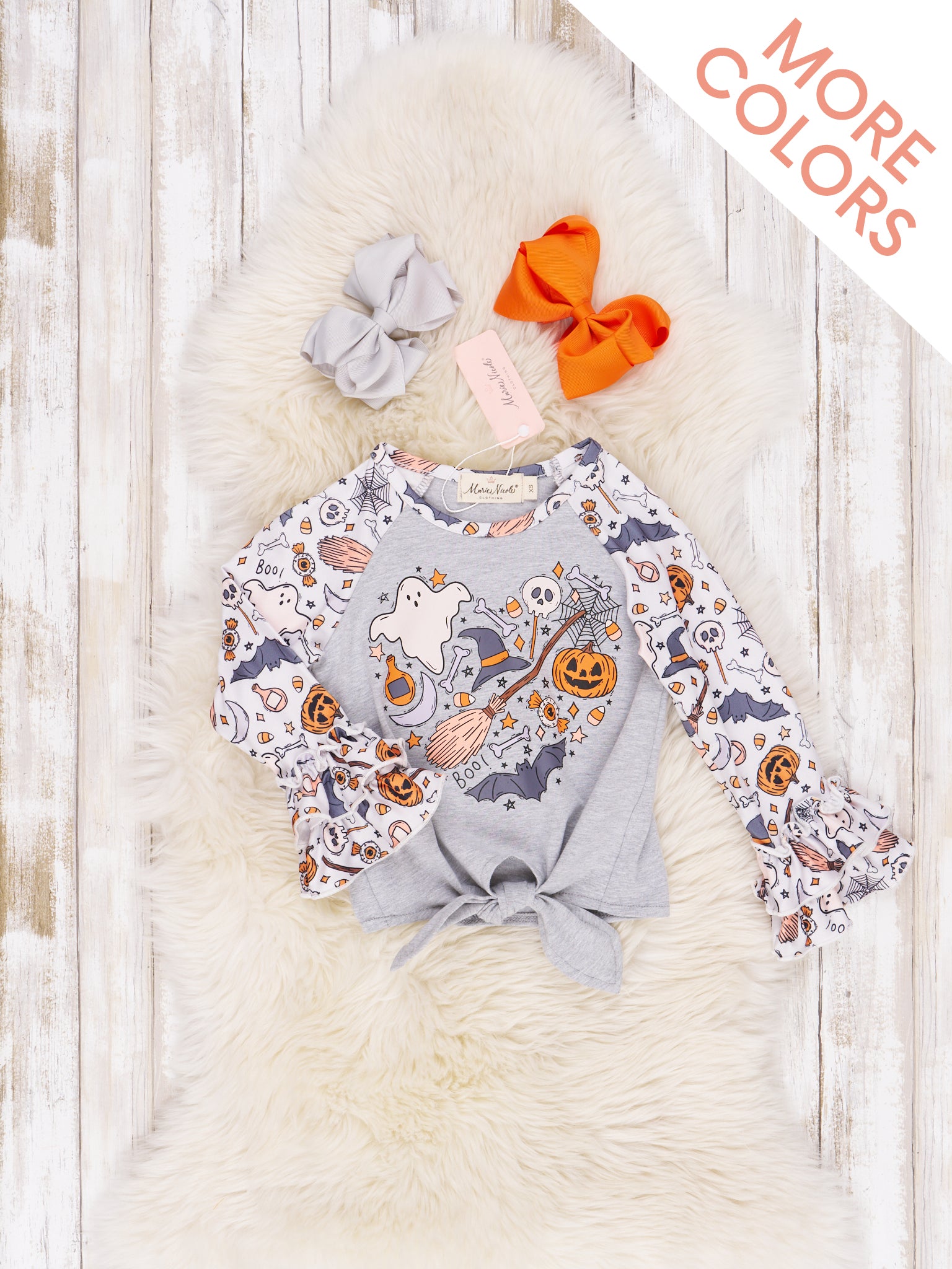 October Dreams Raglan Autumn Ruffle Tie Shirt