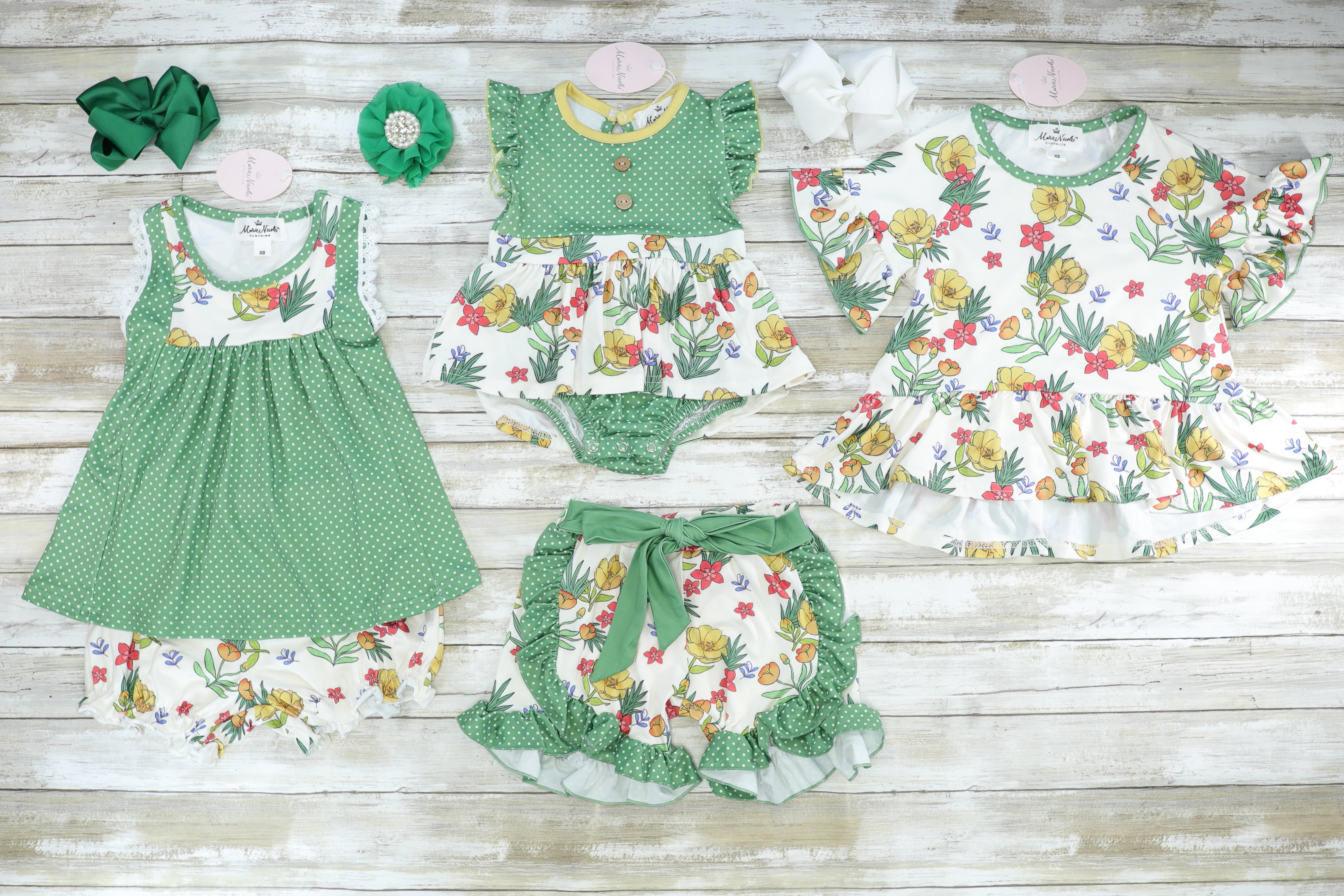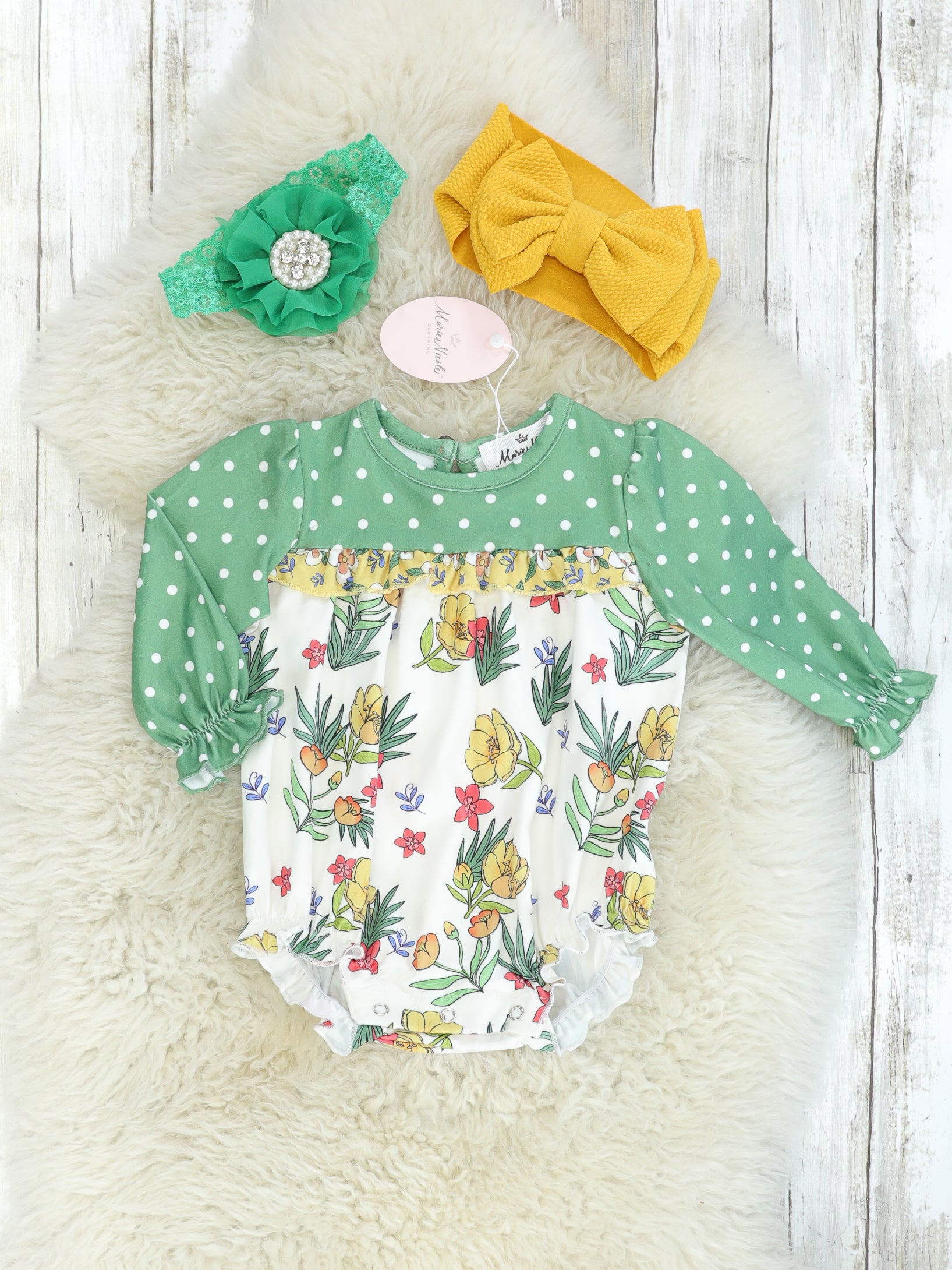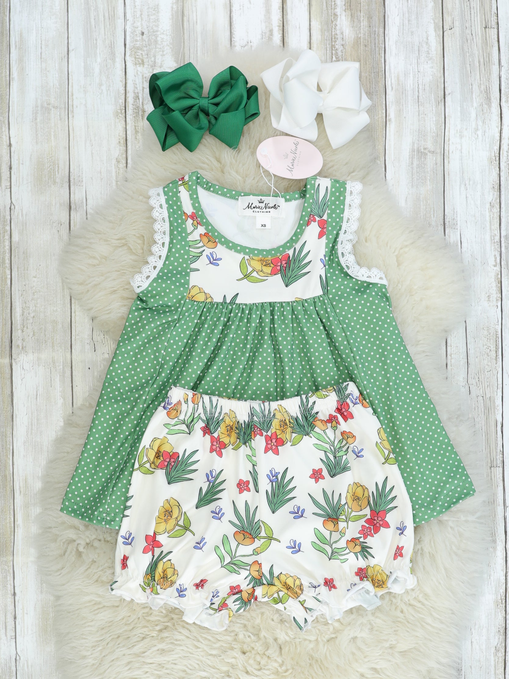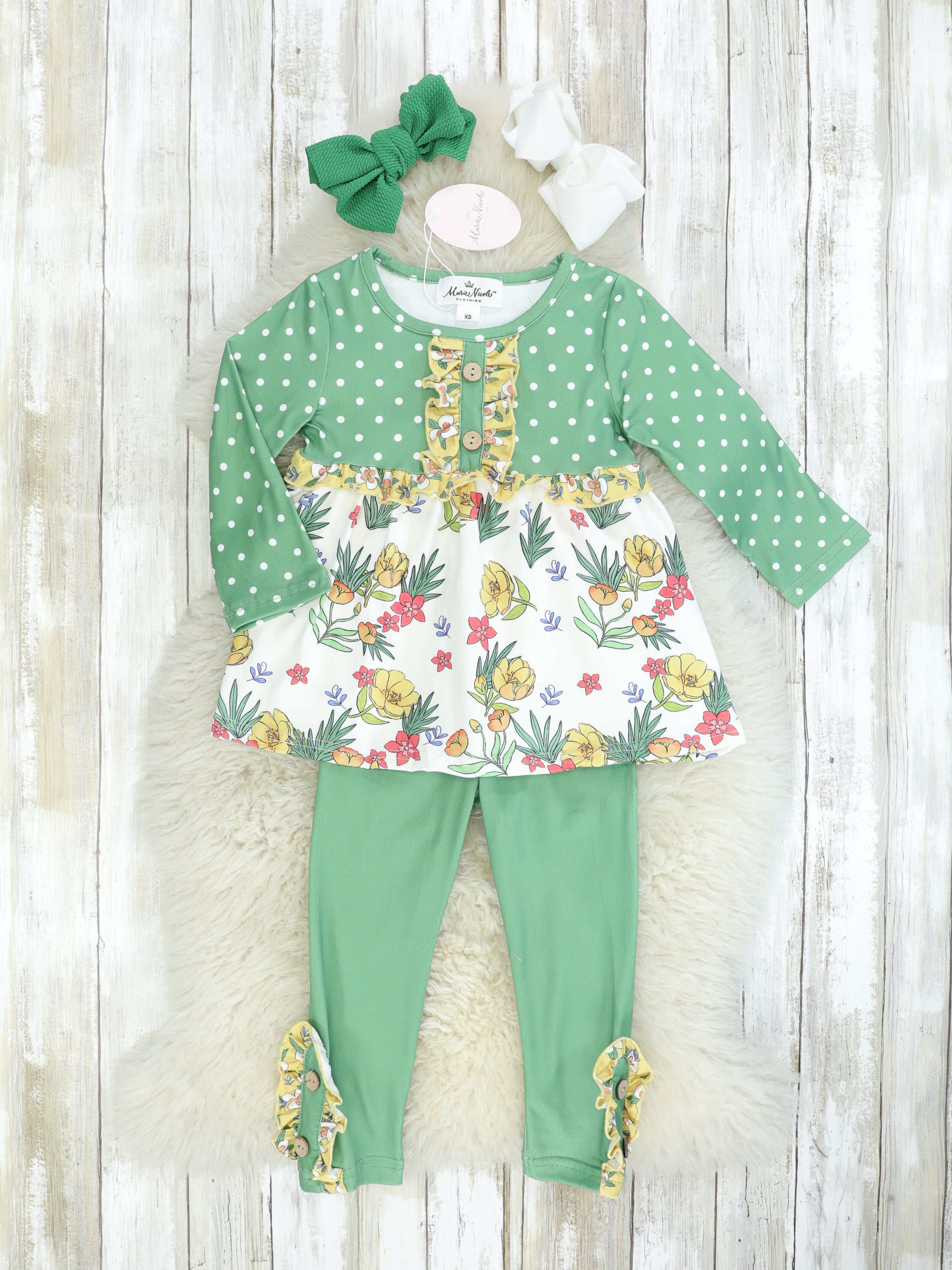 Olive Floral Long Sleeve Top & Bottoms Outfit