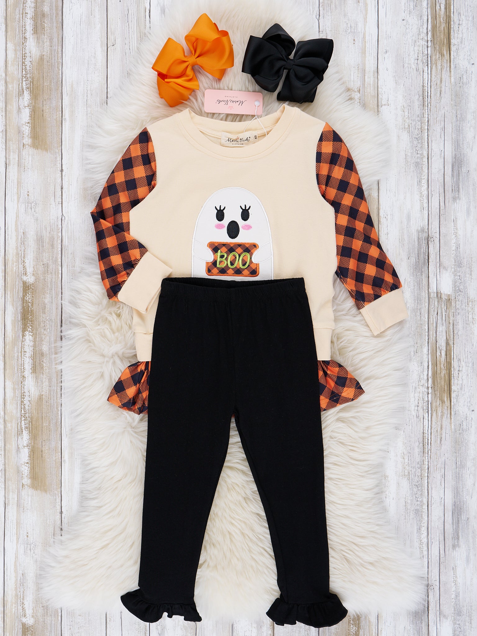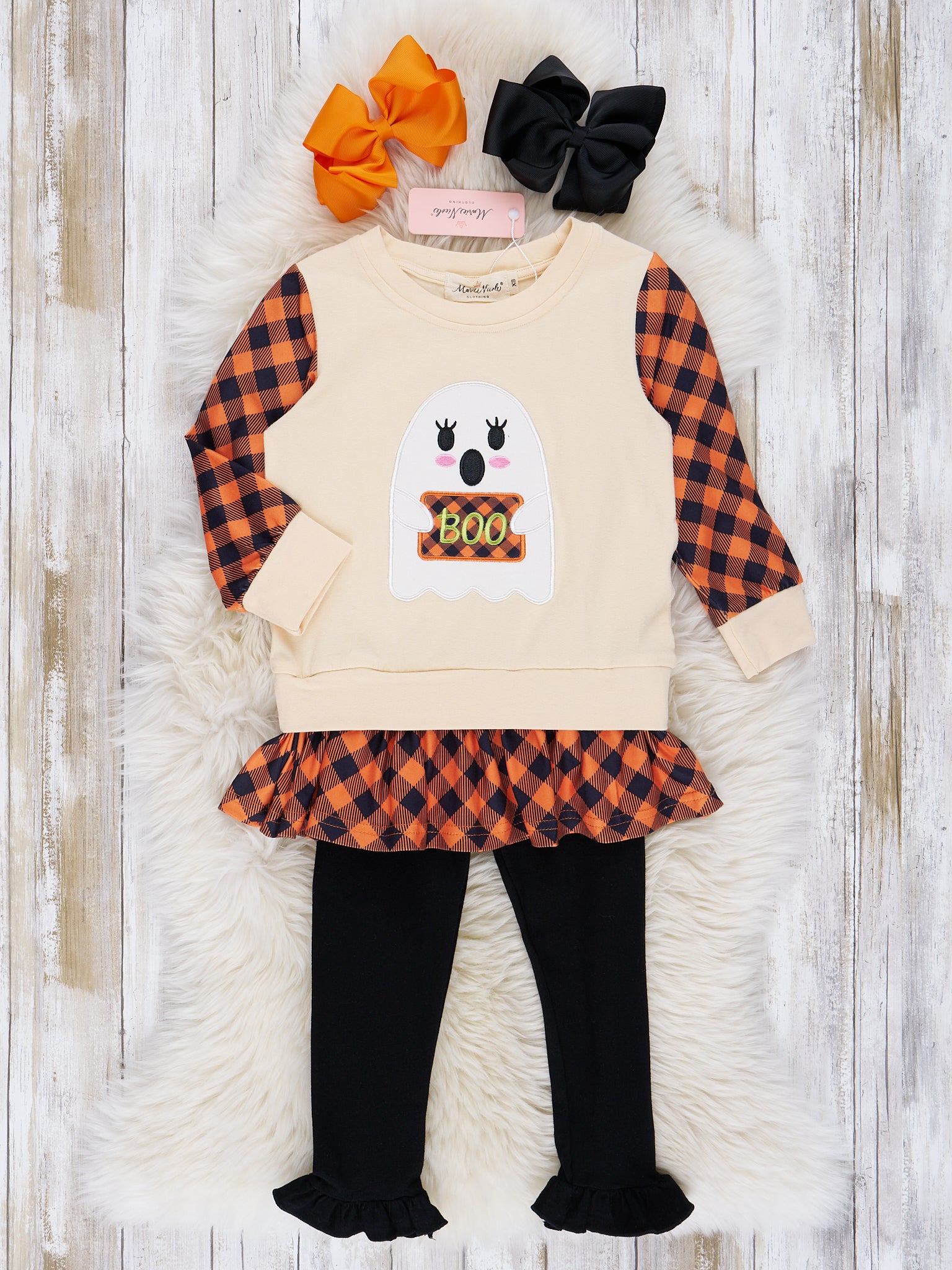 Home › Orange Cream & Black Plaid Ghost Sister Set