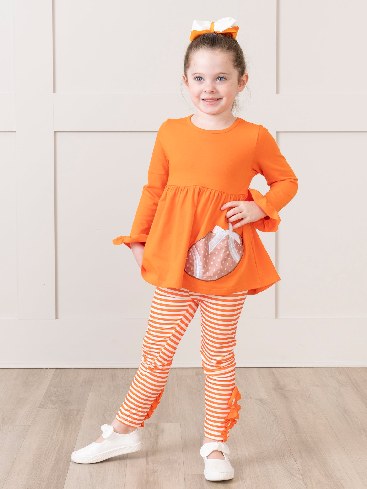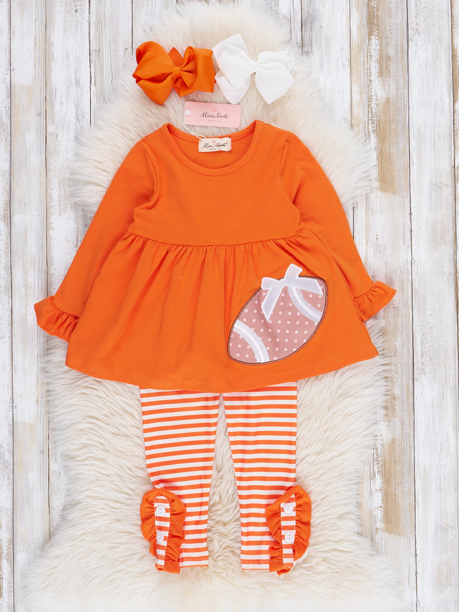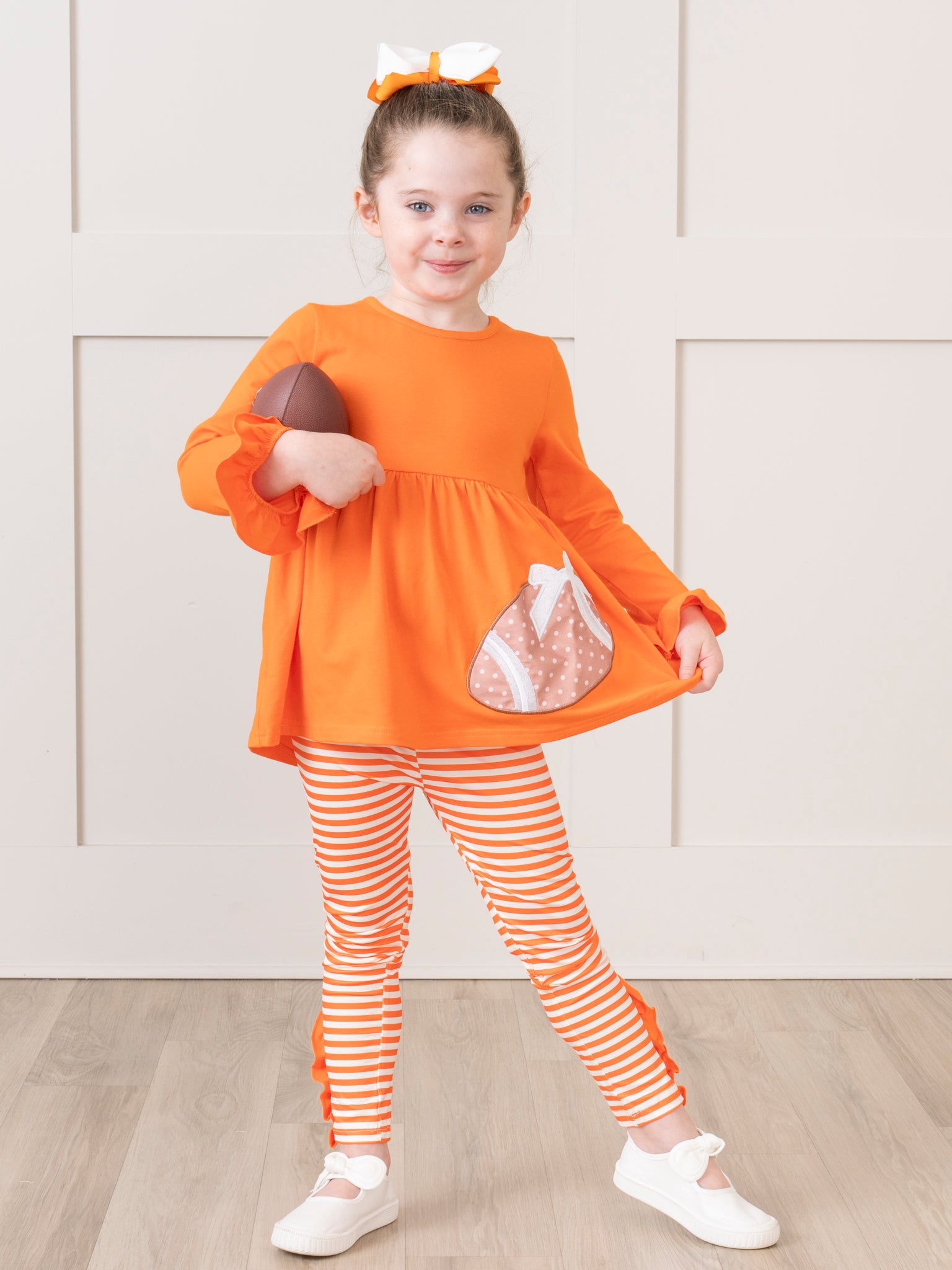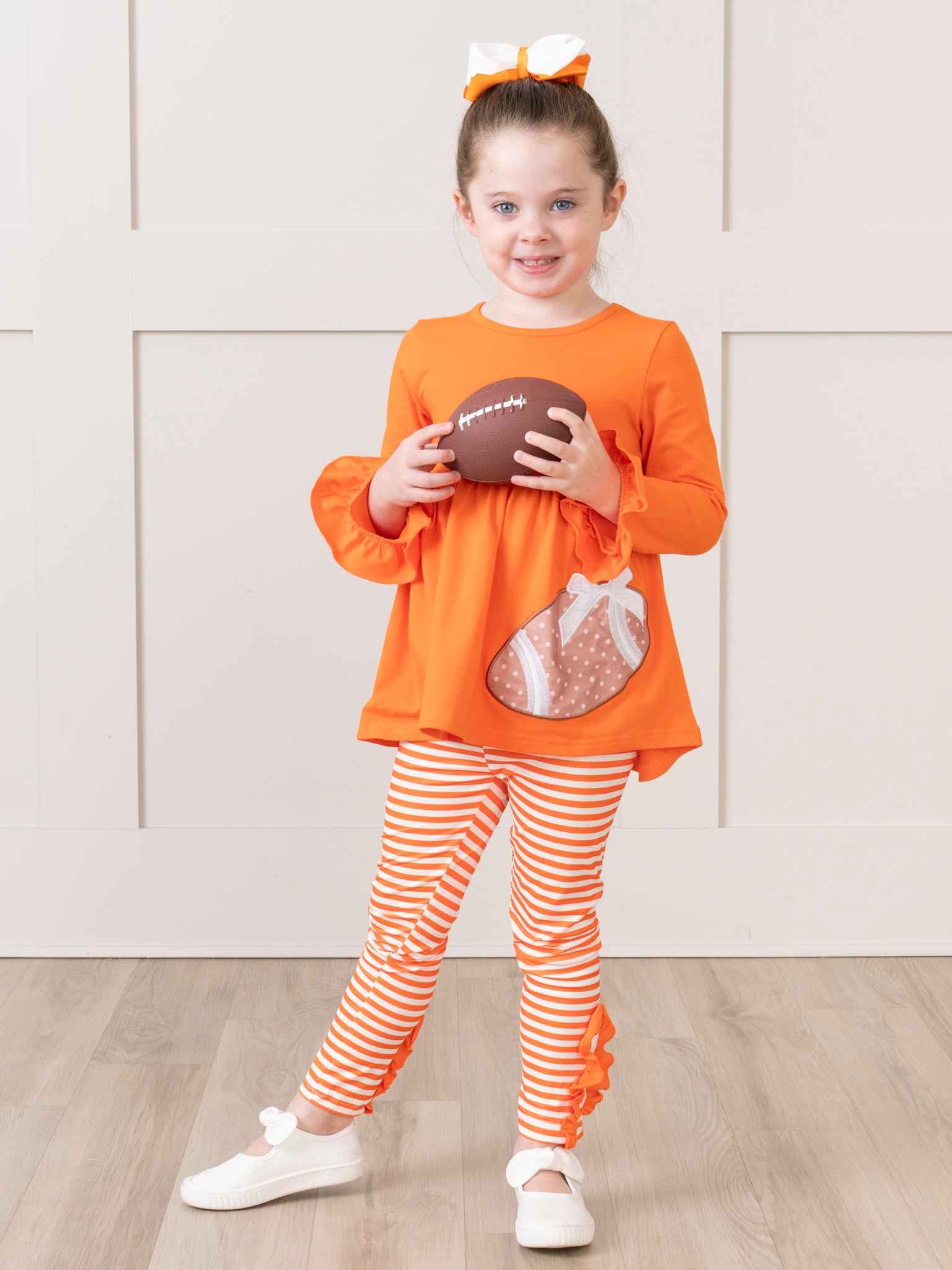 Orange Embroidered Football Ruffle Outfit