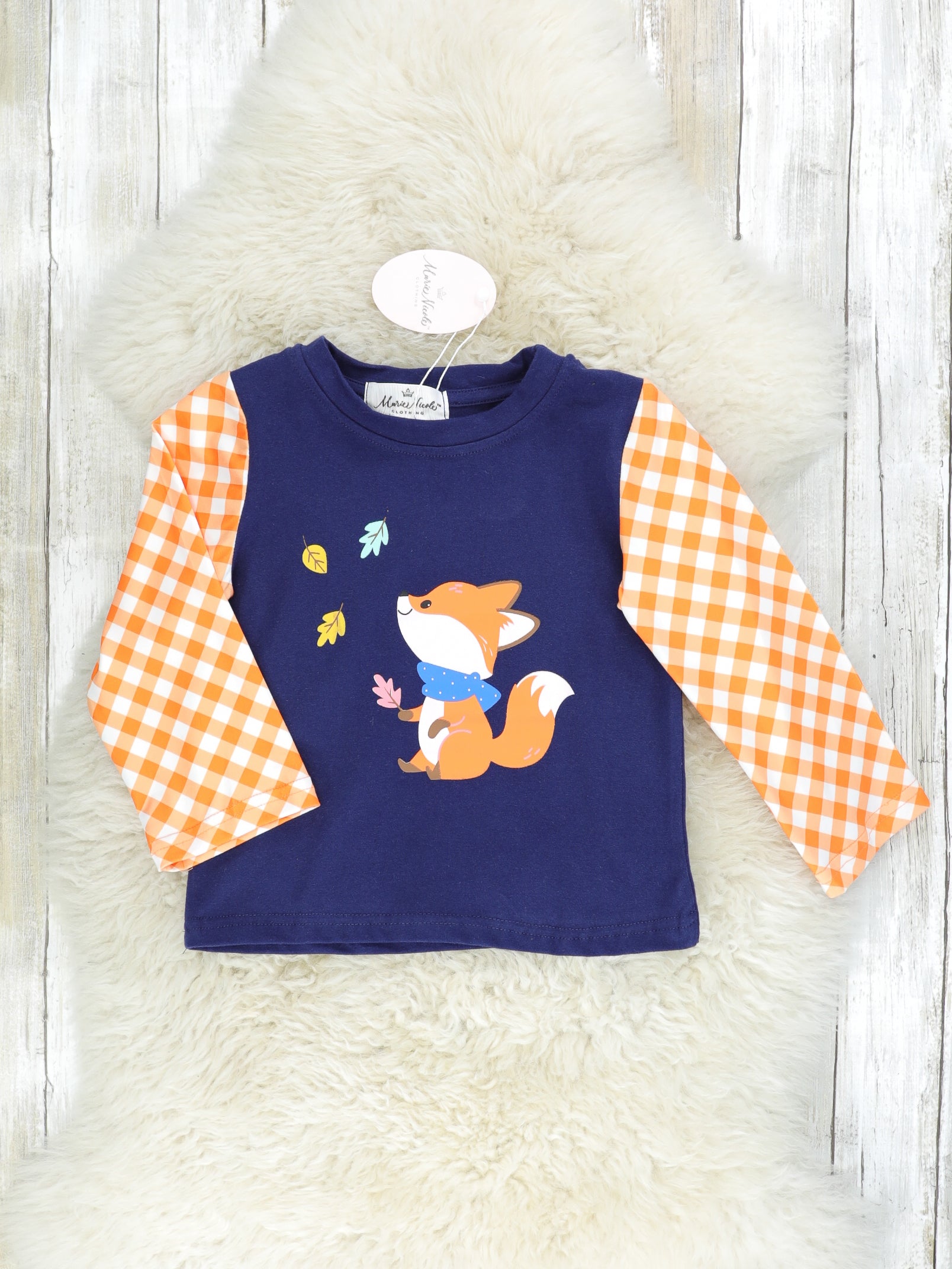 Orange Gingham & Navy Fox Long Sleeve Shirt