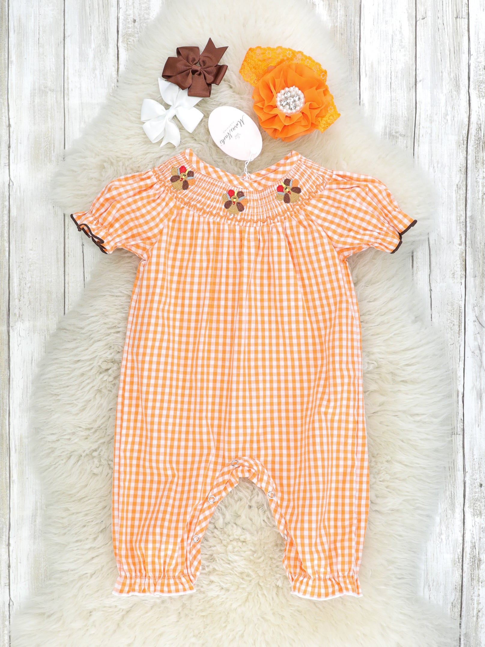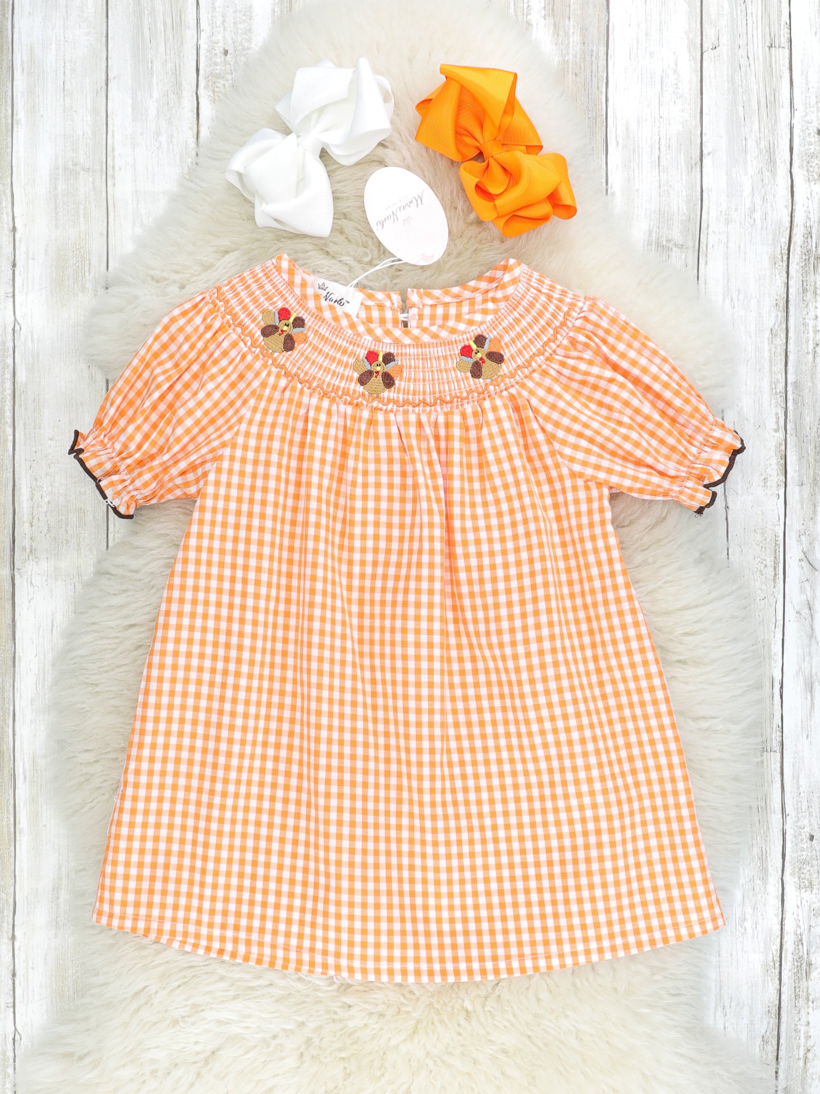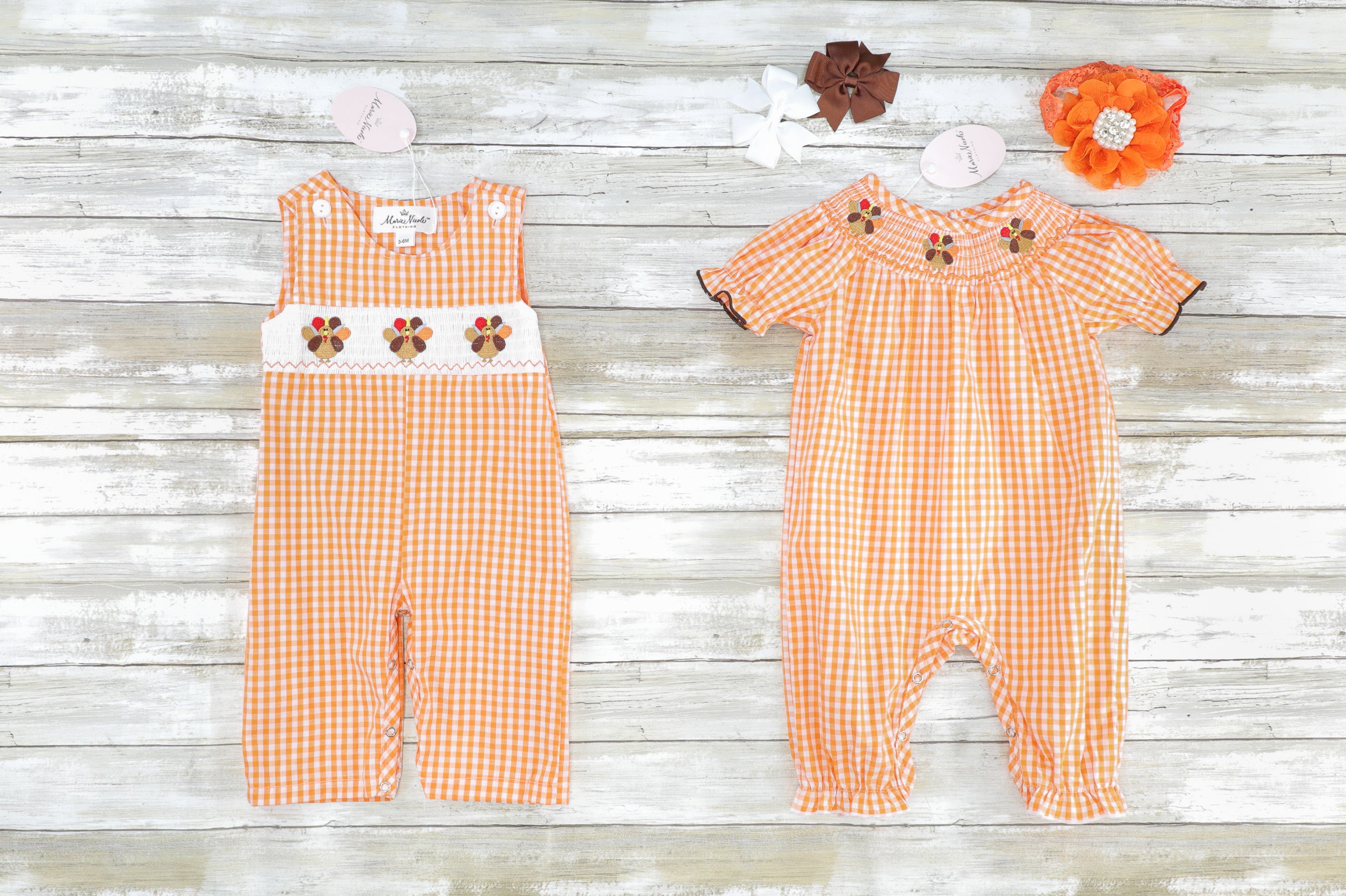Home › Orange Gingham Smocked Turkey Sibling Set