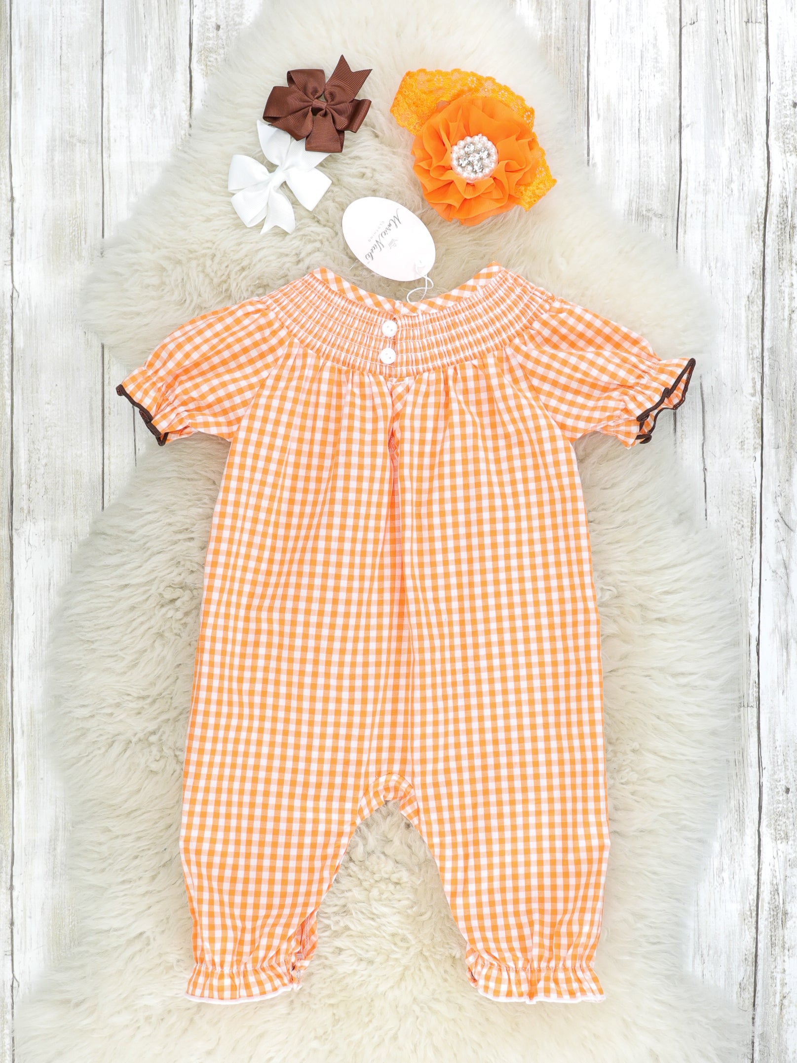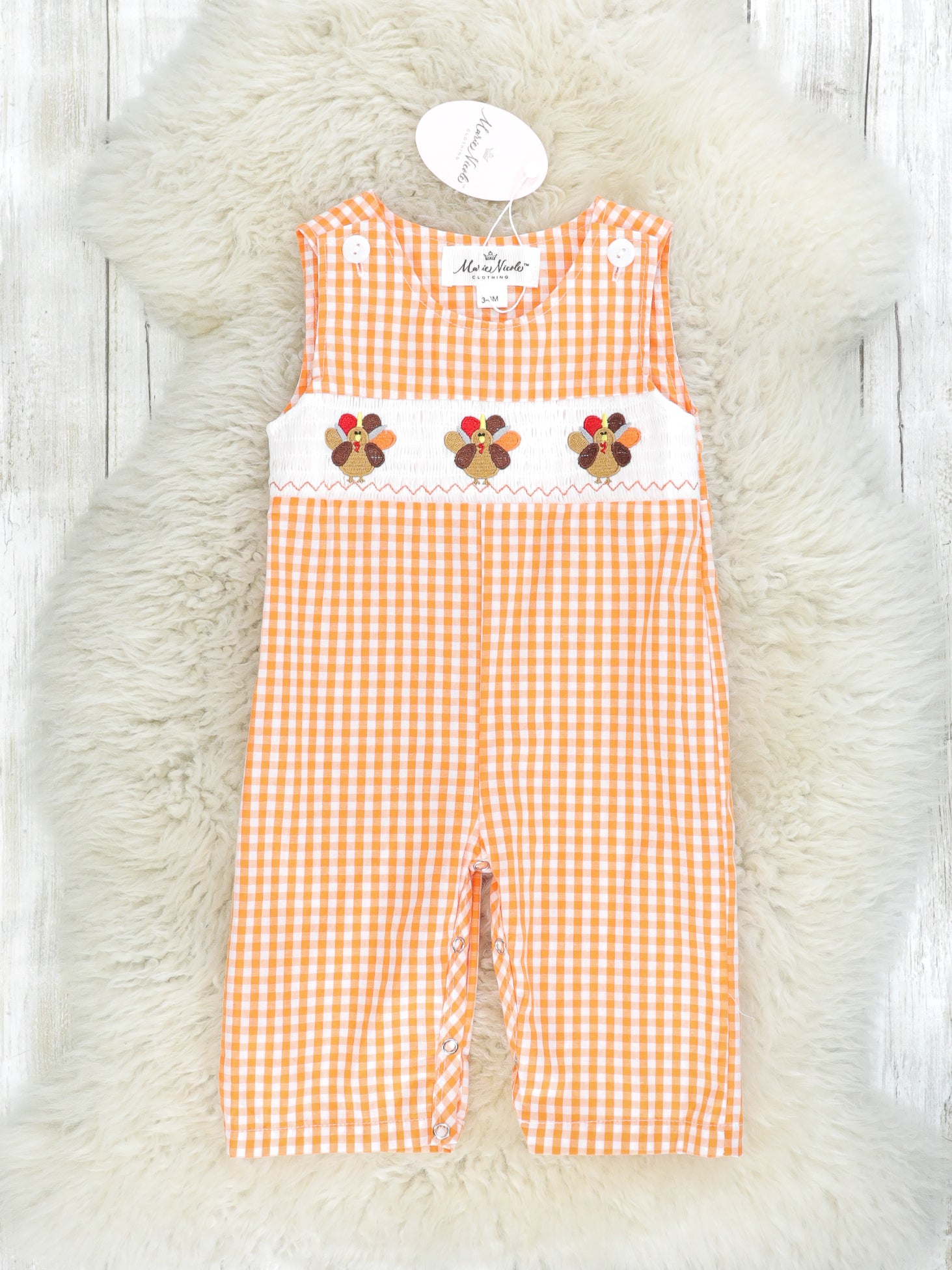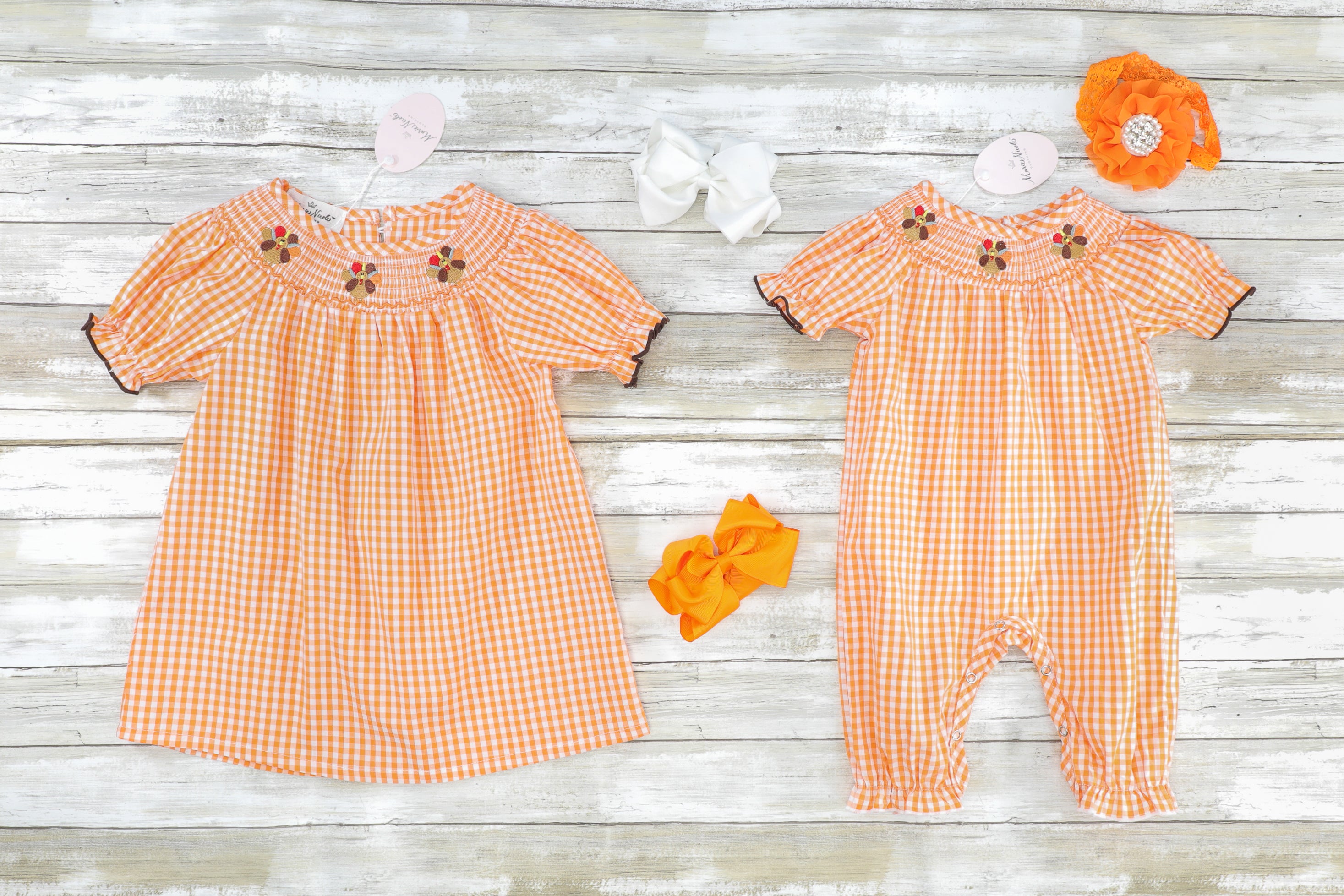 Home › Orange Gingham Smocked Turkey Sibling Set