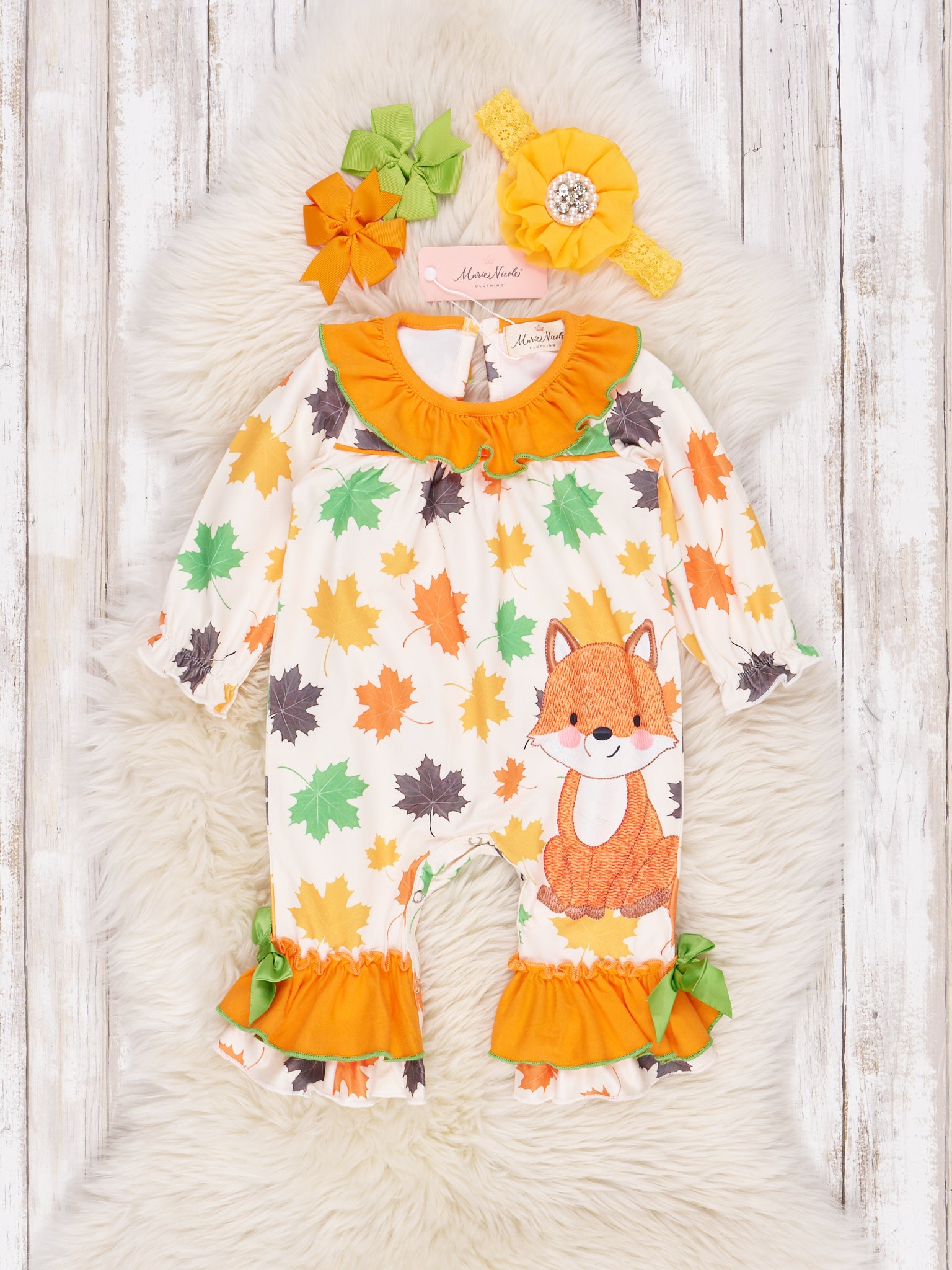 Orange and Green Little Fox Ruffle Romper