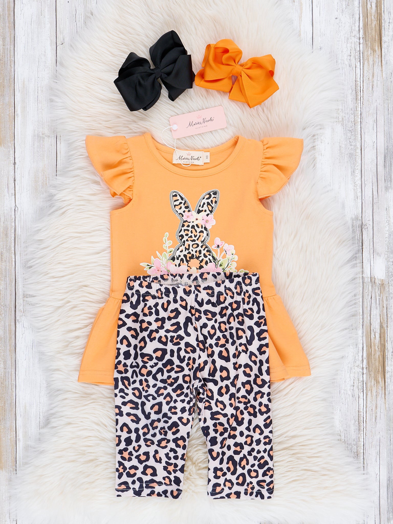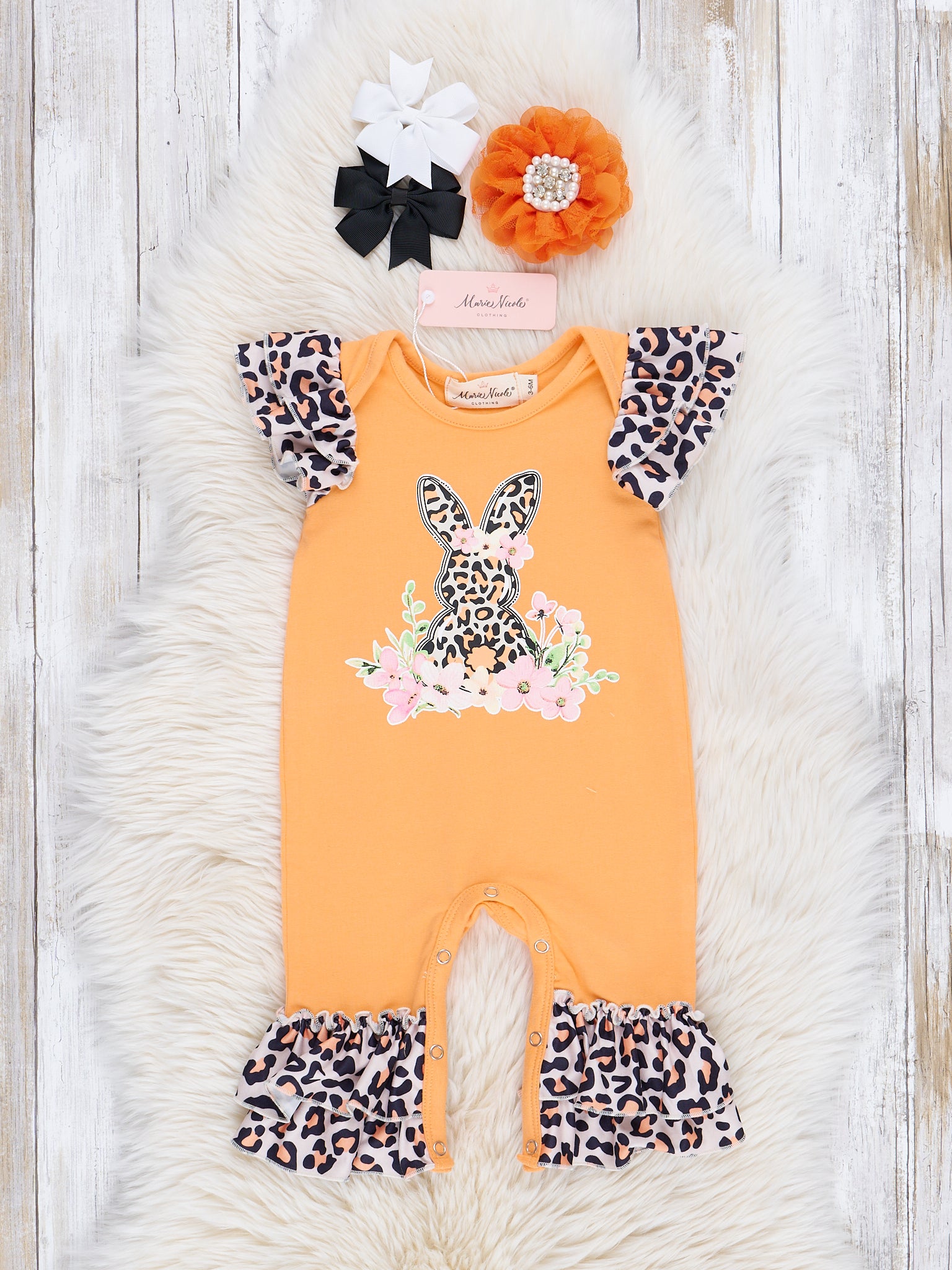 Orange Leopard Bunny Garden Ruffle Outfit