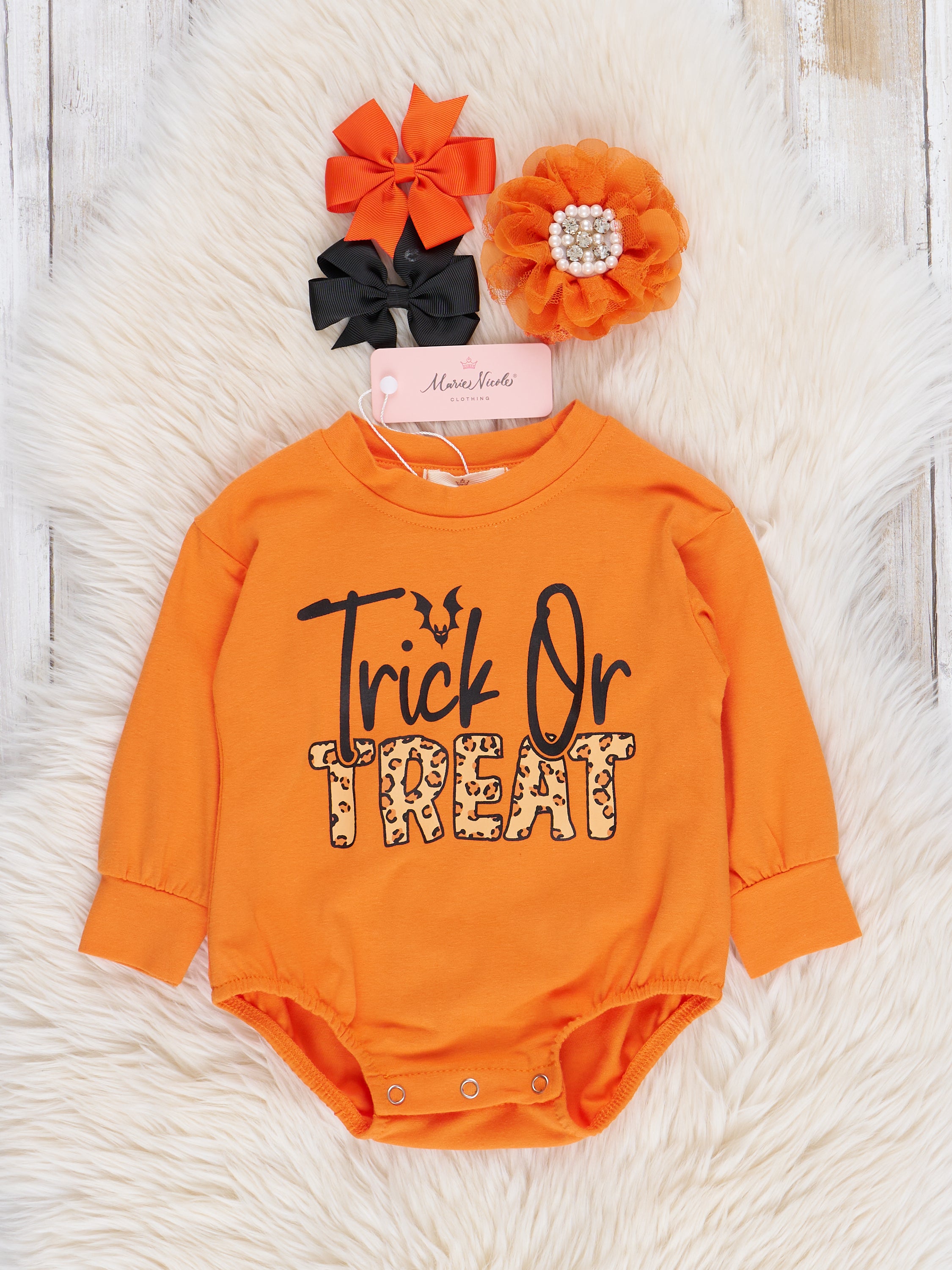 Orange & Leopard Print "Trick or Treat" Sister Set