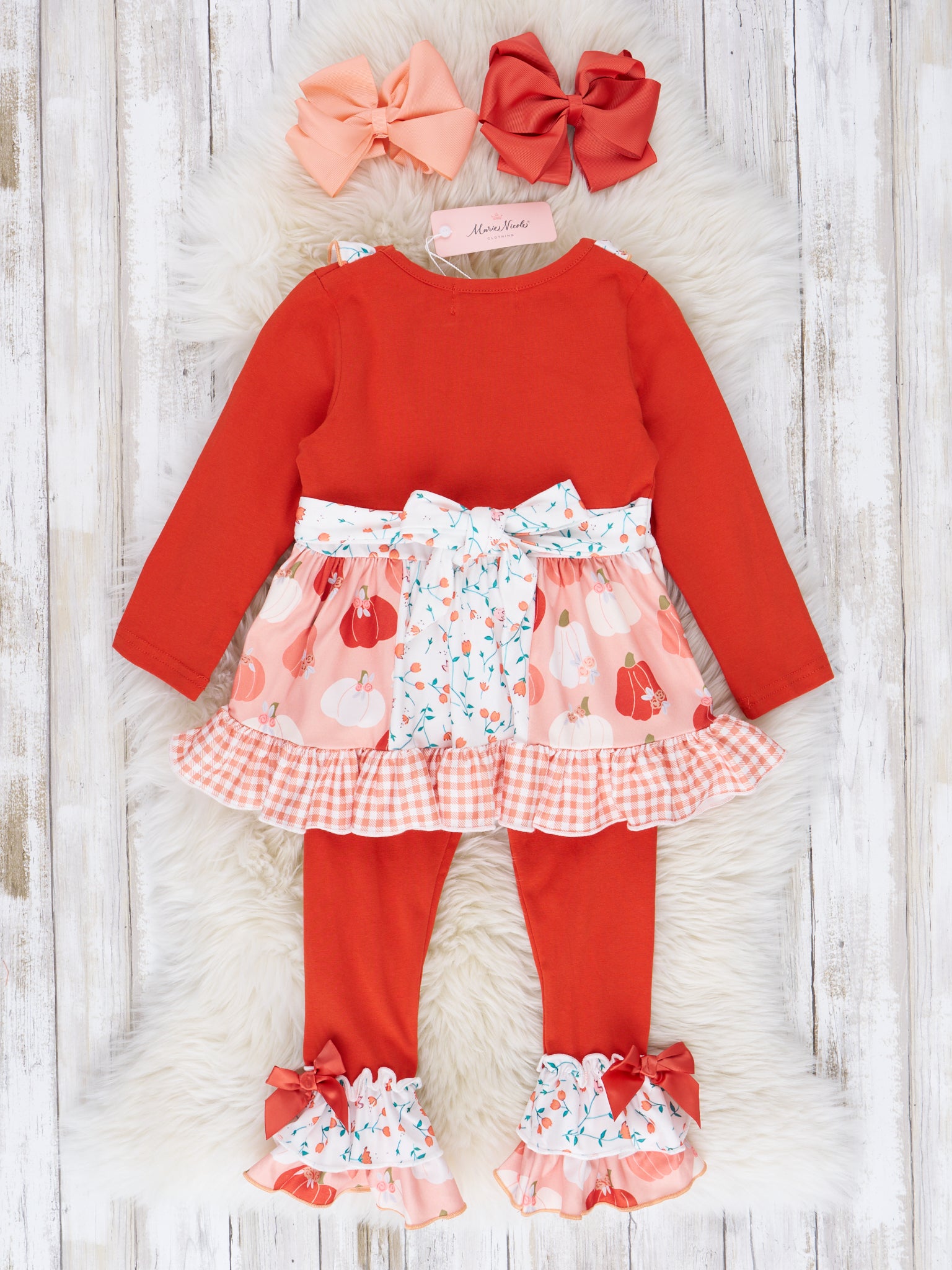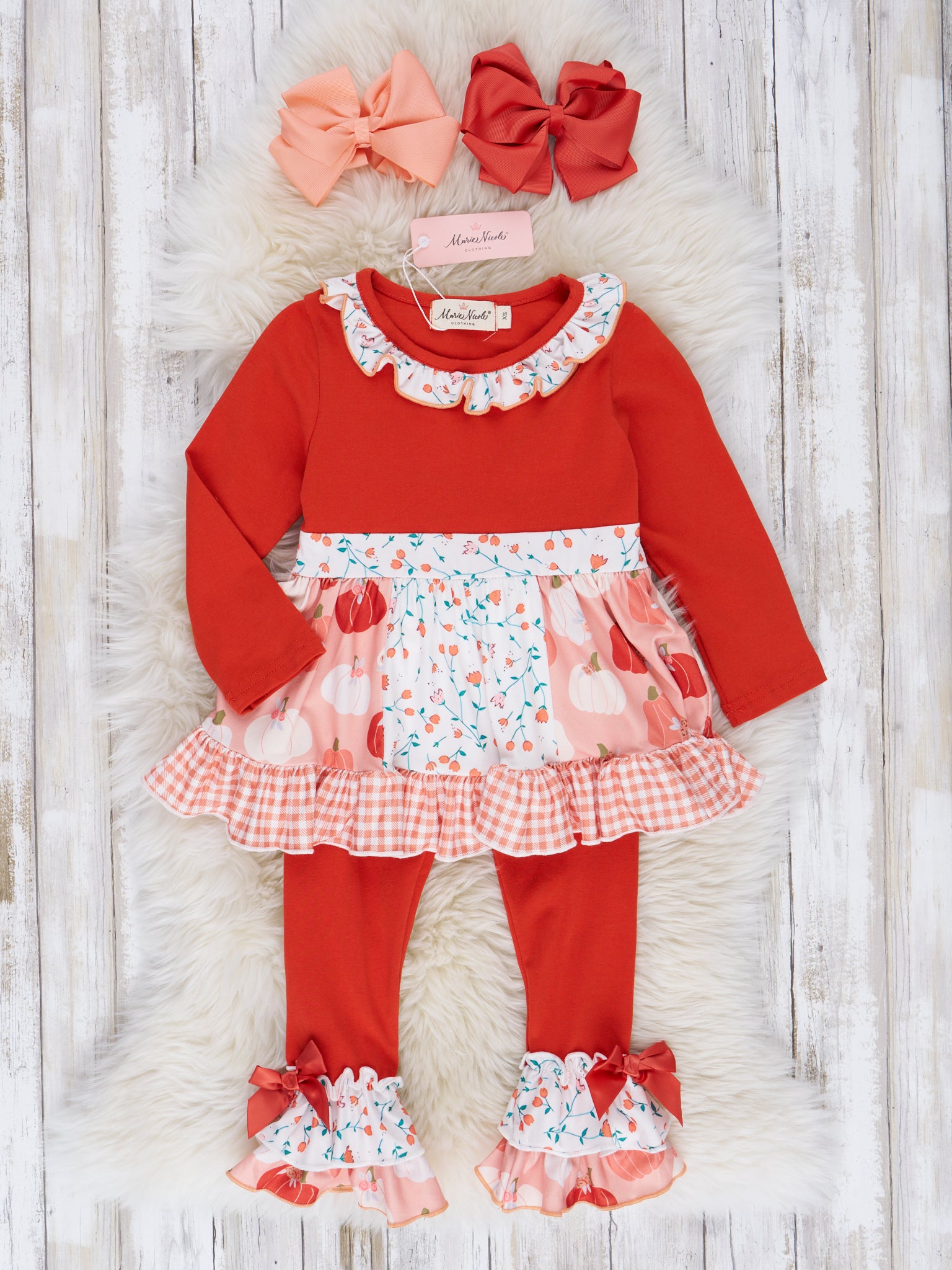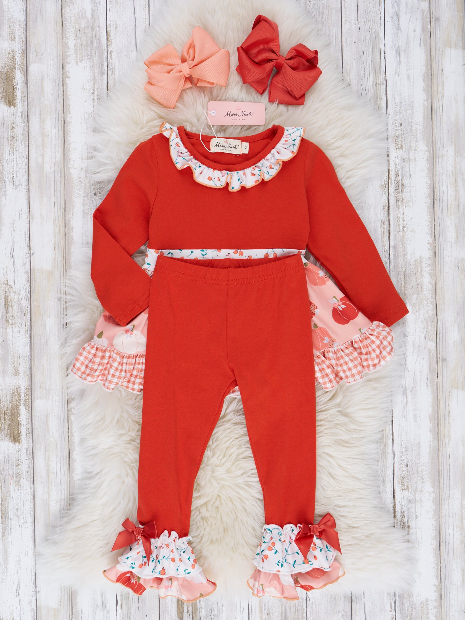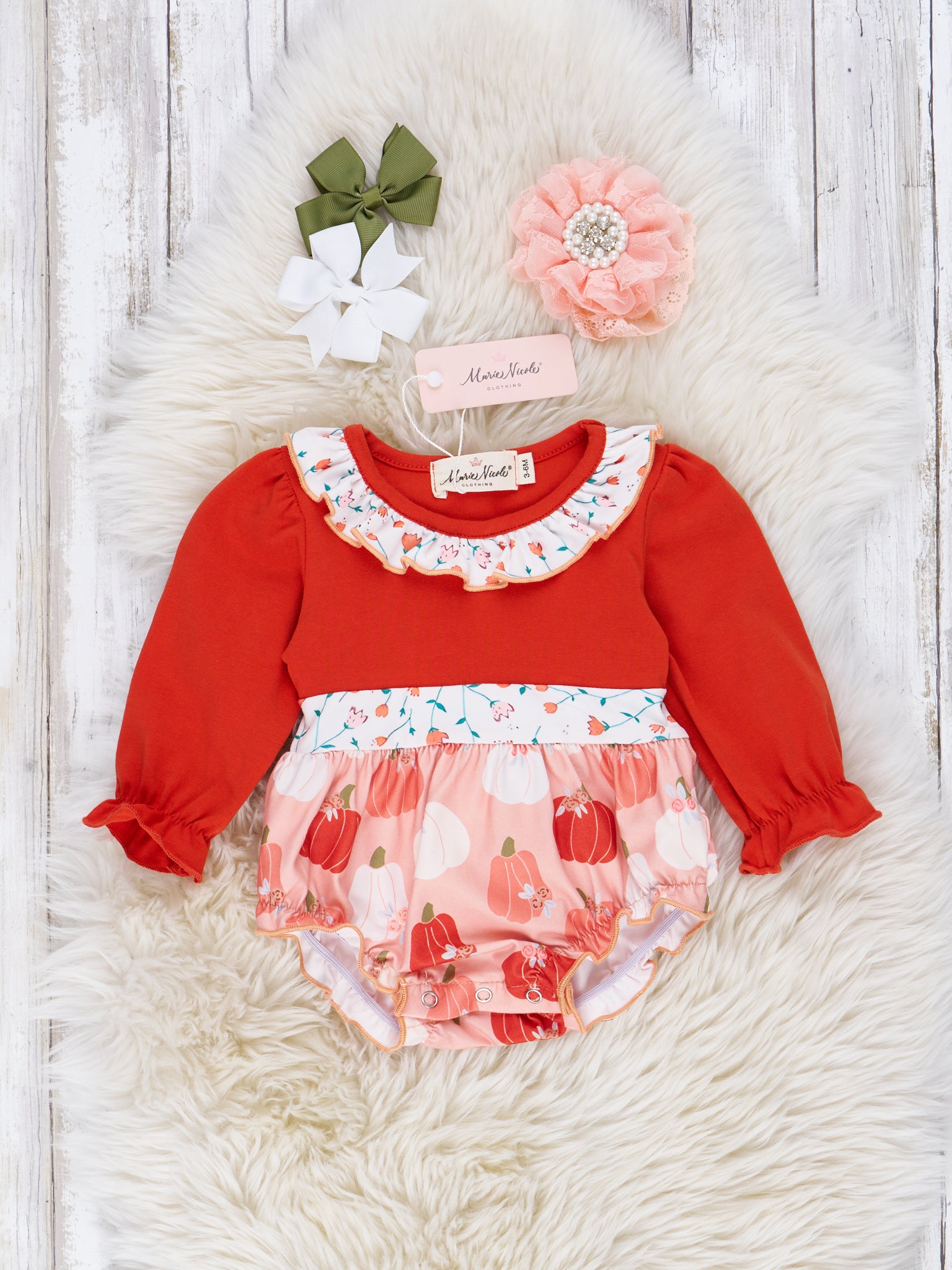 Orange & Peach Pumpkin Garden Ruffle Romper