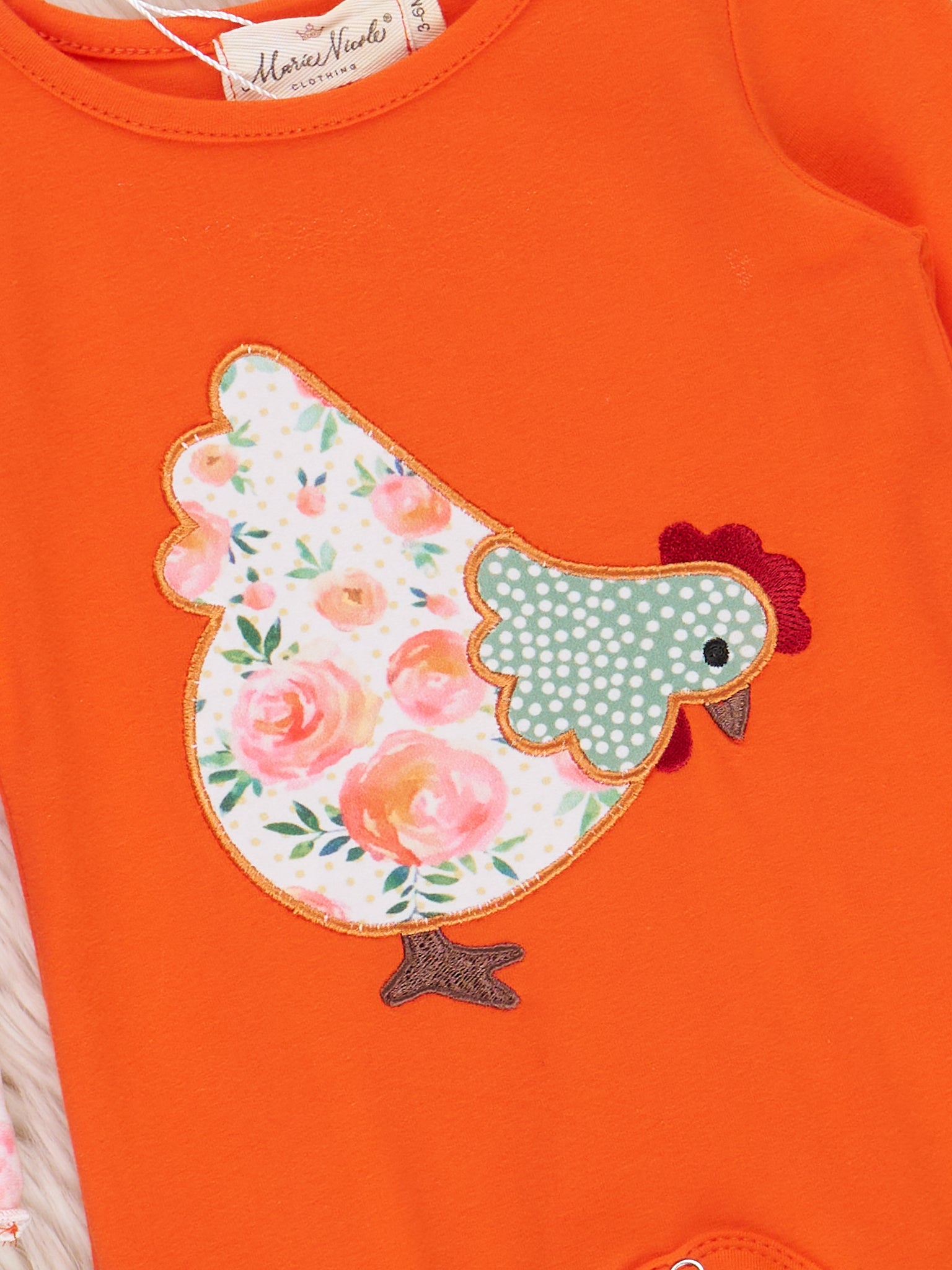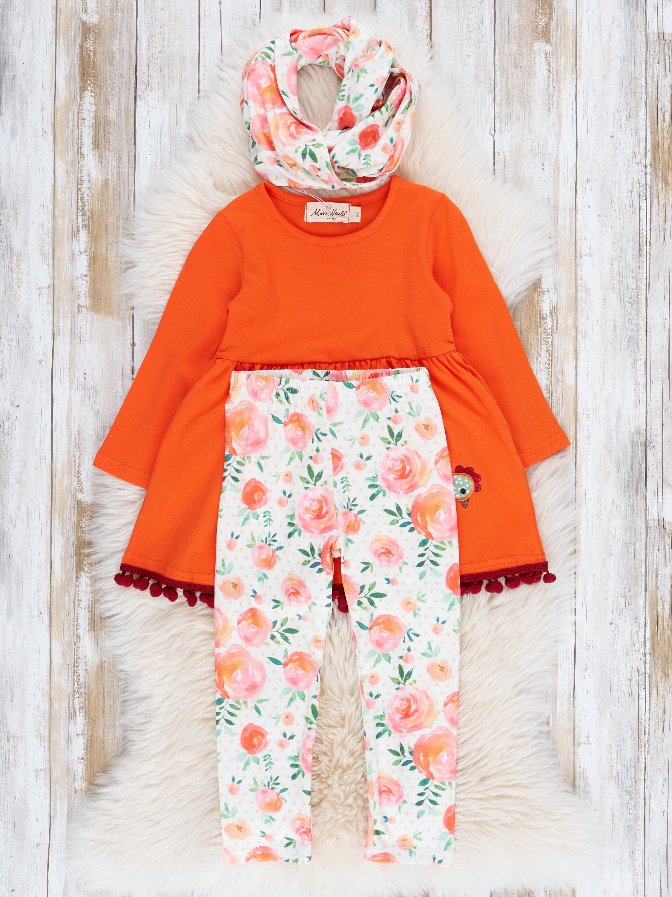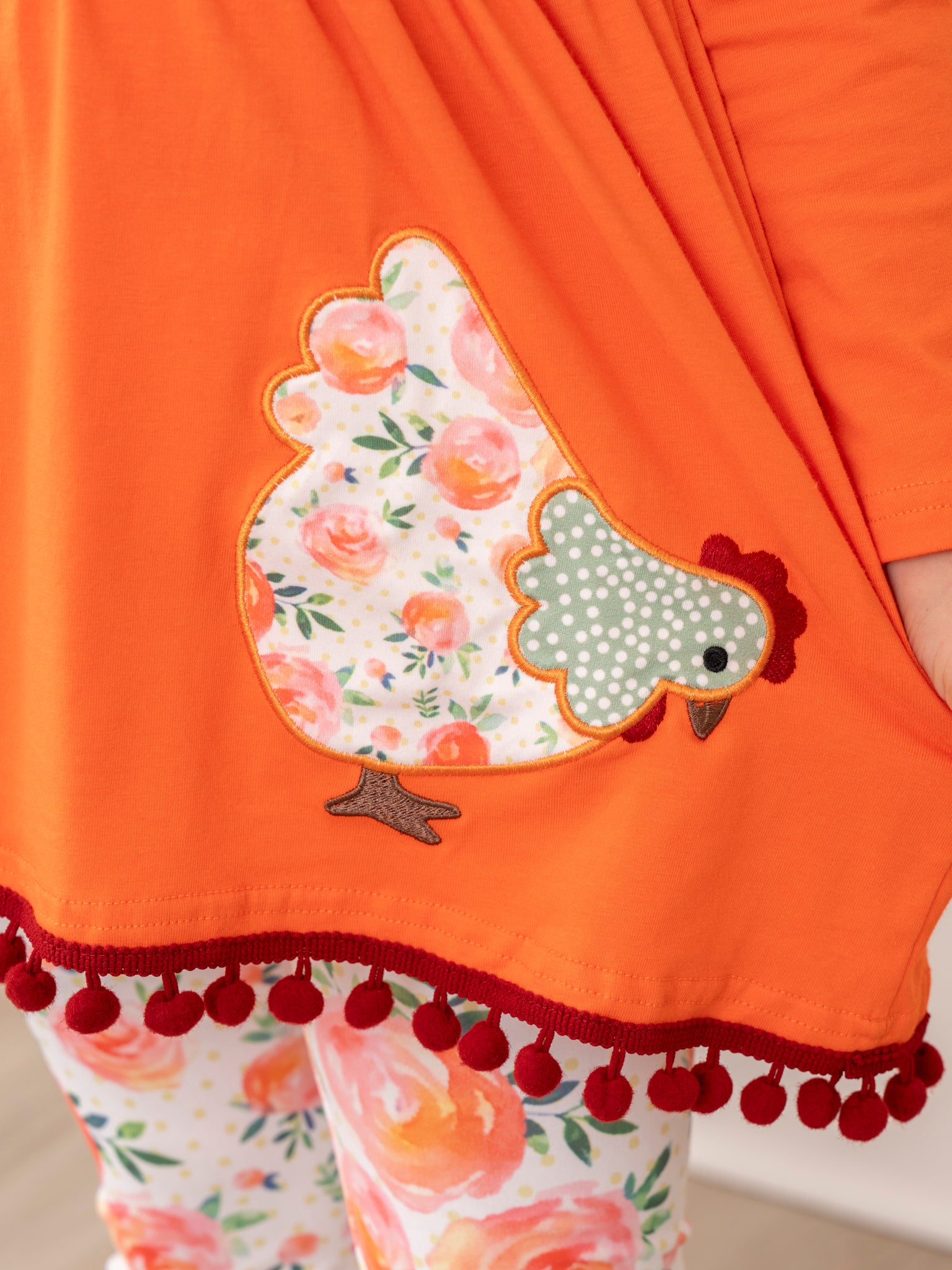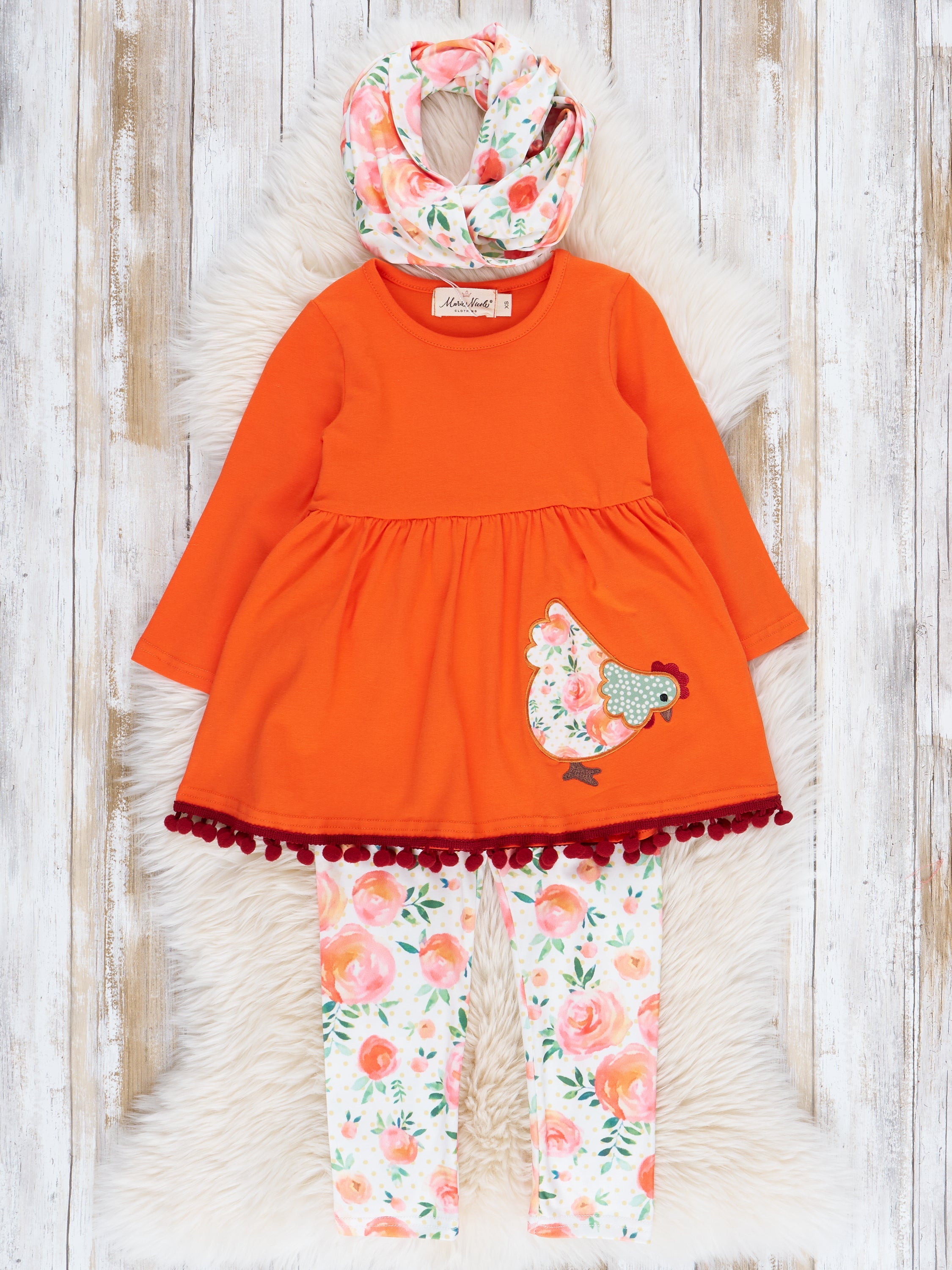 Orange Floral Chicken Pom Pom Outfit w/ Scarf