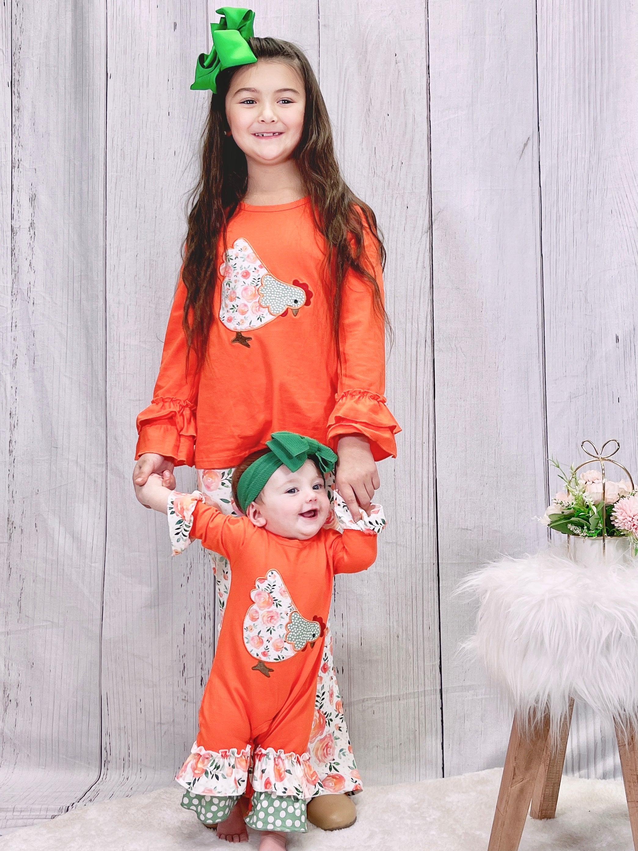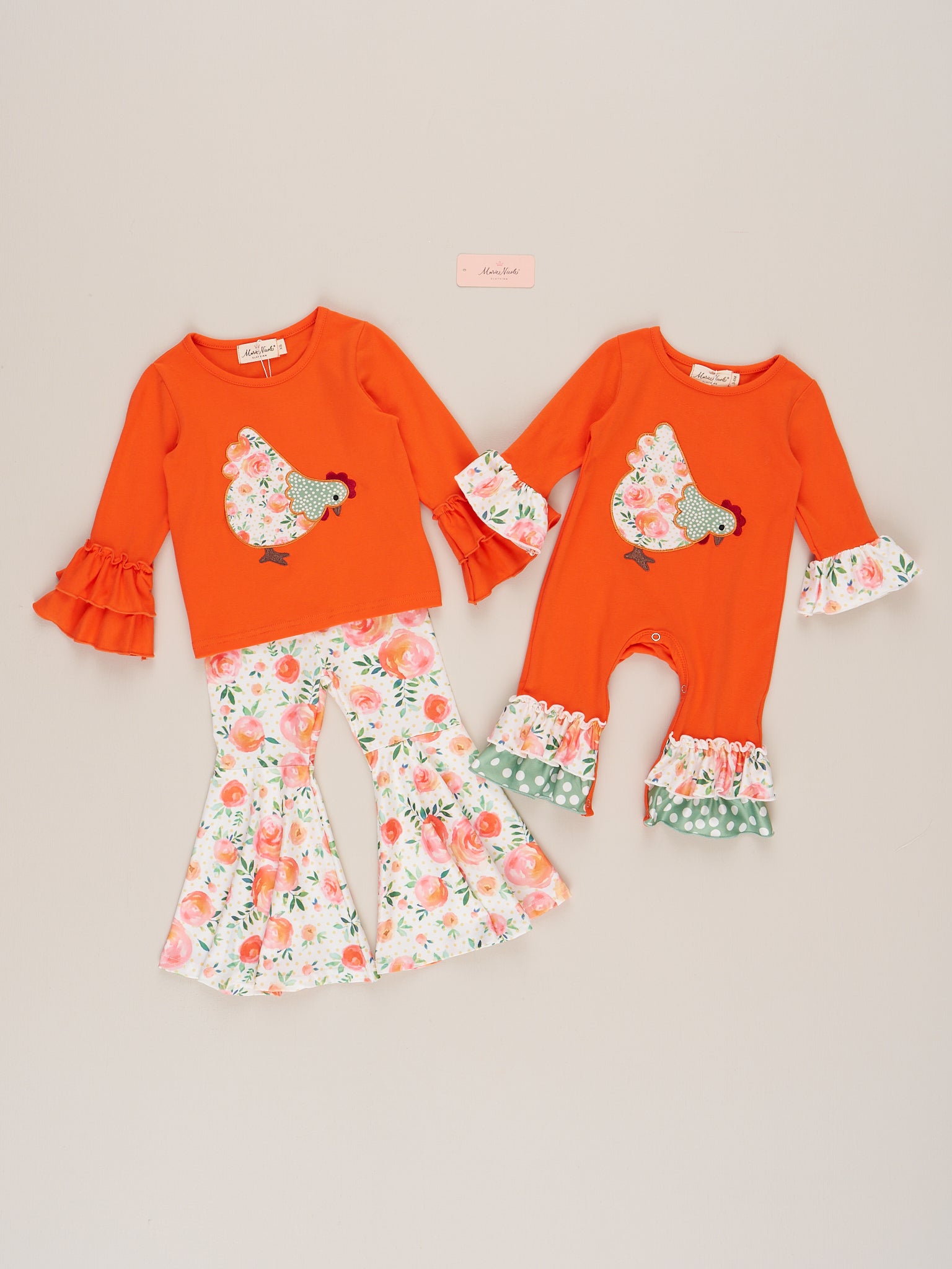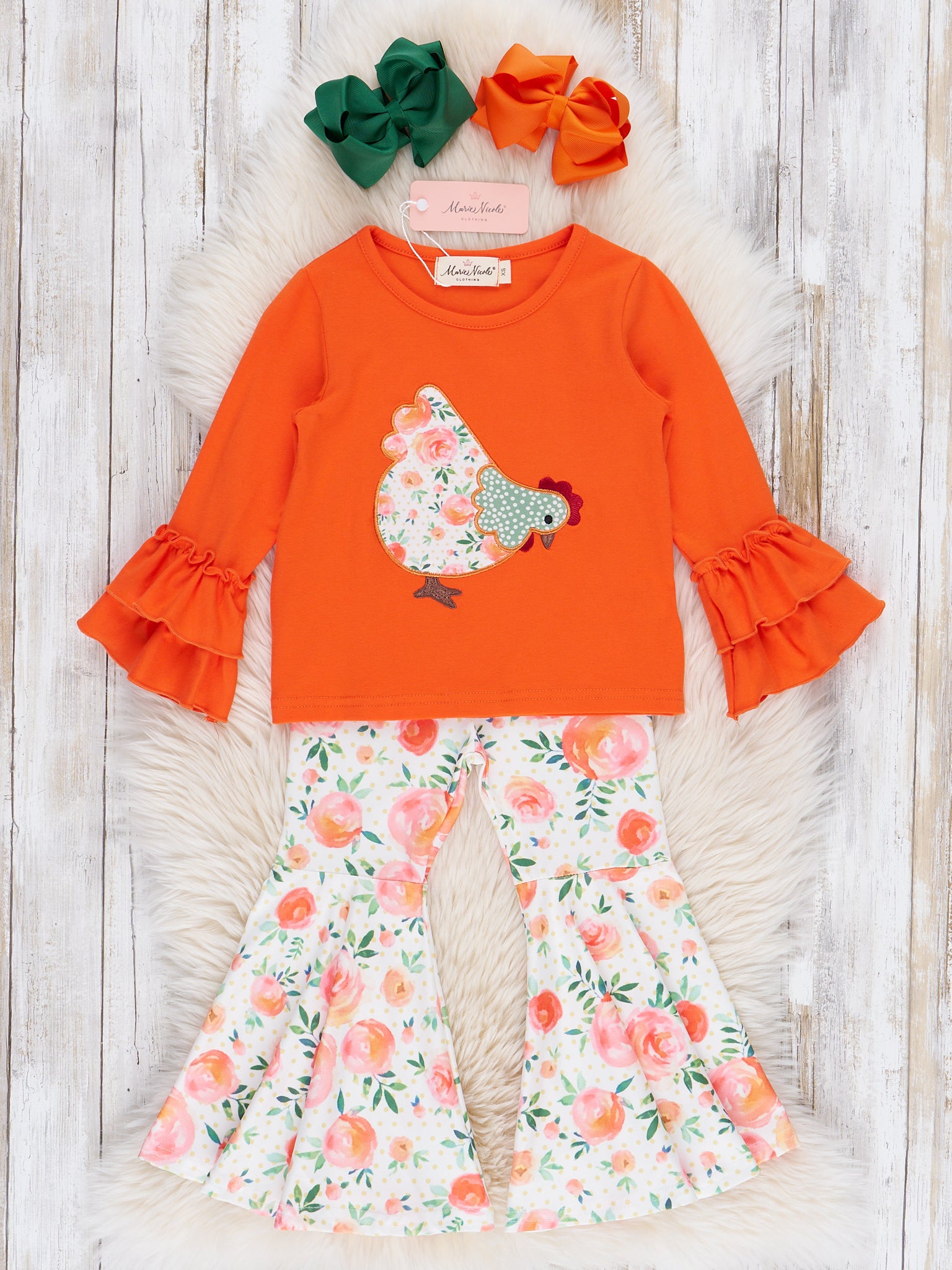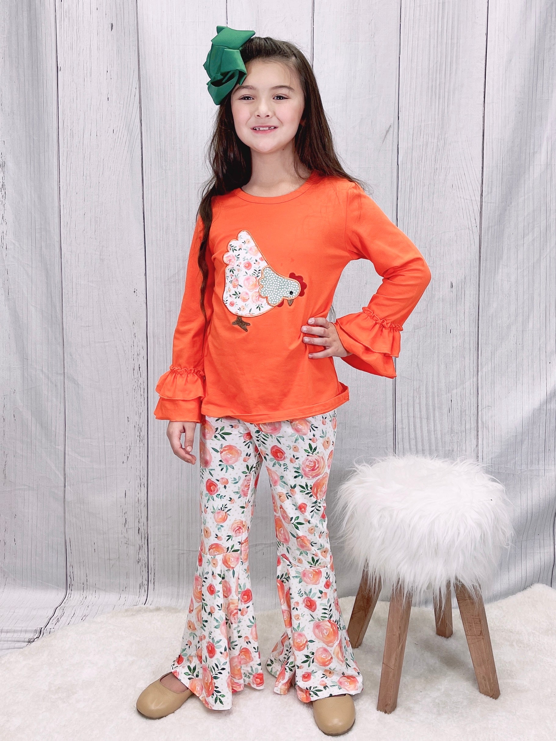 Orange Ruffle Floral Chicken Bell Bottom Outfit