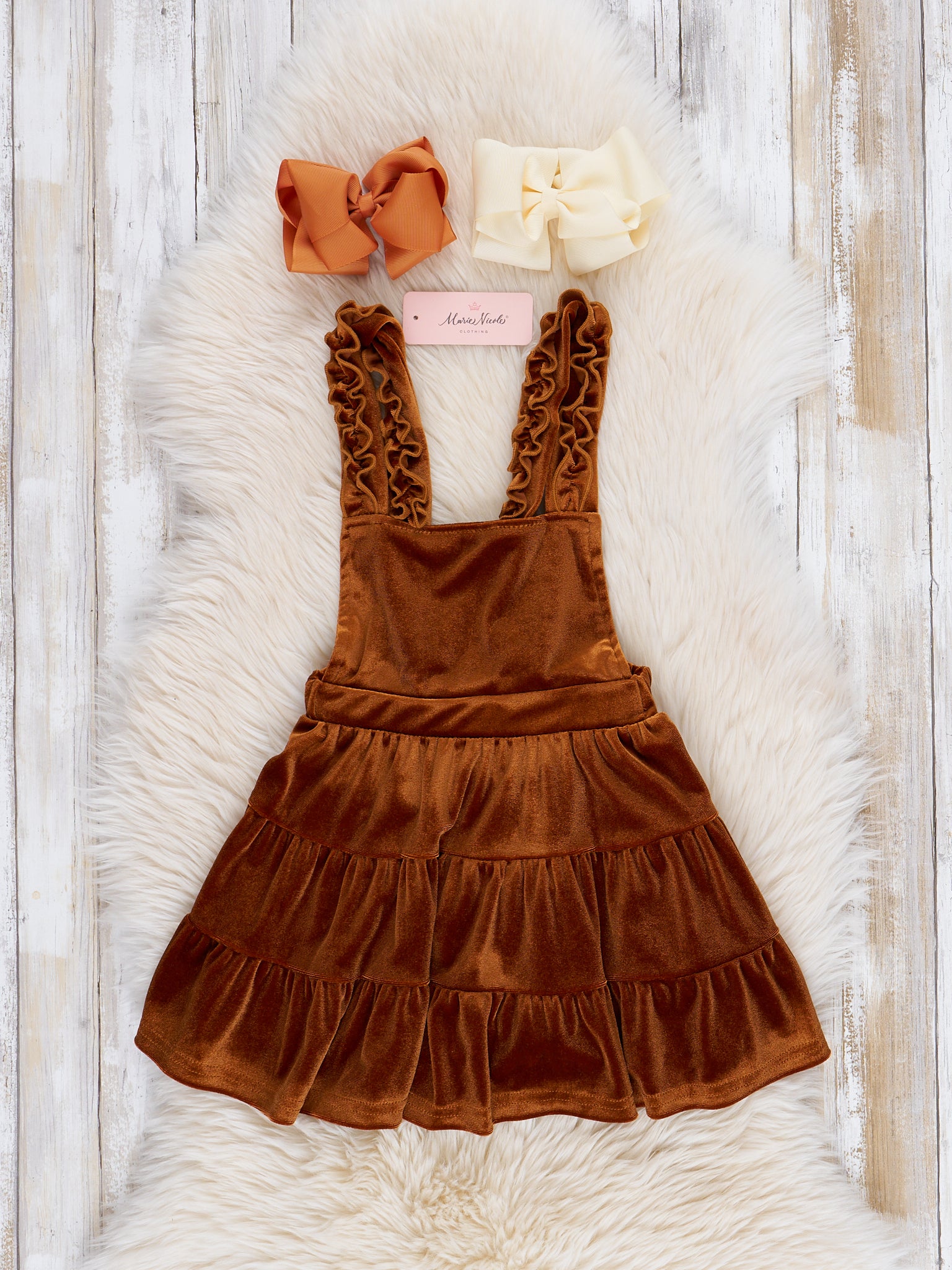 Bronze Velvet Floral Ruffle Skirtall Set