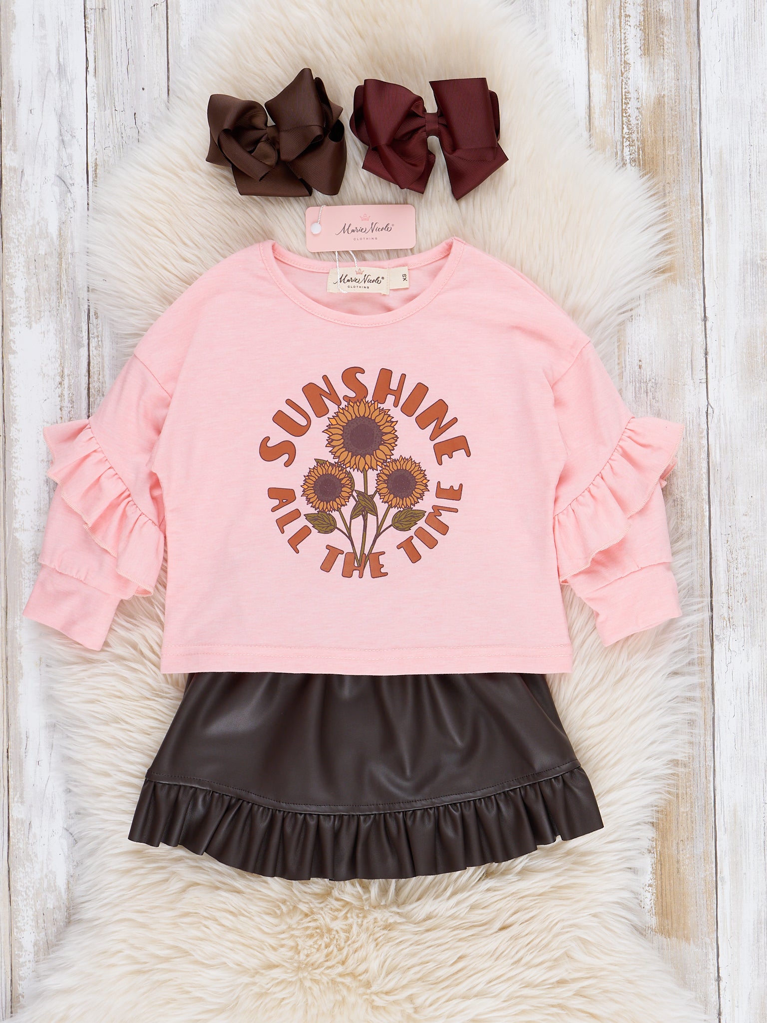 Pink Sunflowers Outfit w/ Faux Leather Skirt
