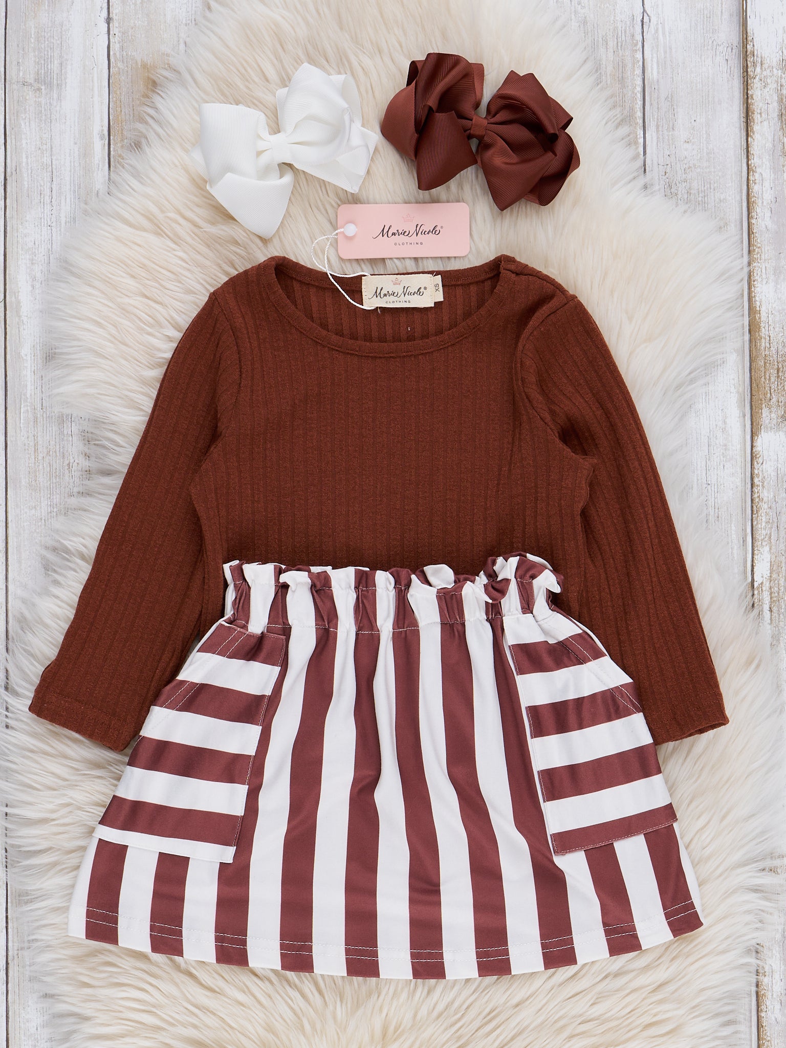 Chocolate Stripes Skirt Set