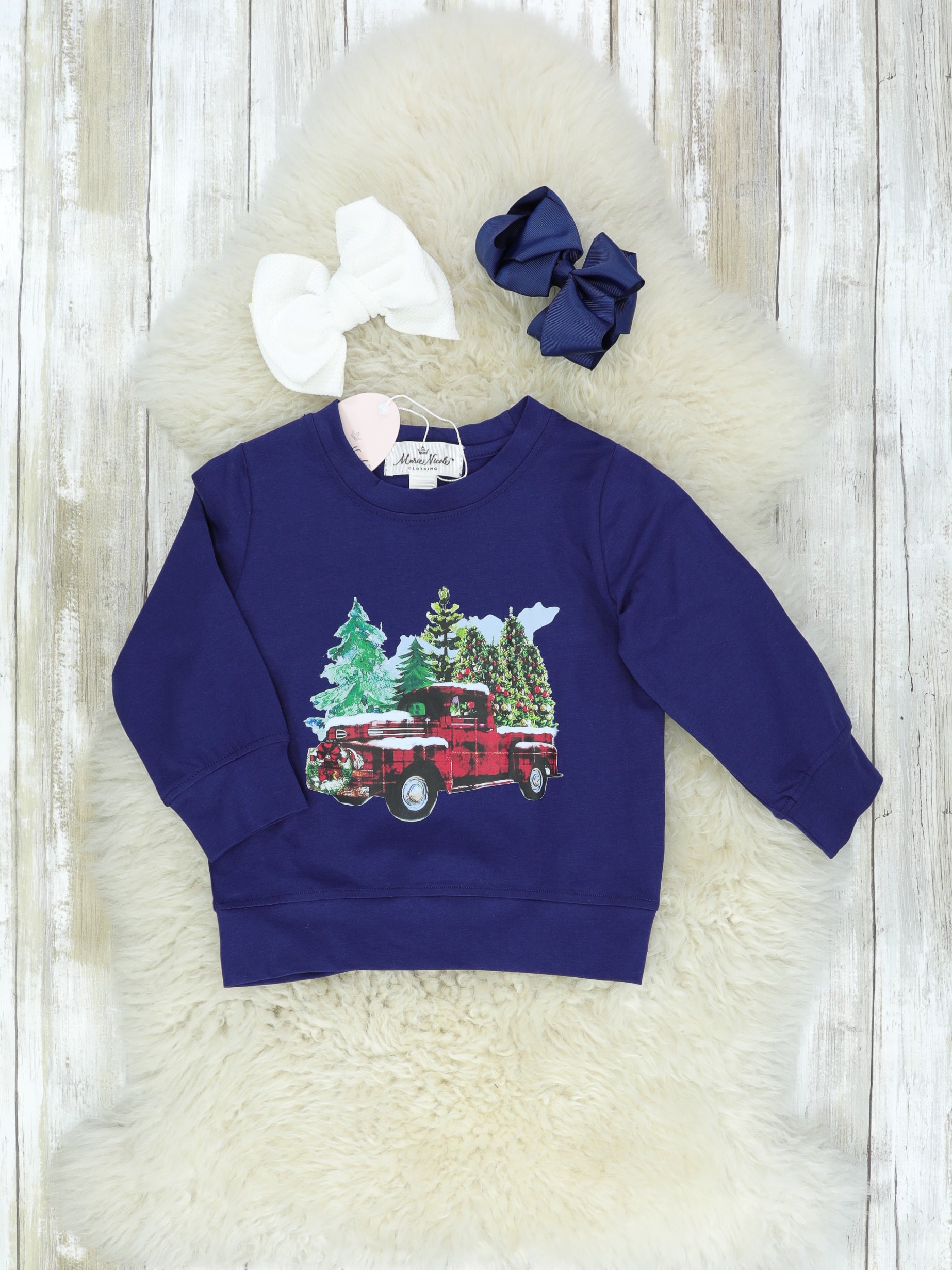 Mom & Me Navy Christmas Tree Truck Crewneck