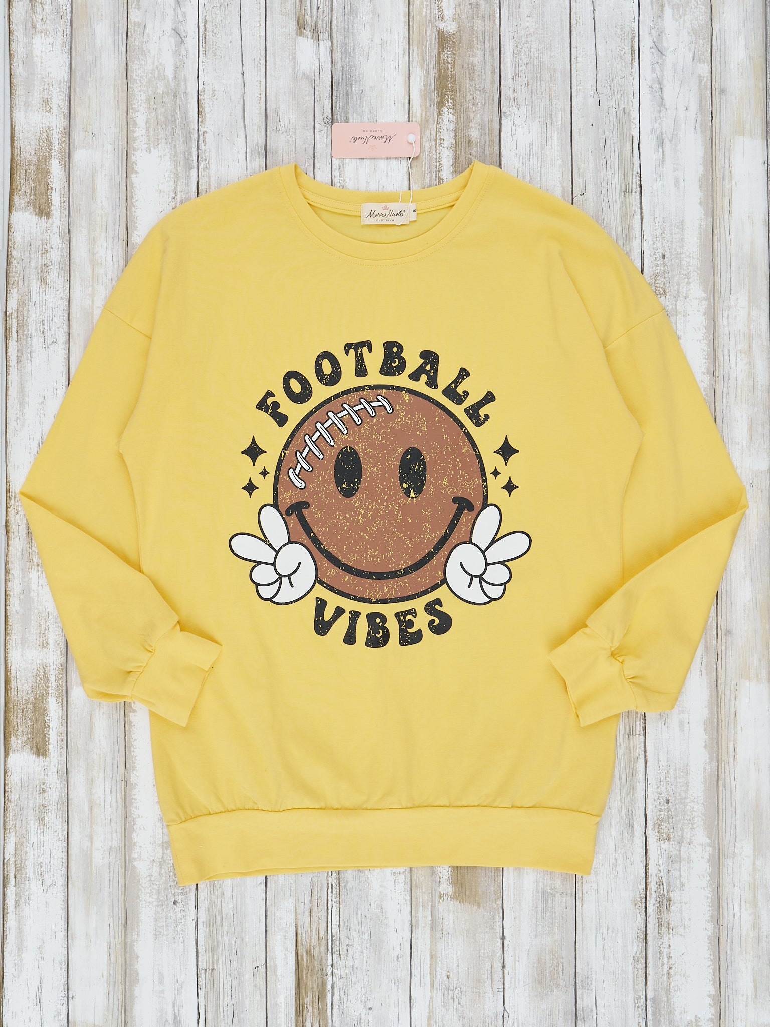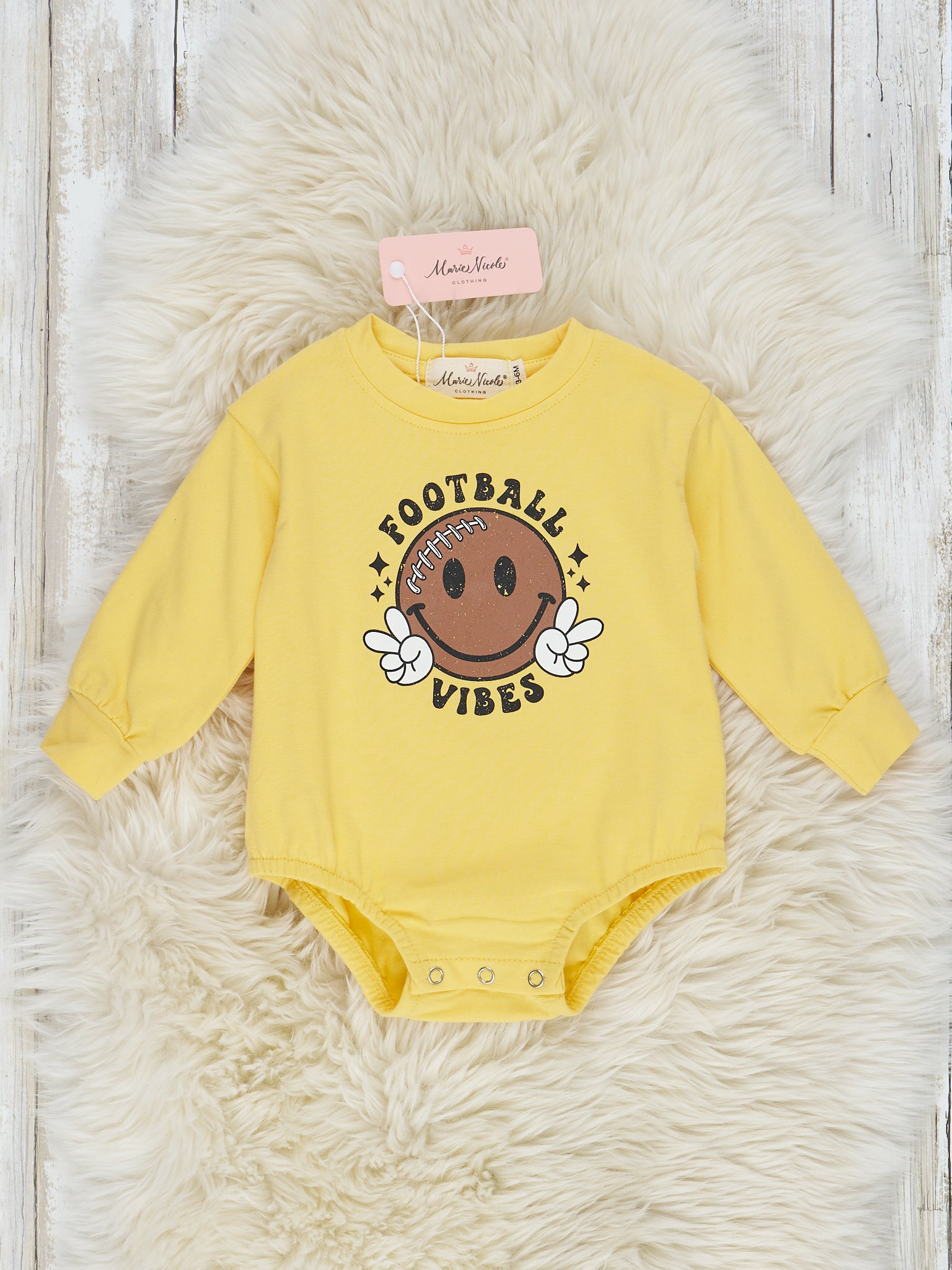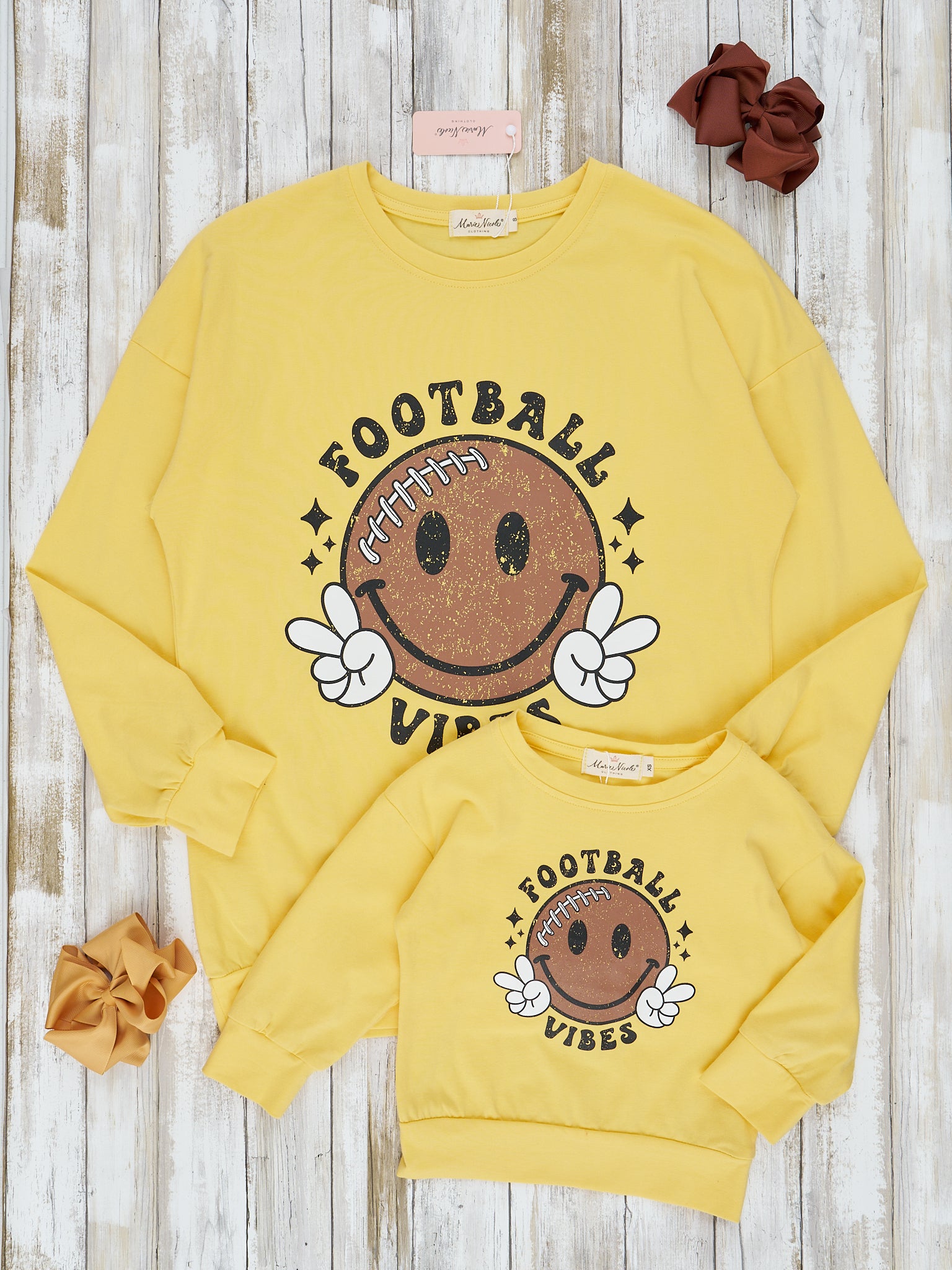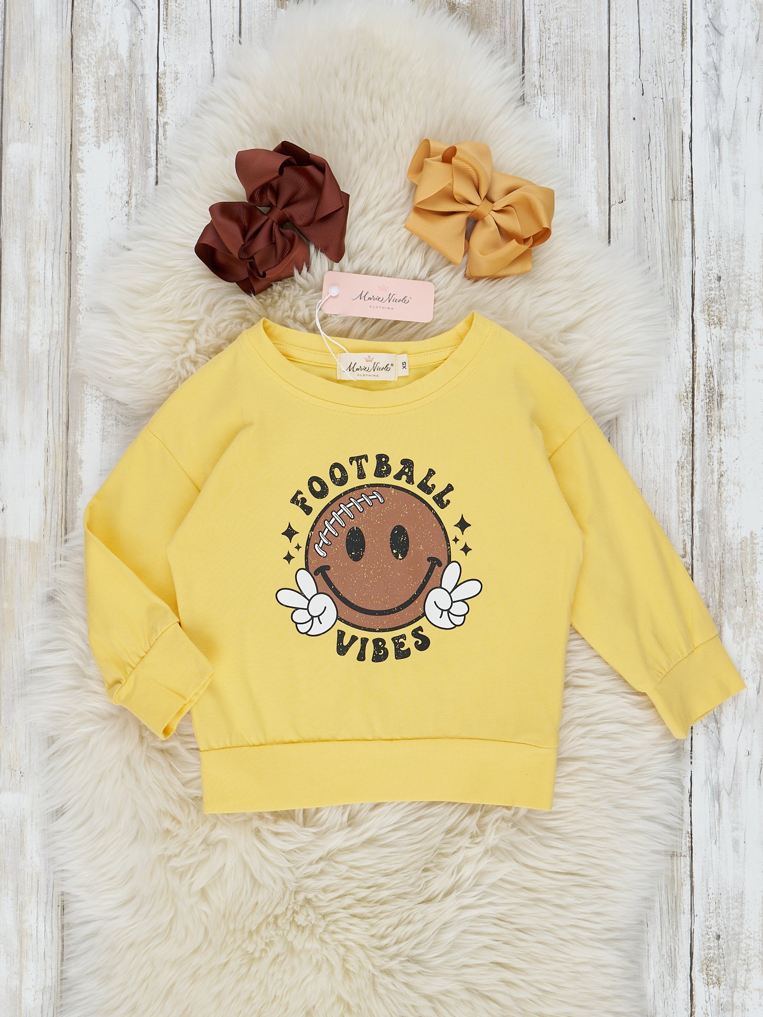 Celebrate football with the whole crew! This yellow top features fun smiley face football and long sleeves to cheer on your fave team!