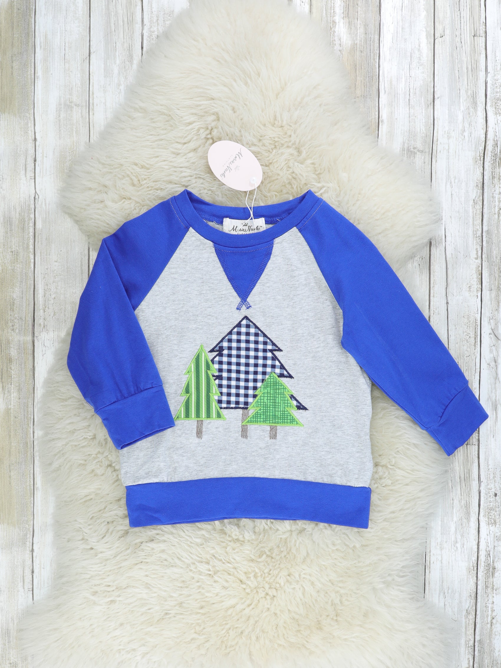 Blue Gingham Christmas Tree Truck Layered Shirt
