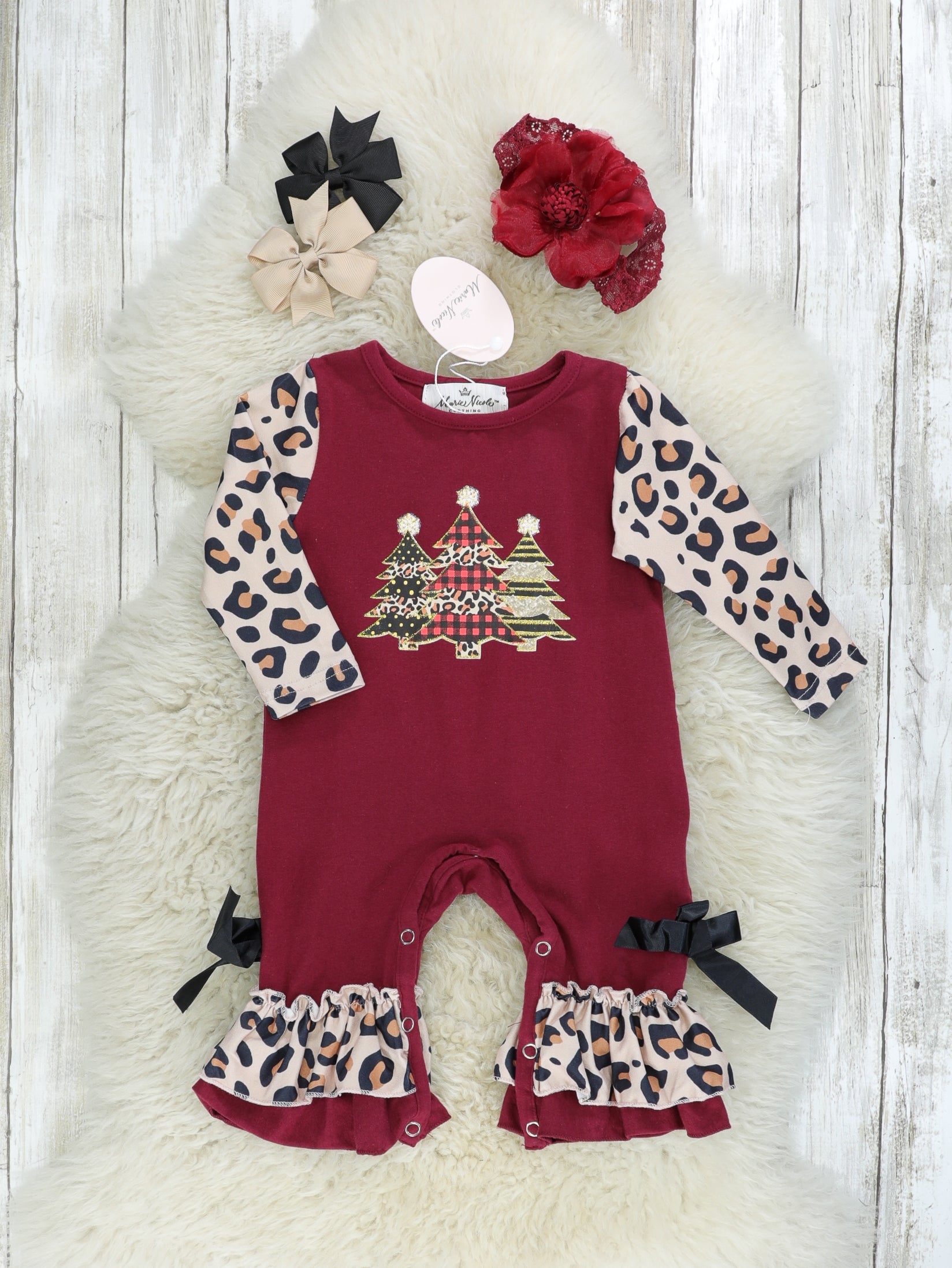 Burgundy "Wild One" Ribbed Leopard Top & Bell Bottom Outfit