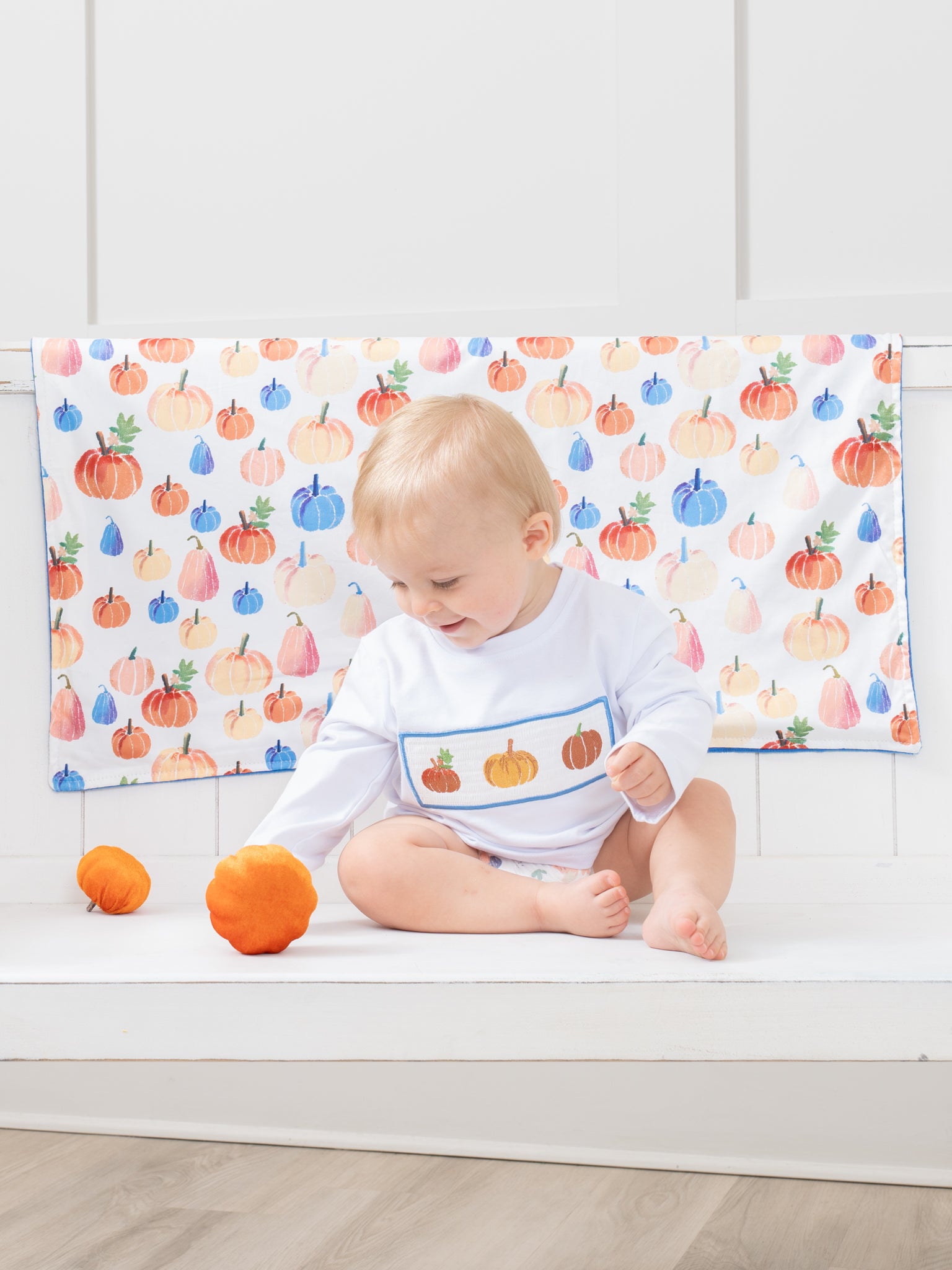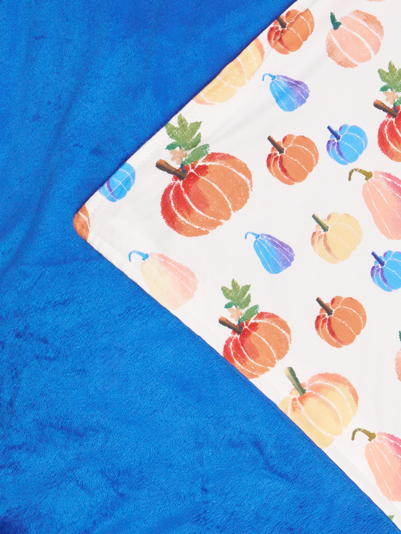 Introducing MNC x LOVE's fall collection: Party Pumpkins! This collection is inspired by the breathtaking hues of autumn. Embrace the charming pumpkin details in shades of vibrant orange, golden yellow, and serene blue. This snuggly minky blanket is designed with our festive party pumpkins pattern. Get your hands on this blanket and make every night-in a bit more magical!