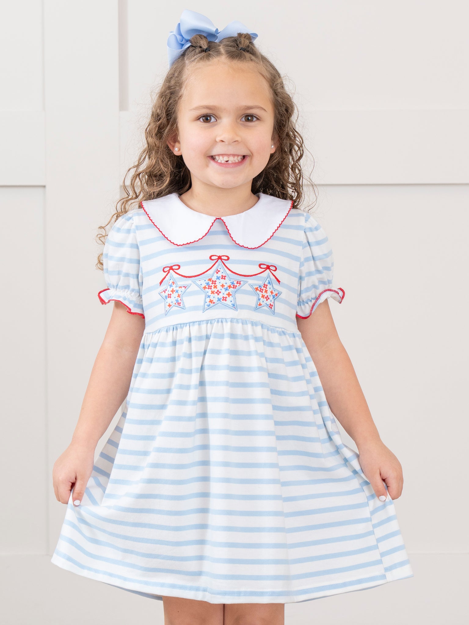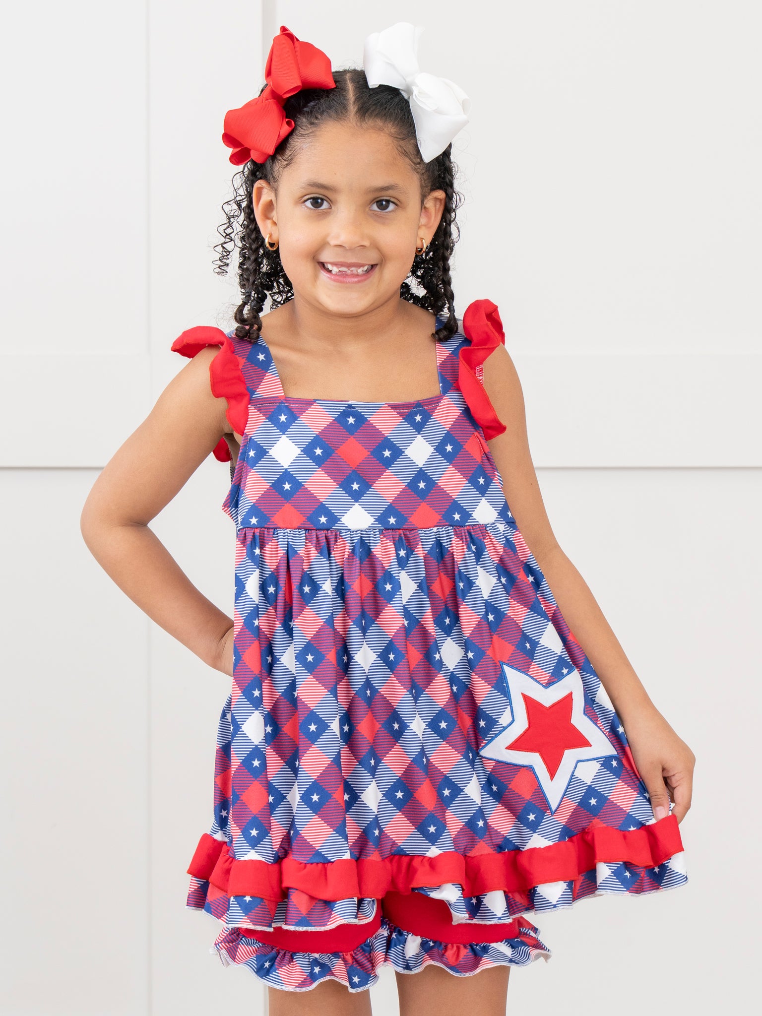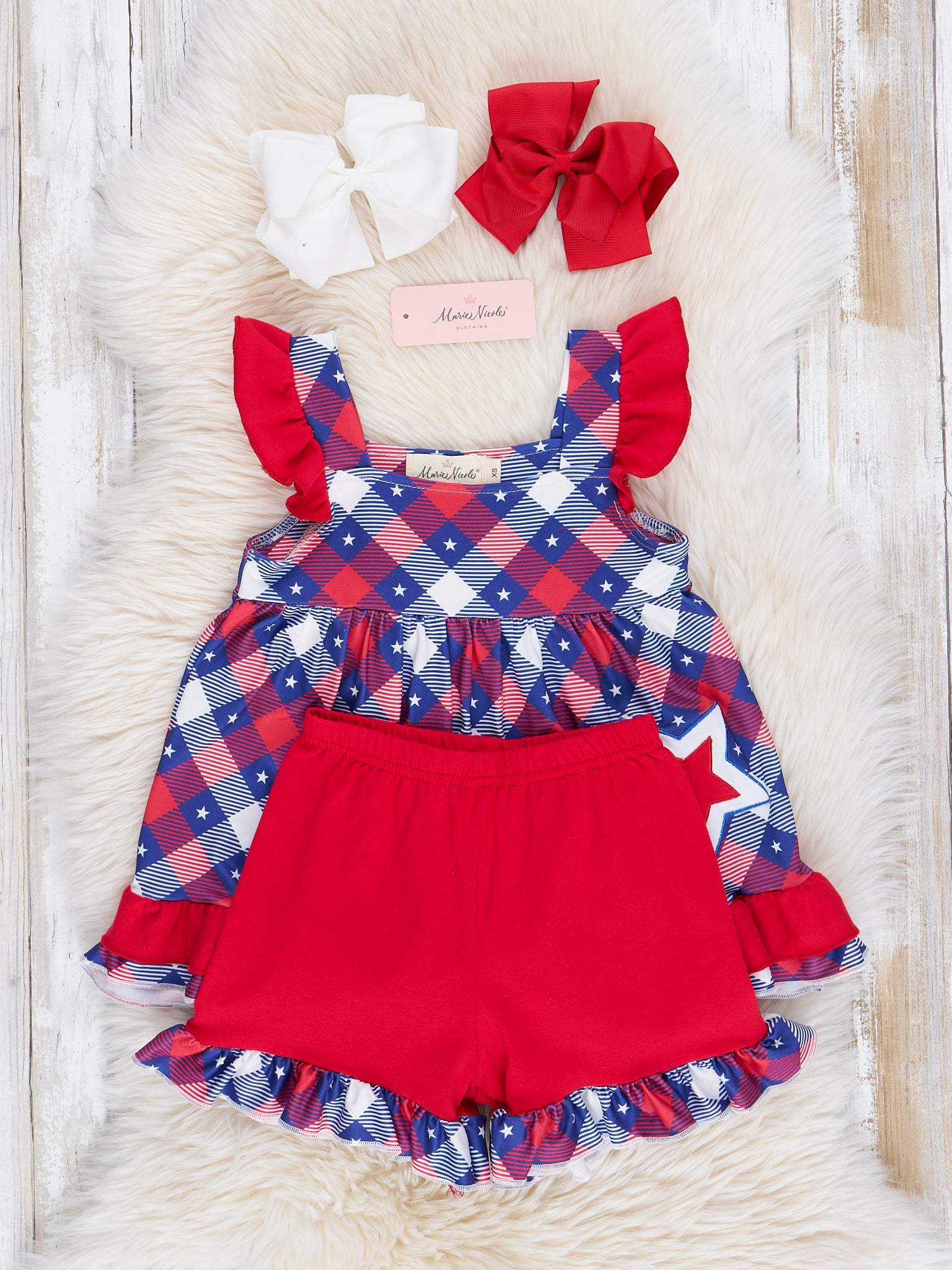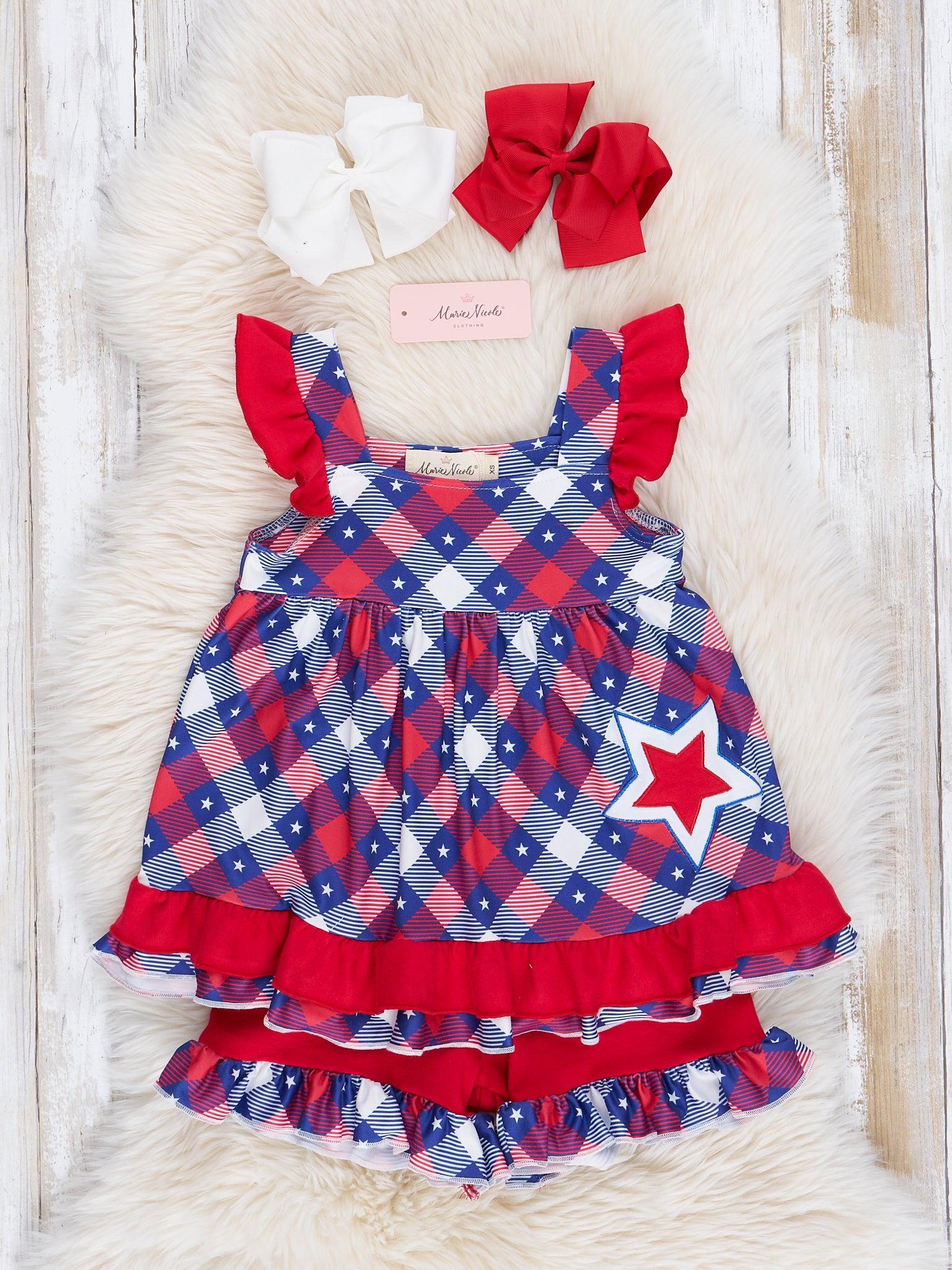 Looking for patriotic kids’ attire for the upcoming holiday? Marie Nicole has many eye-catching children’s outfits perfect for Memorial Day or July 4th. Don your kiddos in their best red, white, and blue to celebrate this summer. Skip the big-box store patriotic kids’ clothing this year and opt for a more distinctive choice with Marie Nicole Clothing.