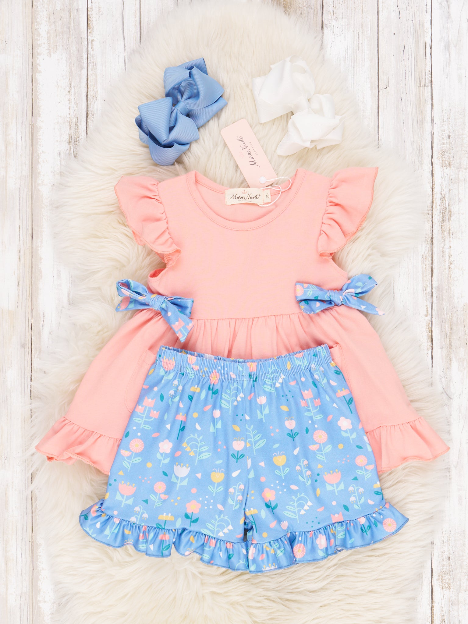 Peach Floral Ruffle Bow Outfit