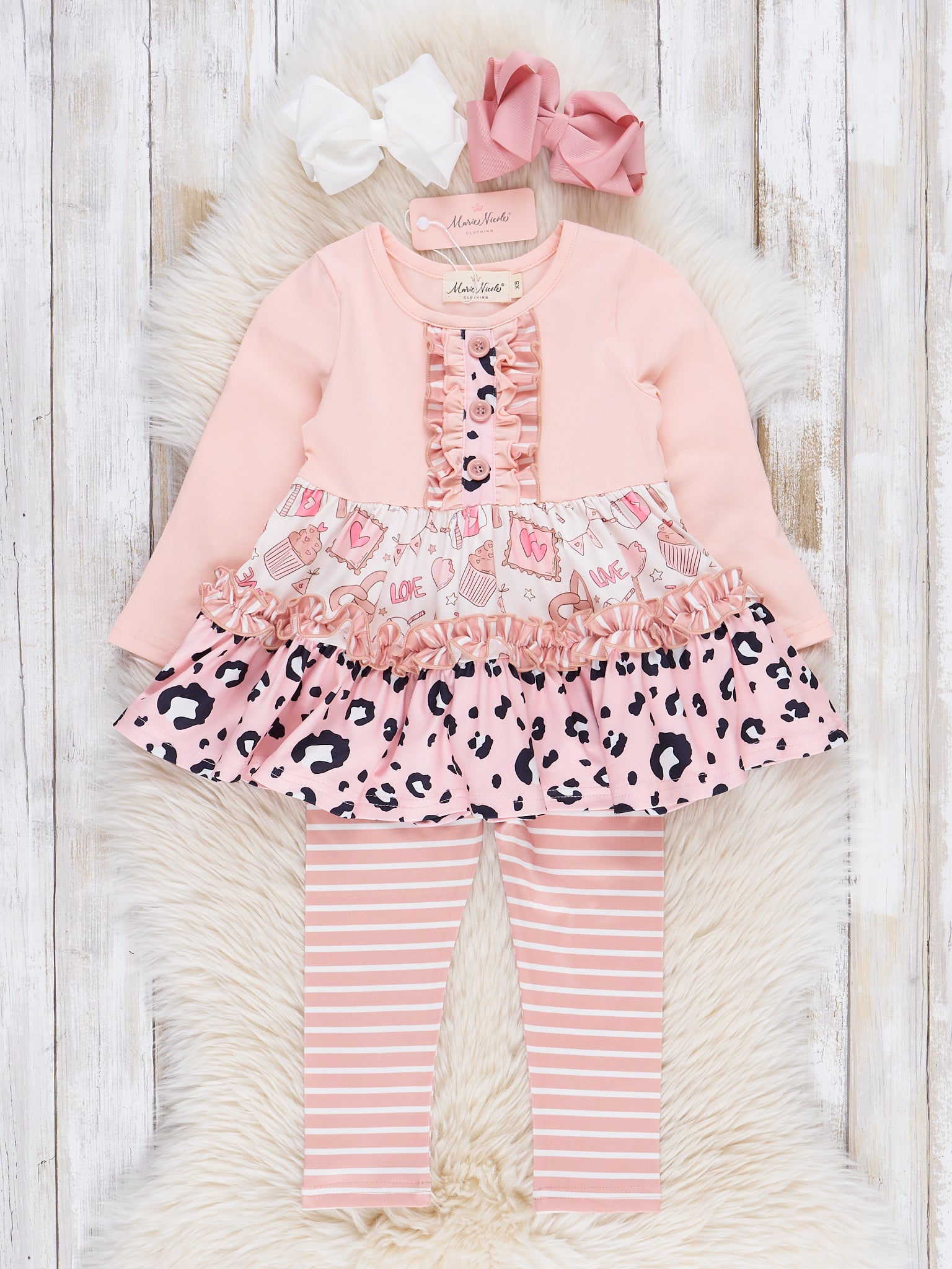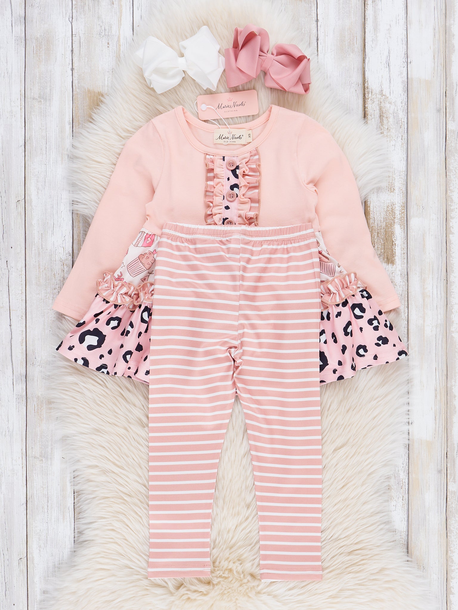 Peach Leopard Stripes Ruffle Outfit
