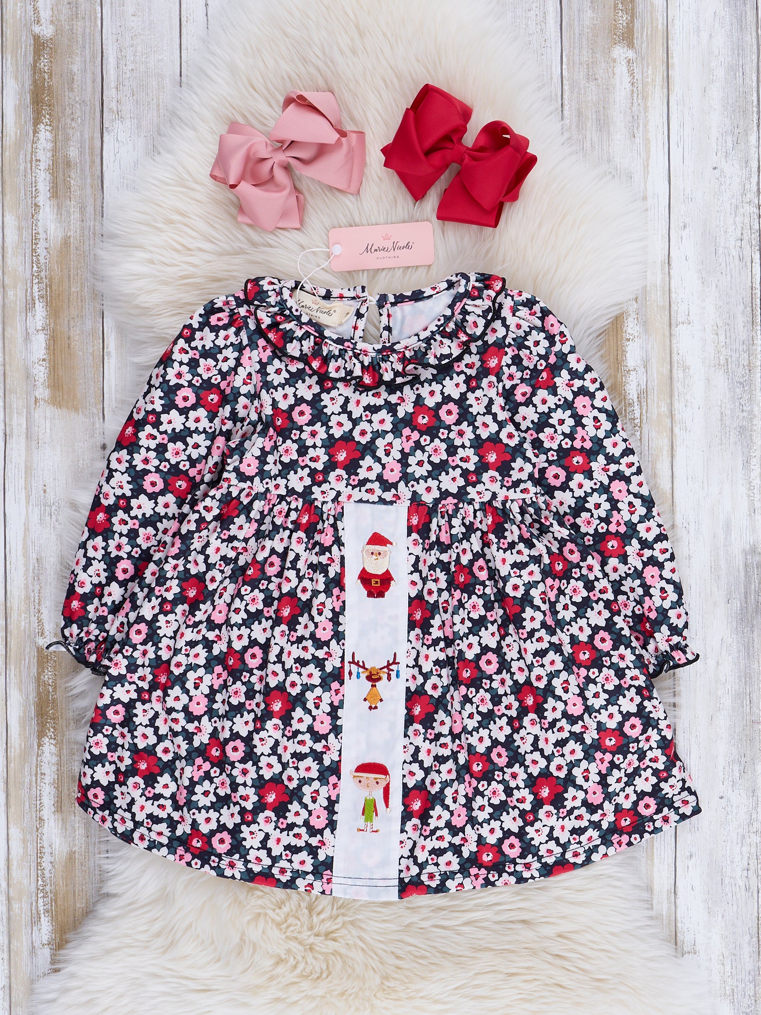Pink & Black Daisies Santa Ruffle Dress