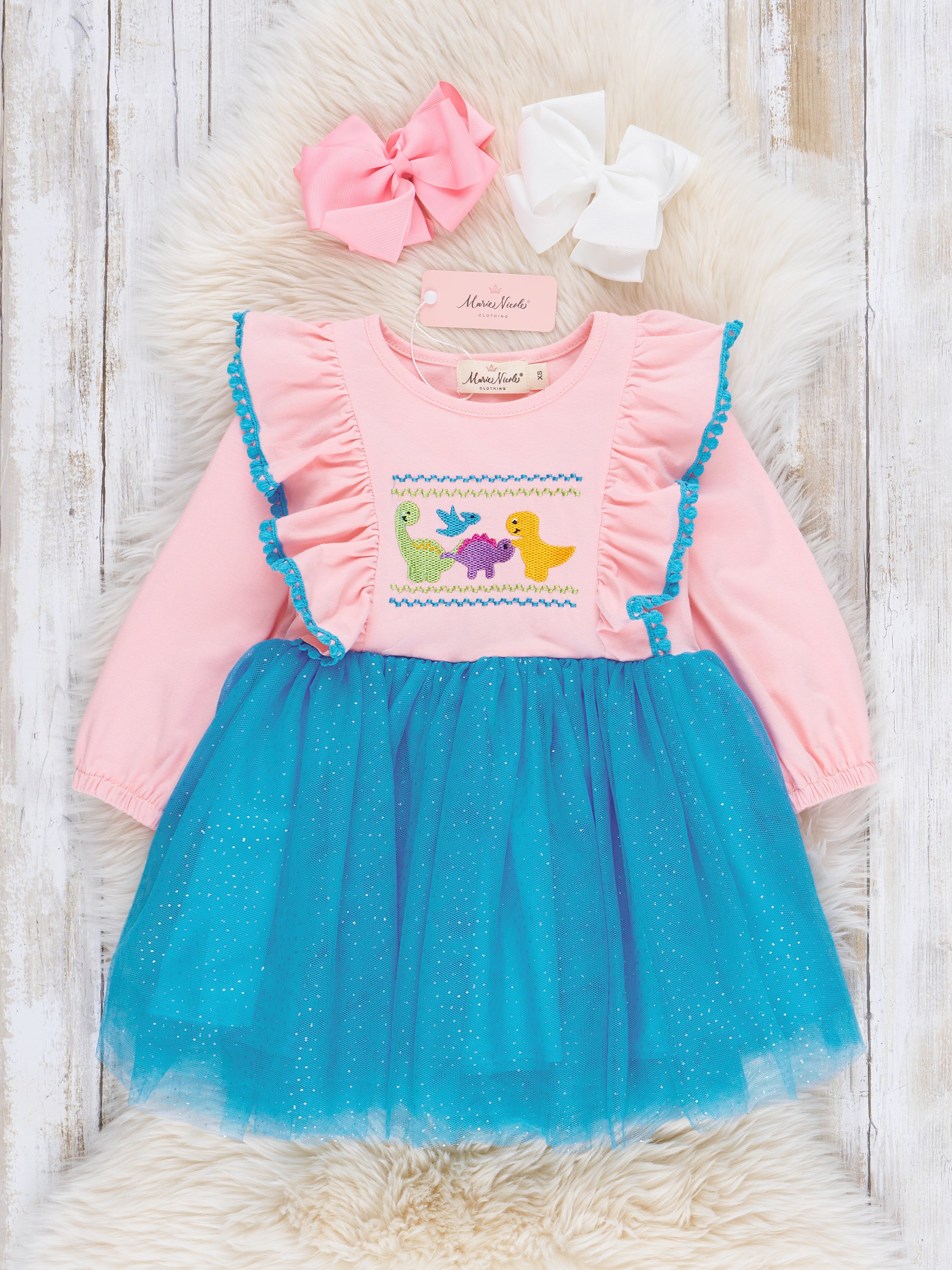 Pink & Blue Sparkle Dinosaurs Tulle Dress