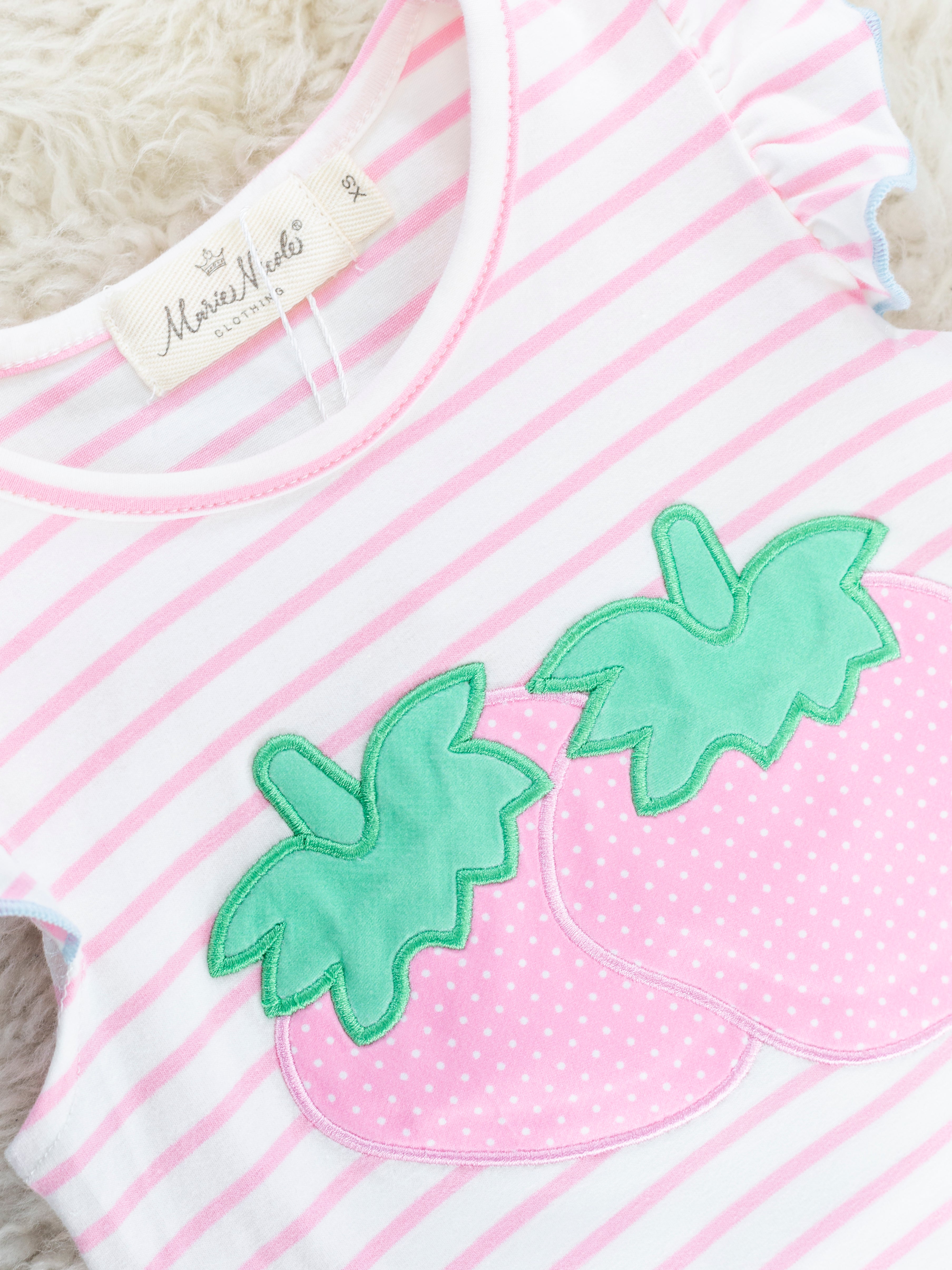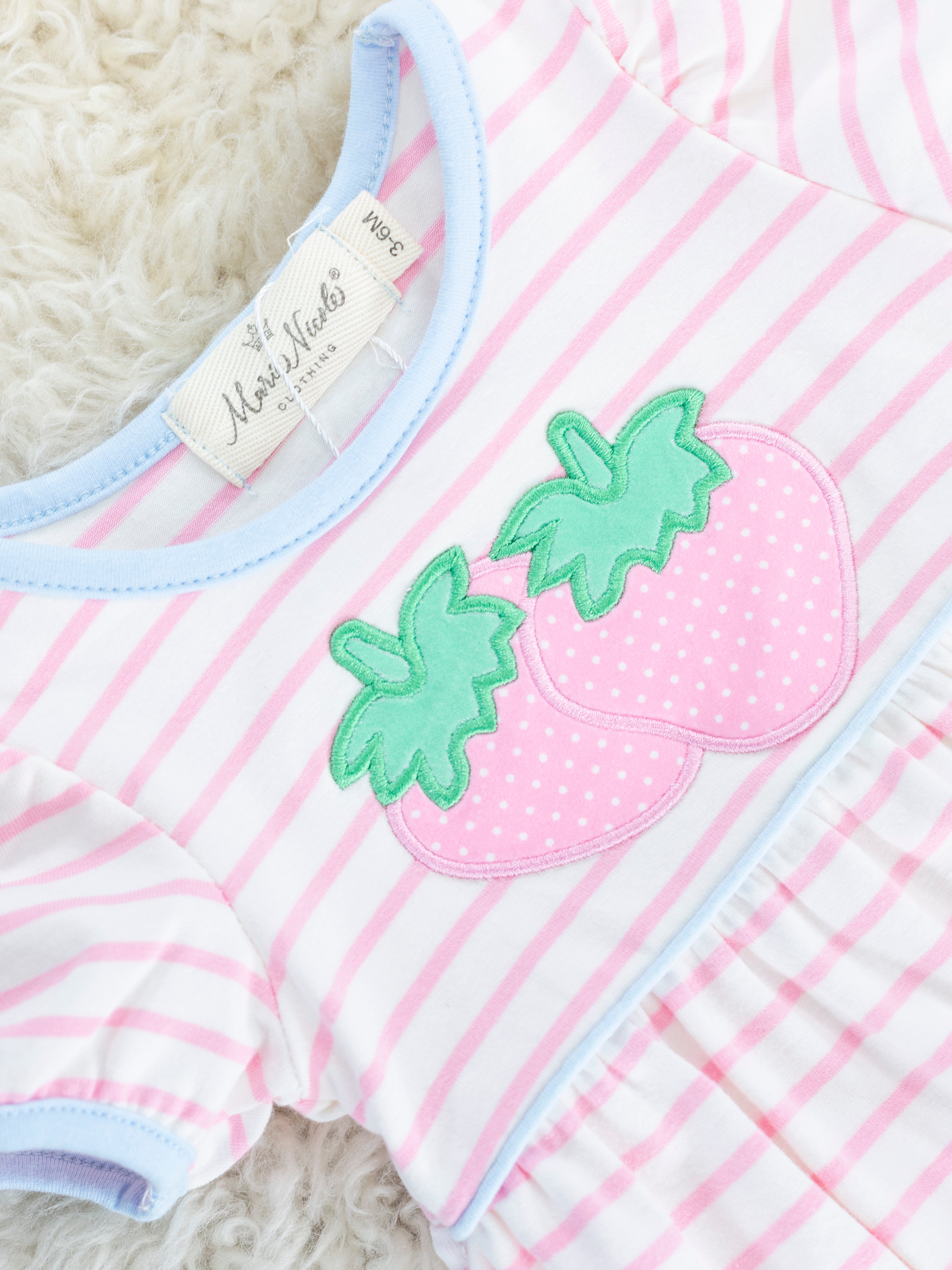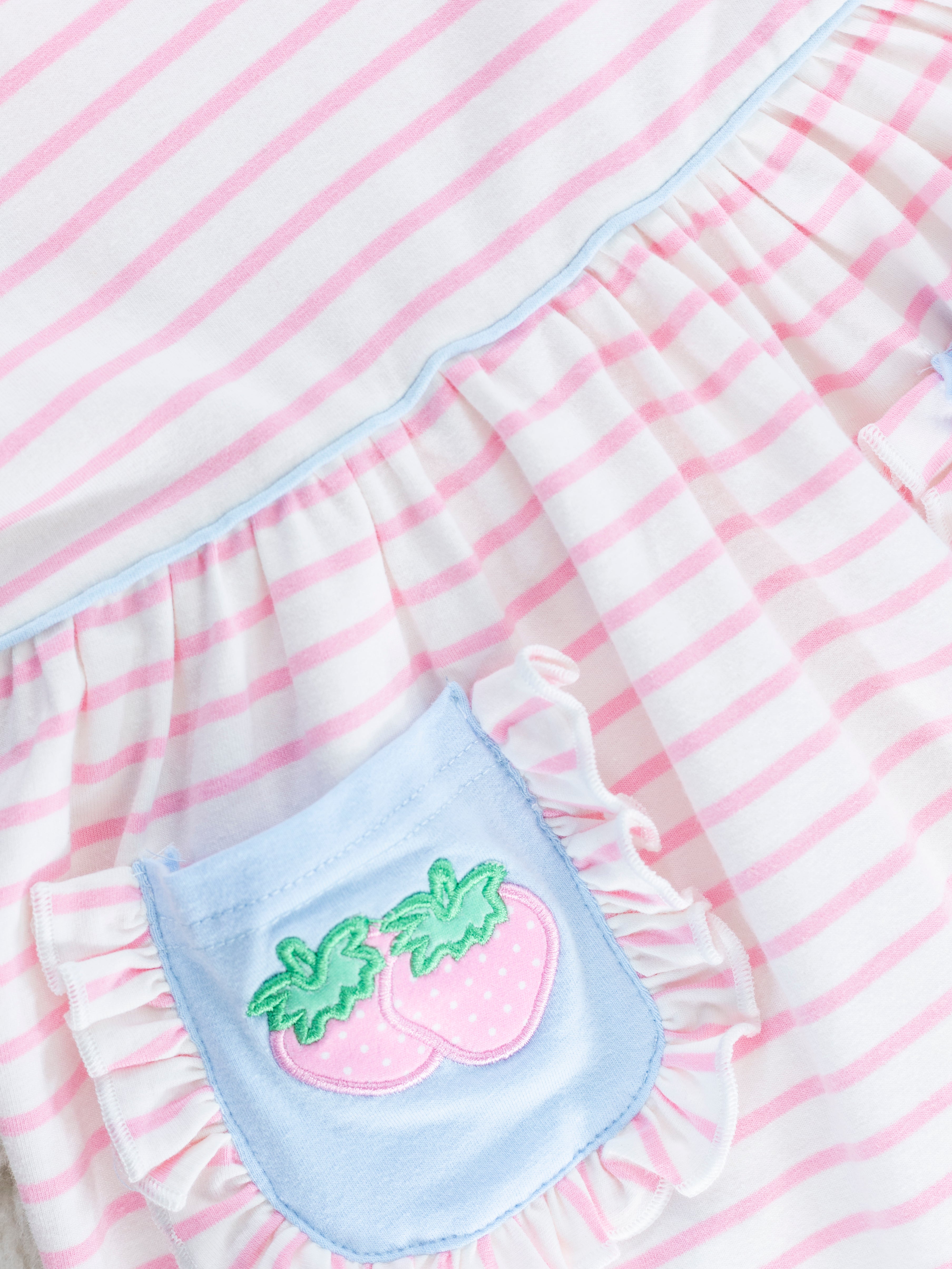 Pink & Blue Striped Strawberry Ruffle Outfit
