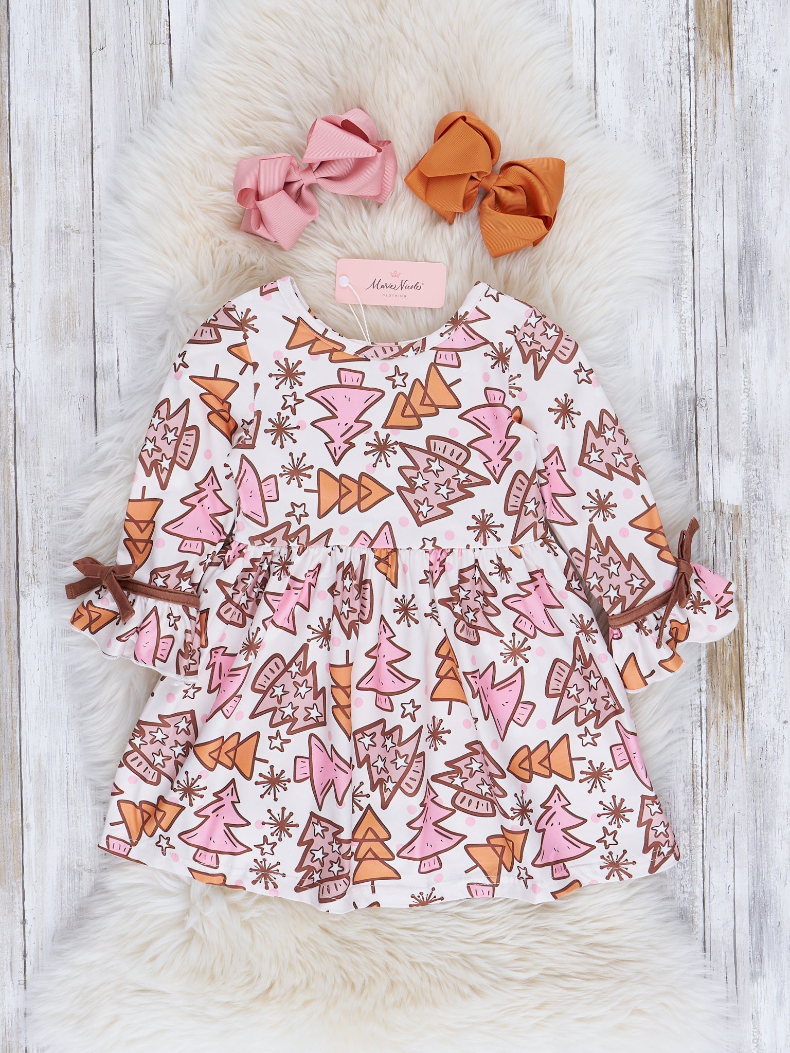 Home › Pink & Brown Christmas Tree Doodles Sister Set