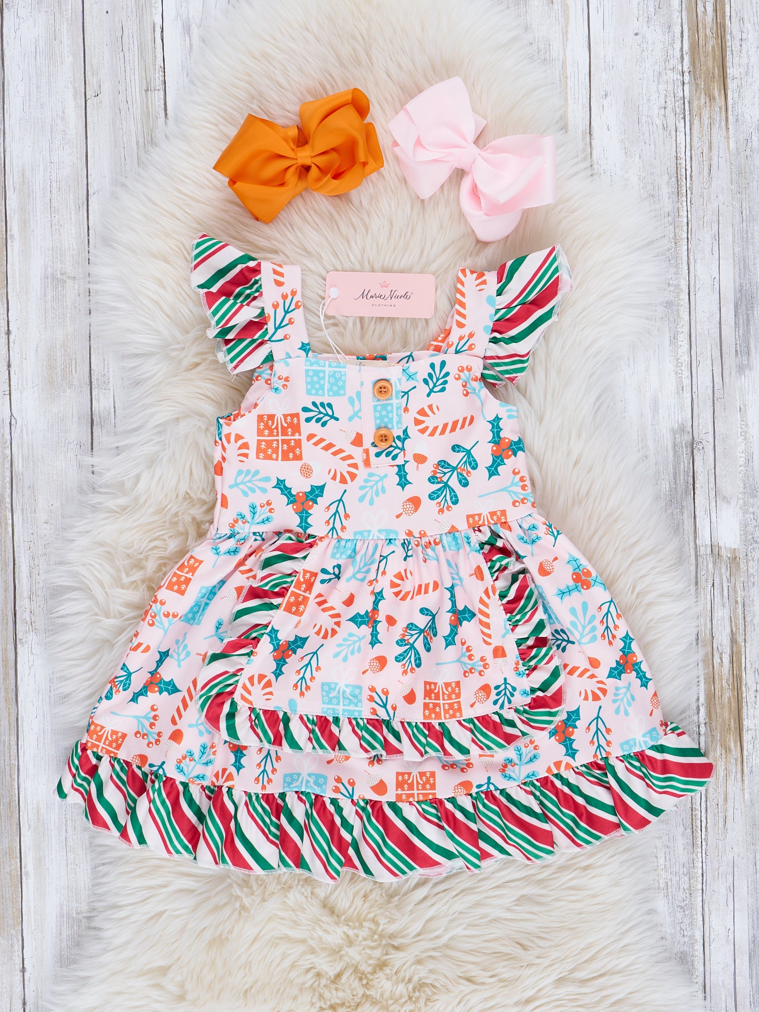 Pink & Candy Stripe Holiday Ruffle Dress