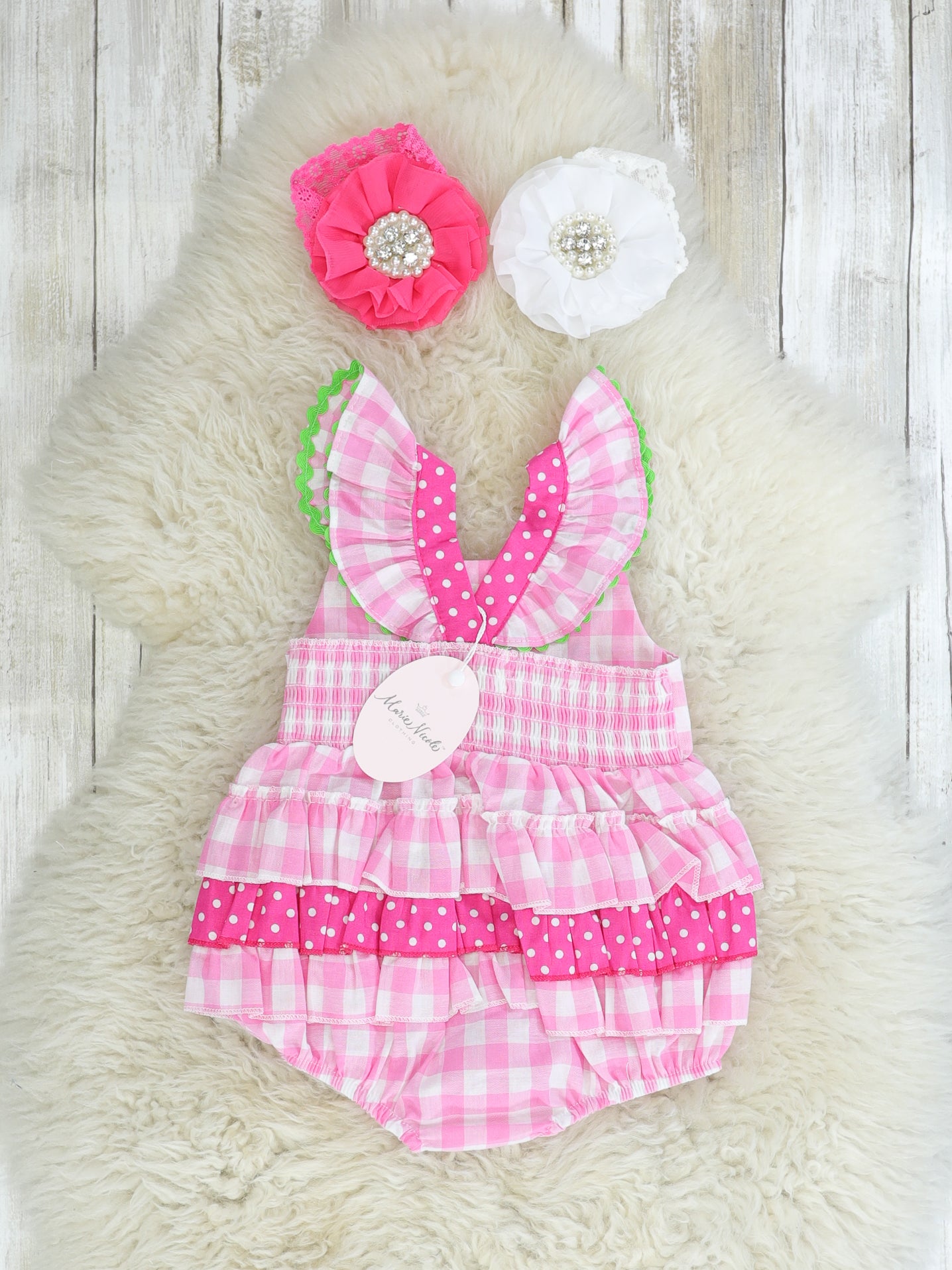 Pink Check Strawberry Ruffle Bubble