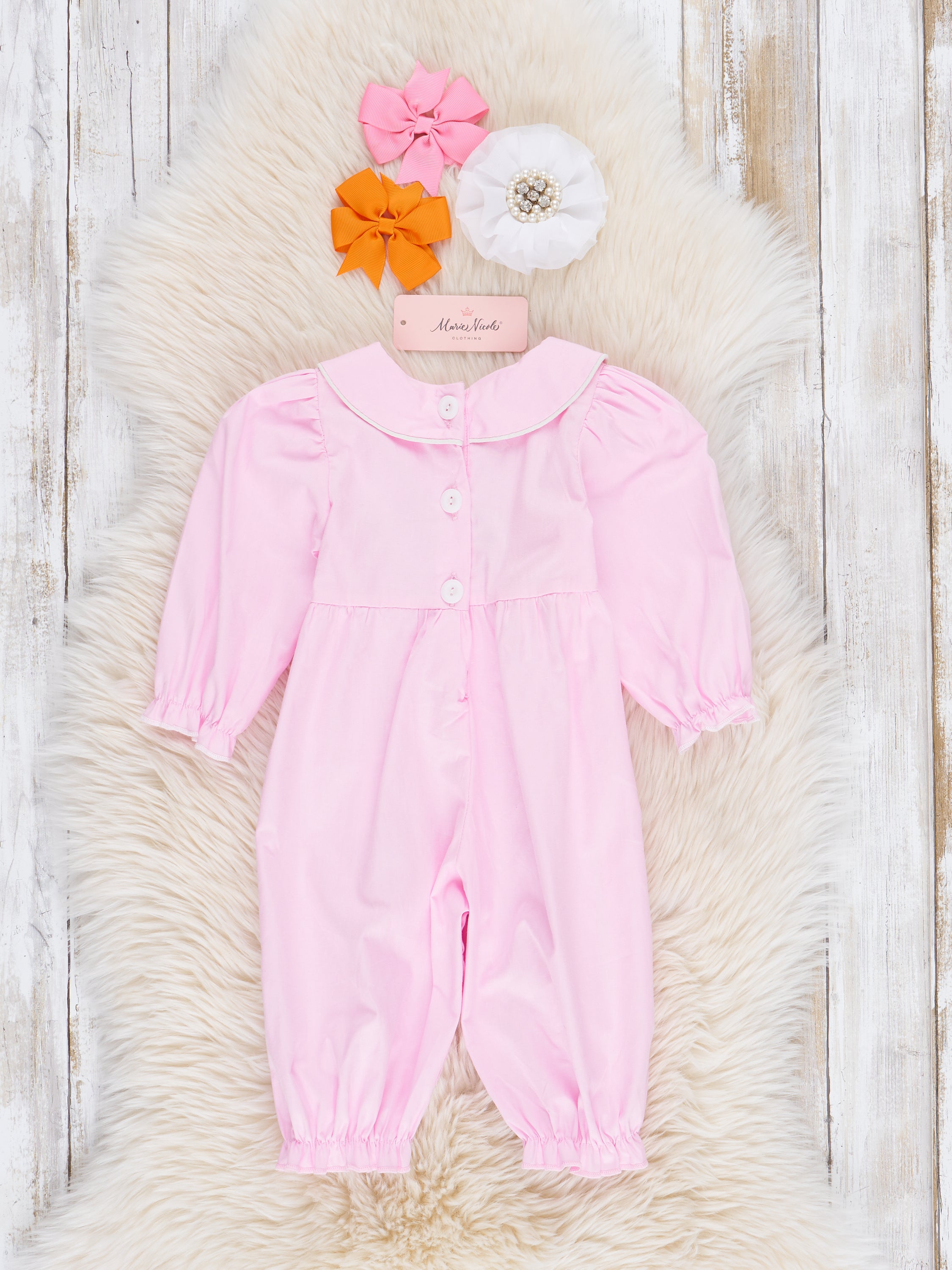 Home › Pink Cotton Pumpkin Truck Smocked Sister Set