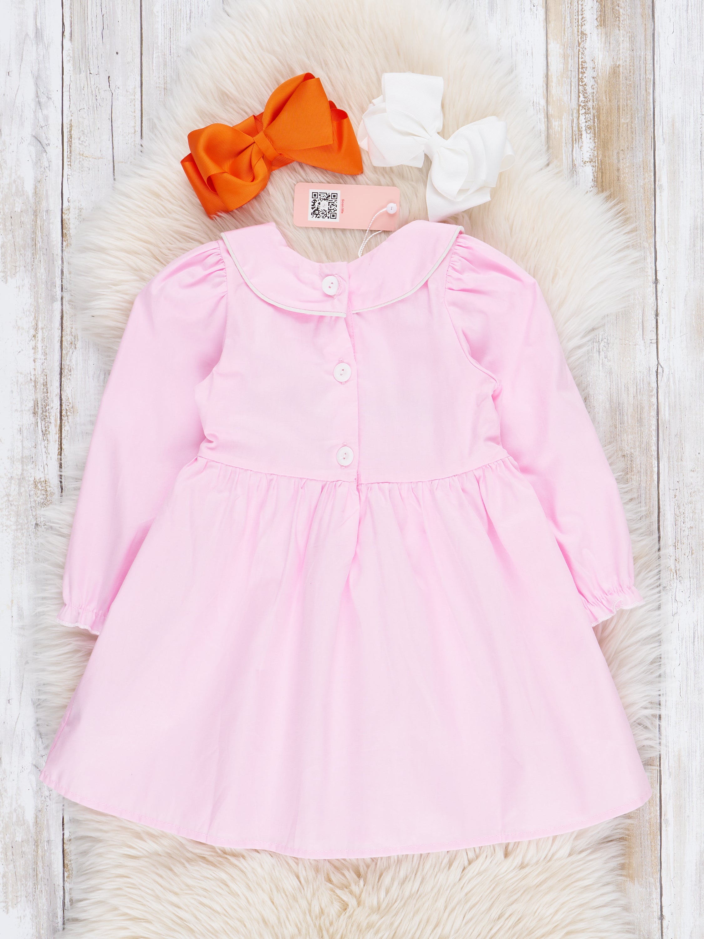 Pink Cotton Pumpkin Truck Smocked Dress