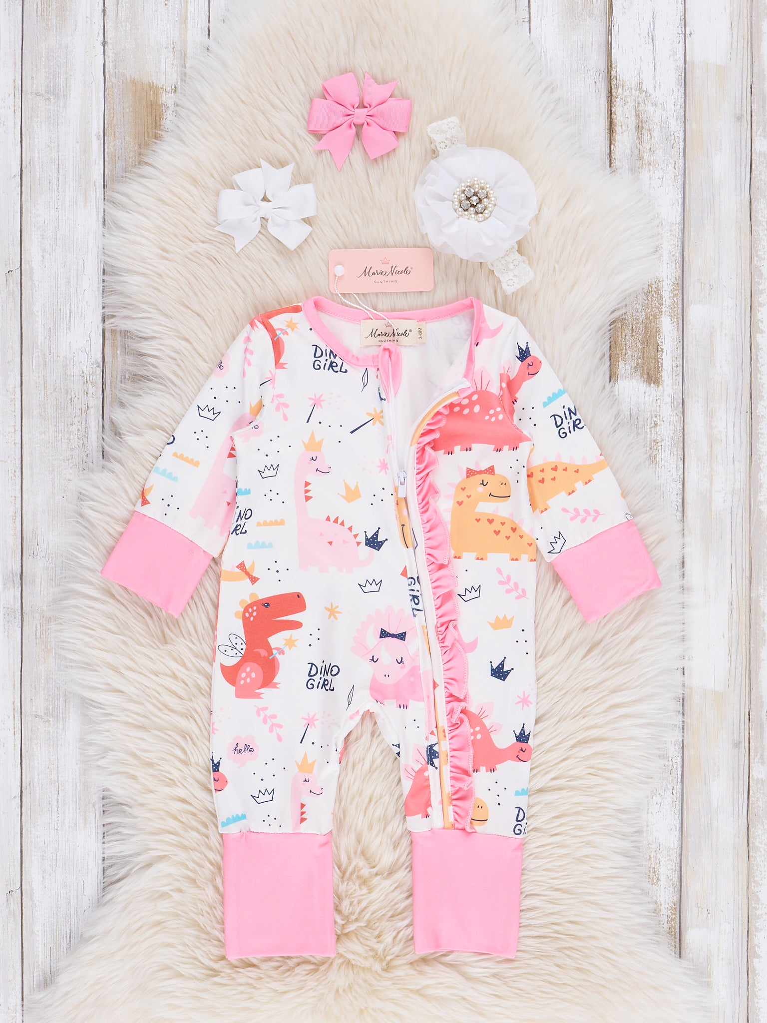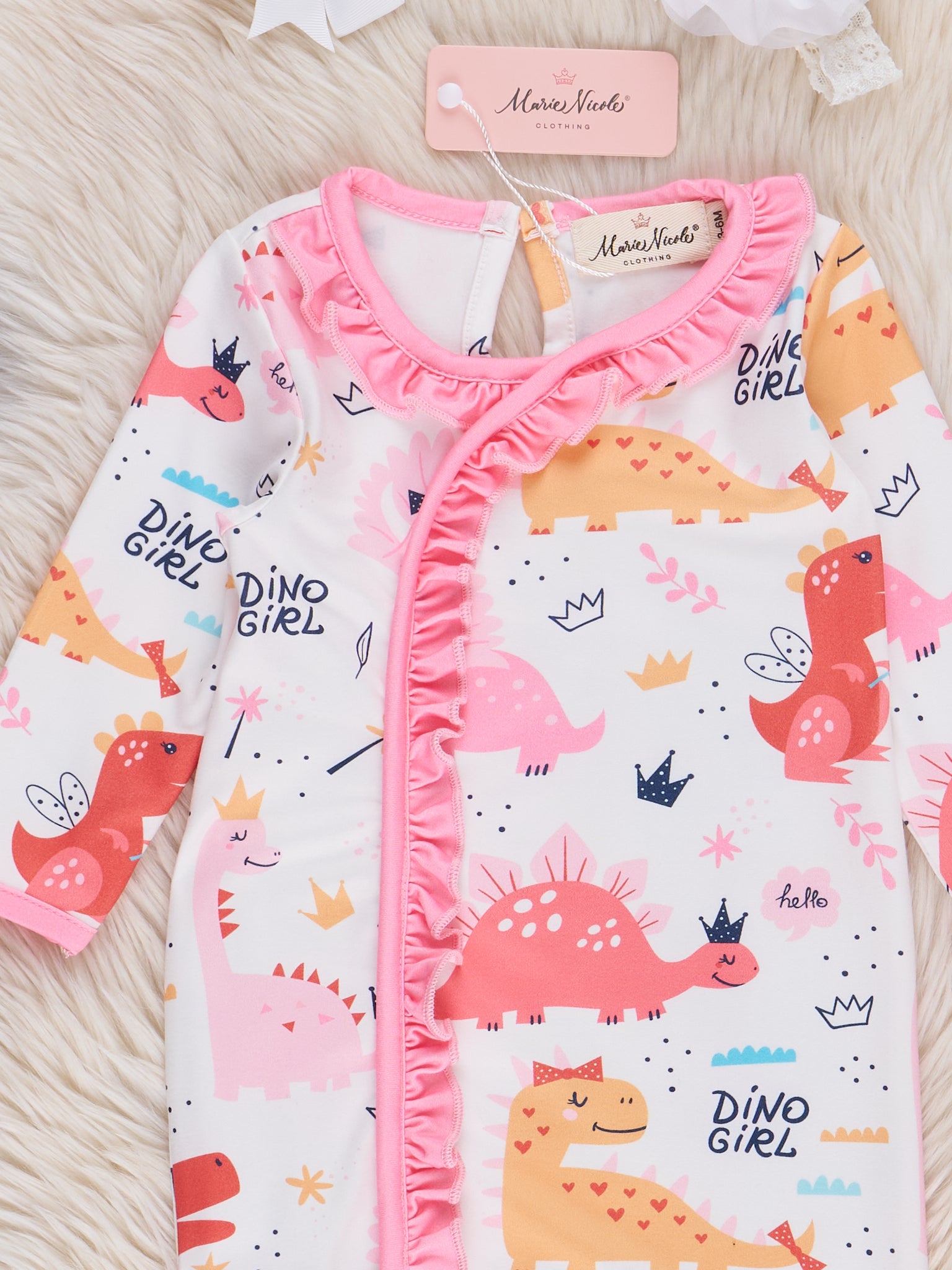 Pink Dino Girl Ruffle Sleeper Pajamas
