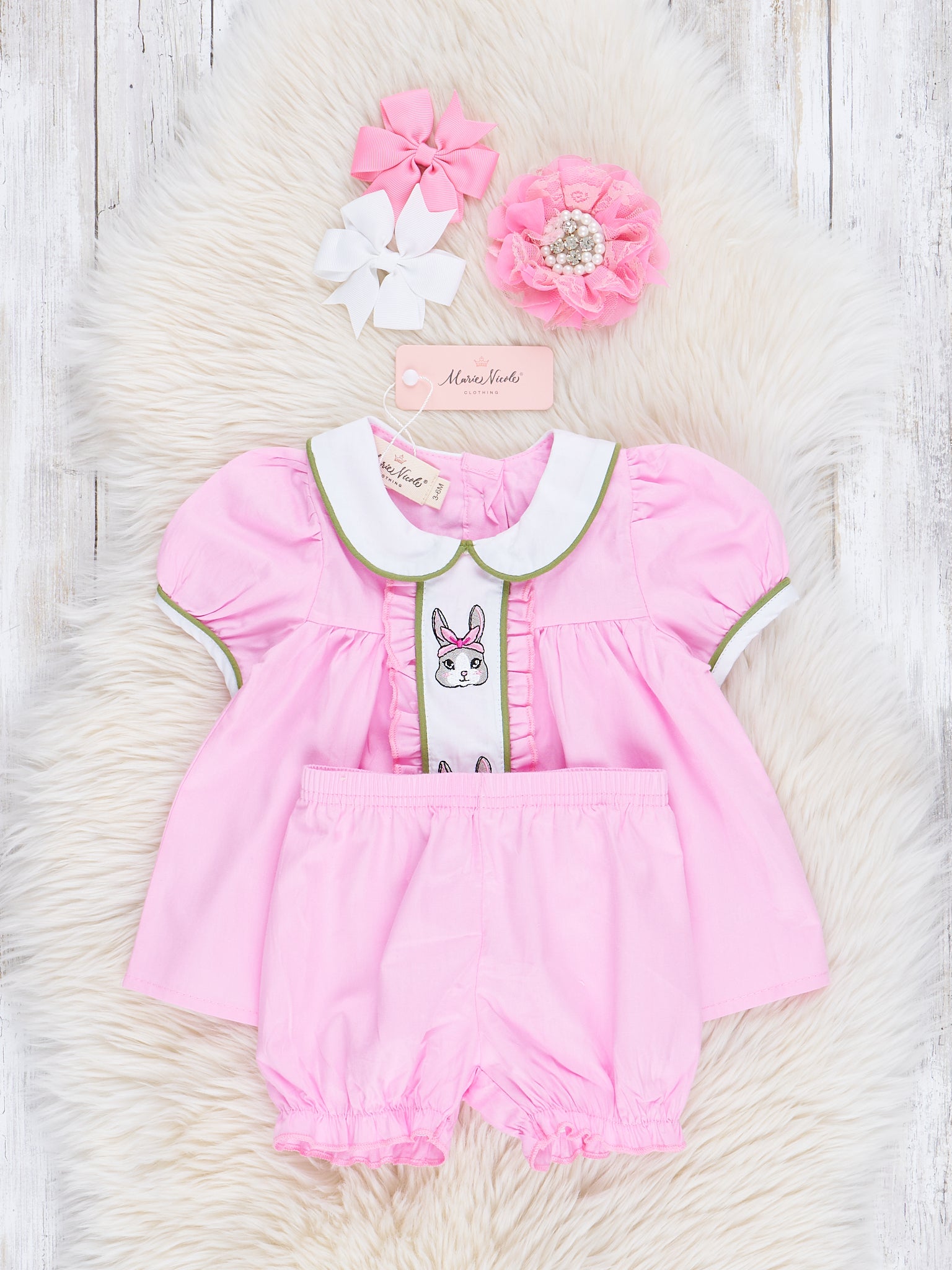 Pink Embroidered Bunny Bloomers Outfit