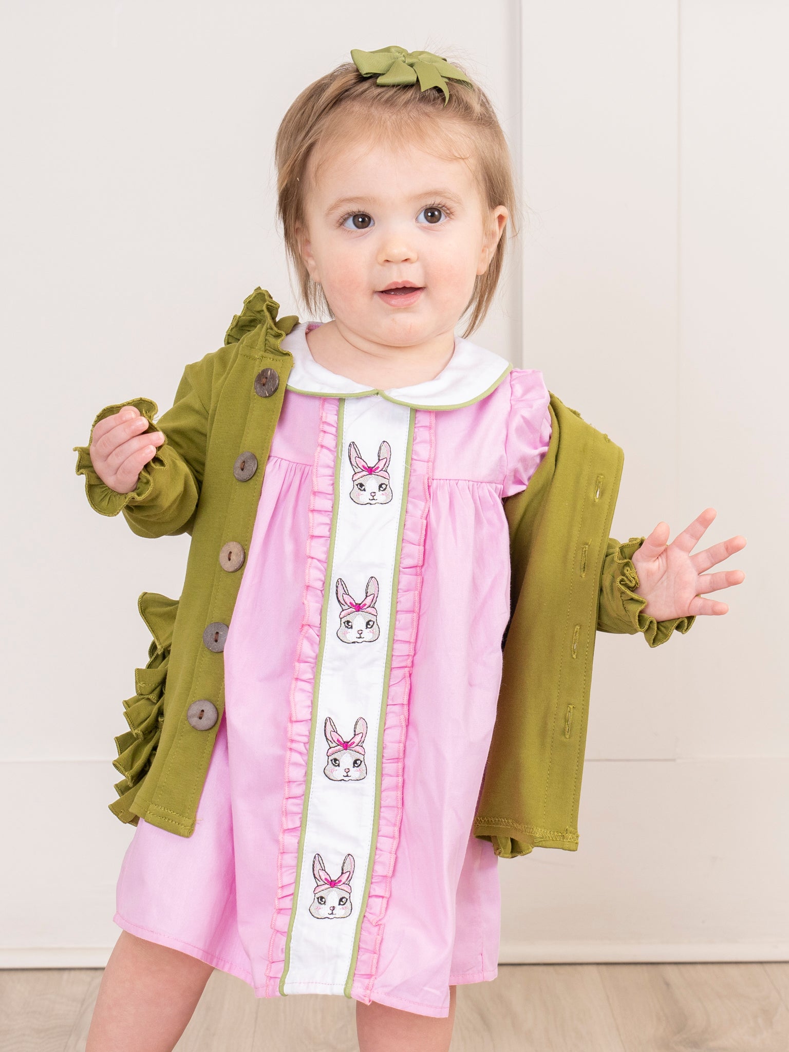 Pink Embroidered Bunny Sister Set