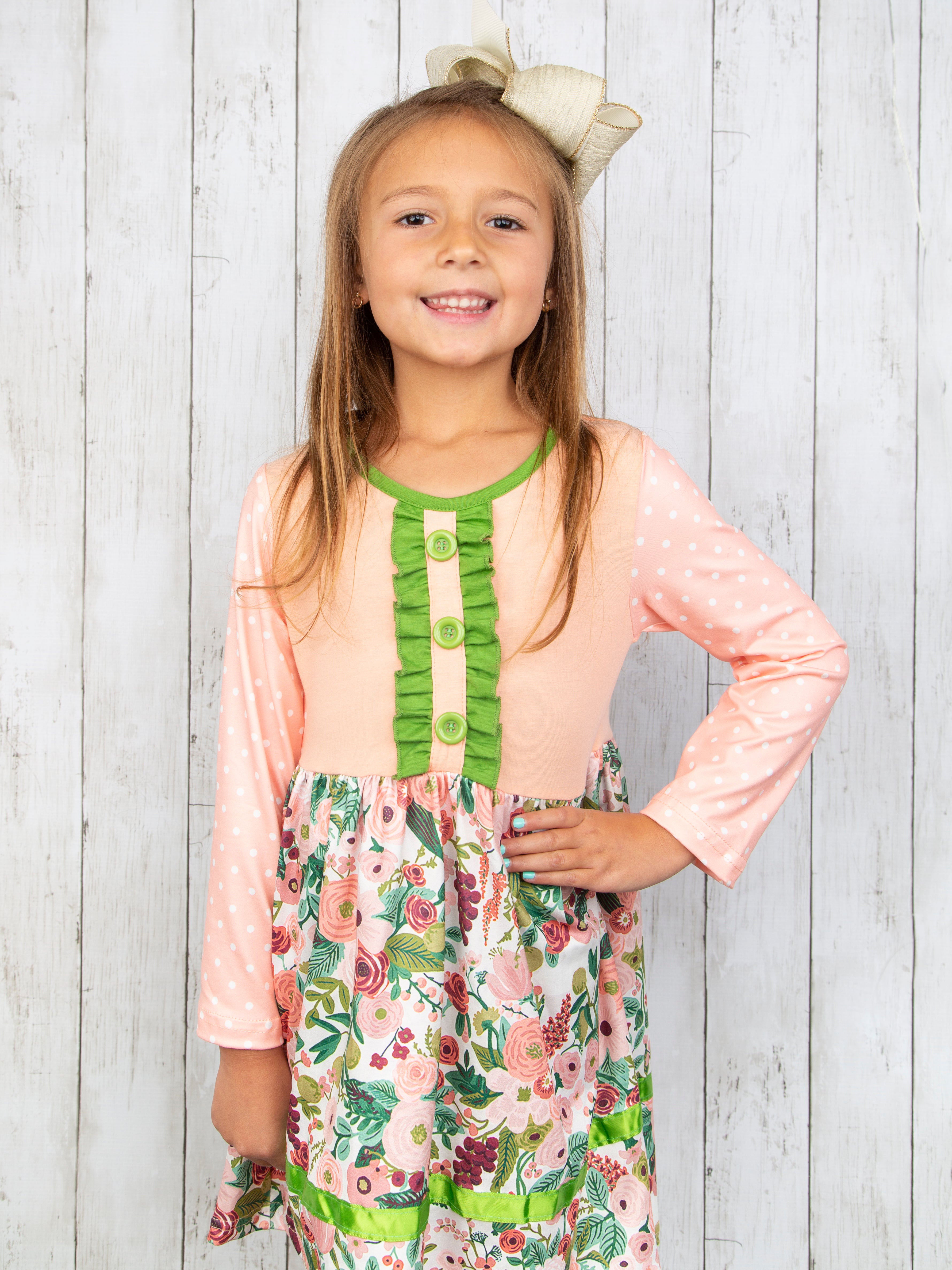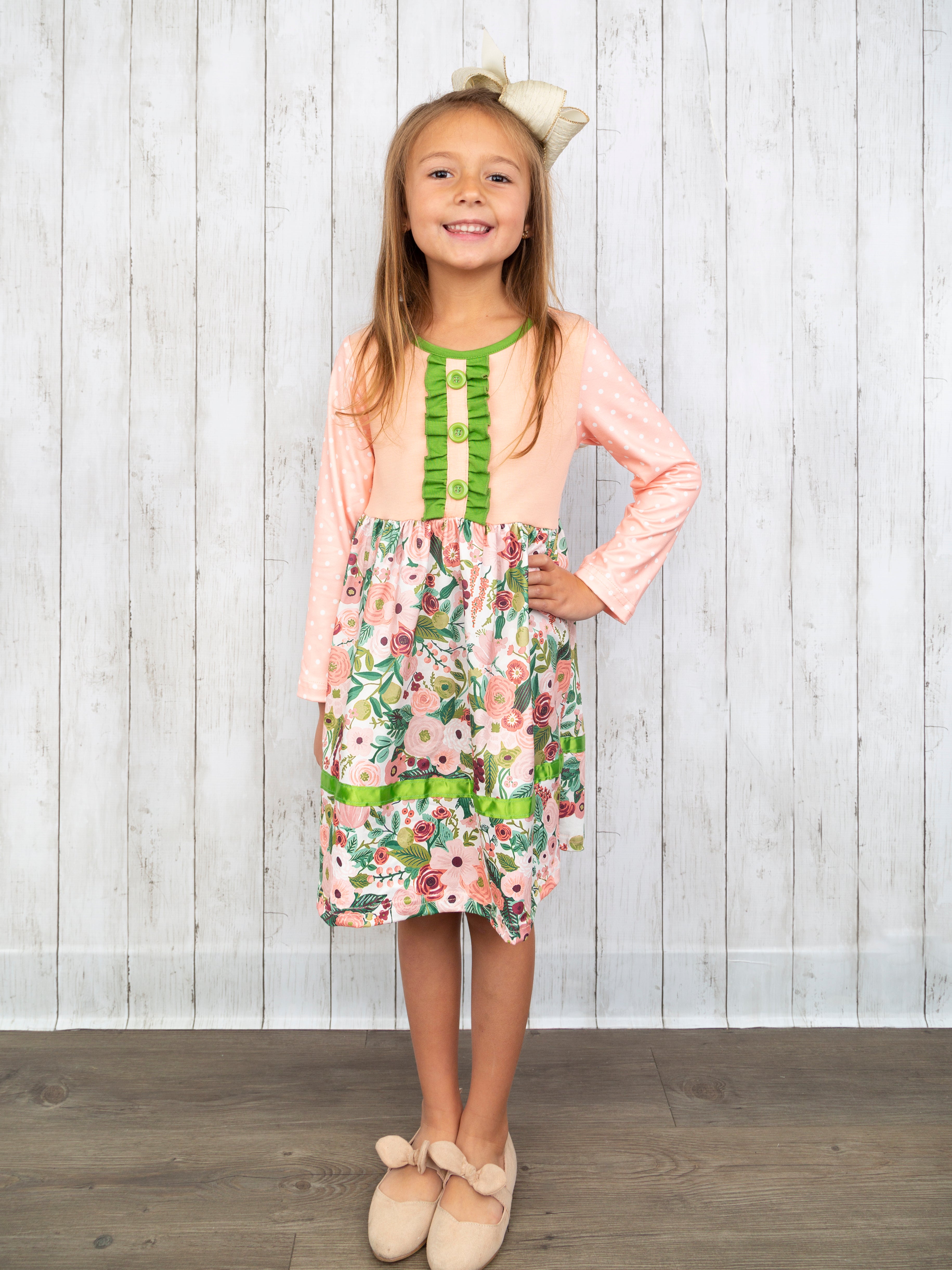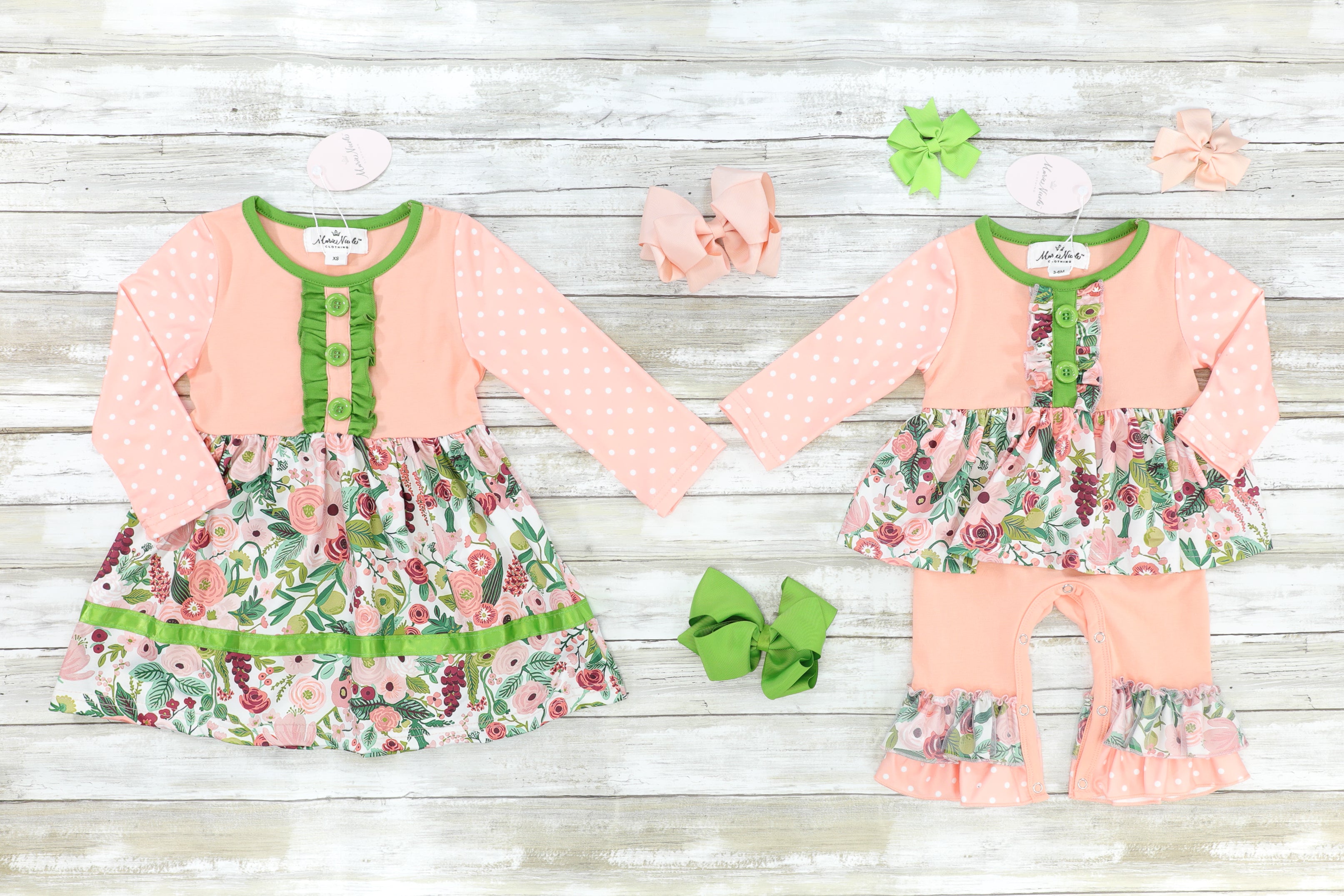 Home › Pink & Green Floral Dress Sister Set