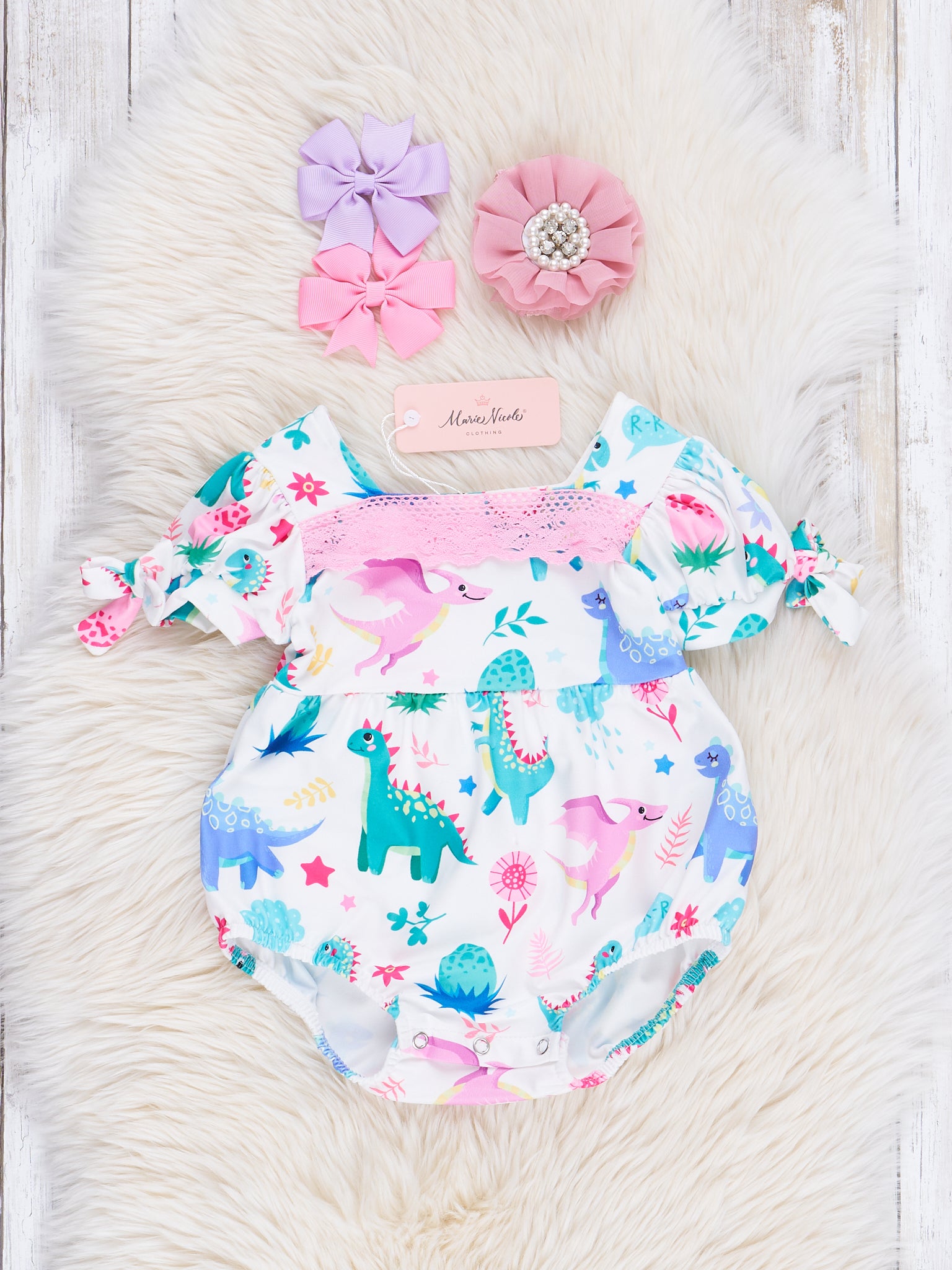 Pink Lace Watercolor Dinosaur Ruffle Bubble