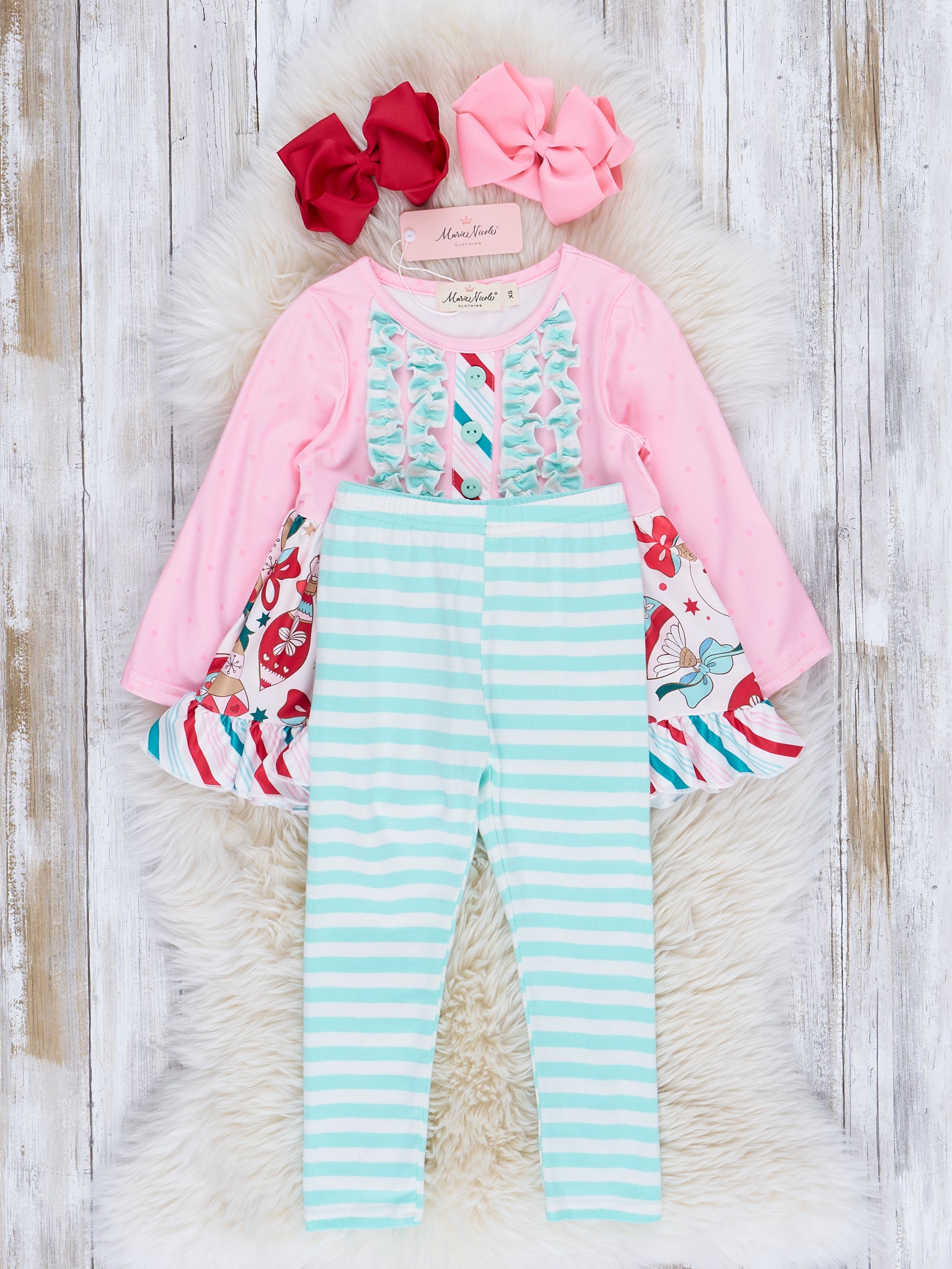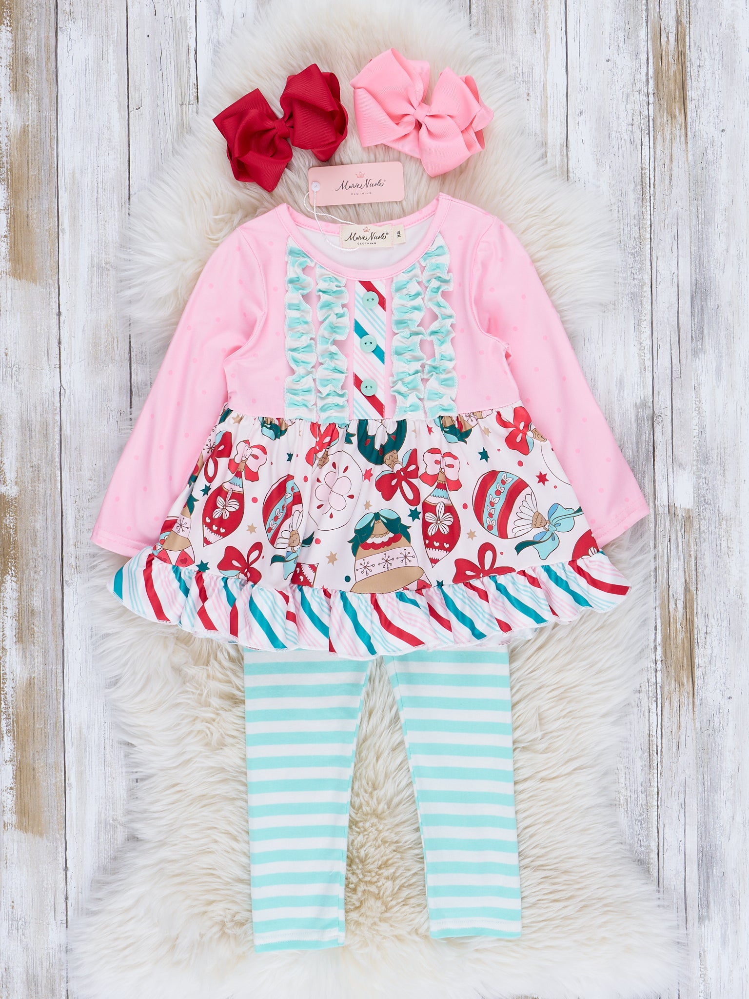 Pink & Mint Holiday Ornaments Ruffle Outfit