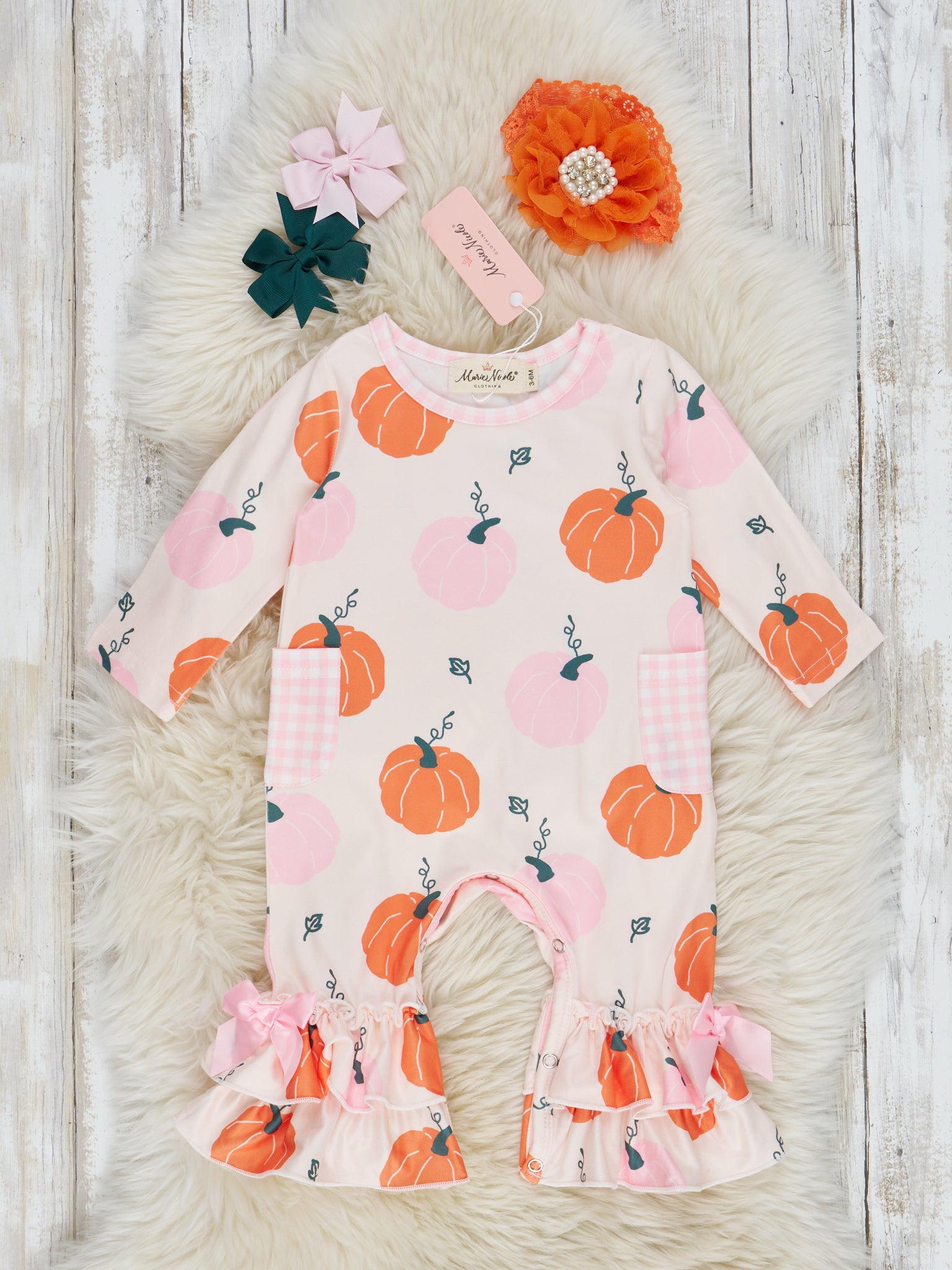 Pink & Orange Sweet Gourds Gingham Ruffle Romper