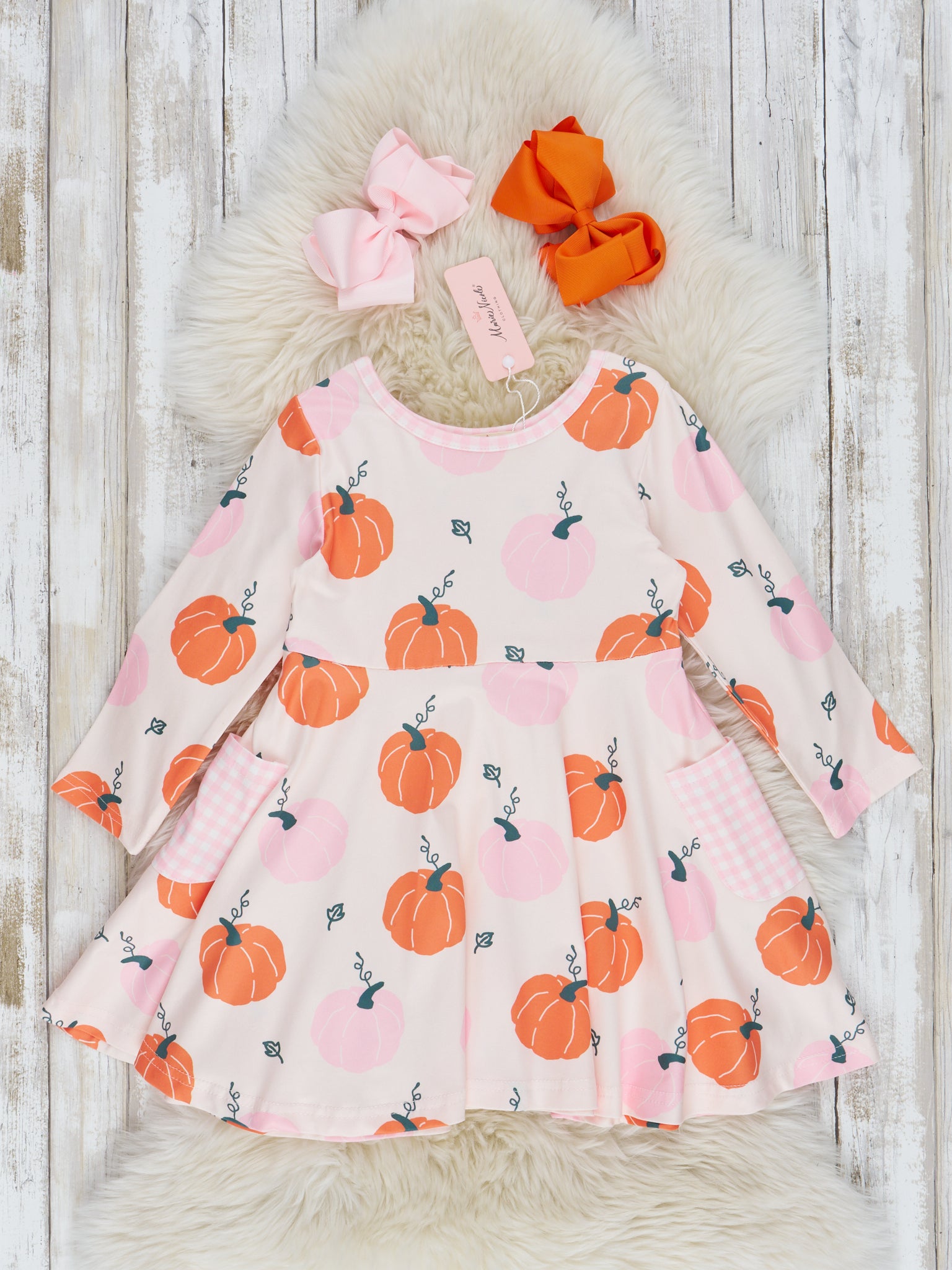 Pink & Orange Sweet Gourds Gingham Ruffle Dress