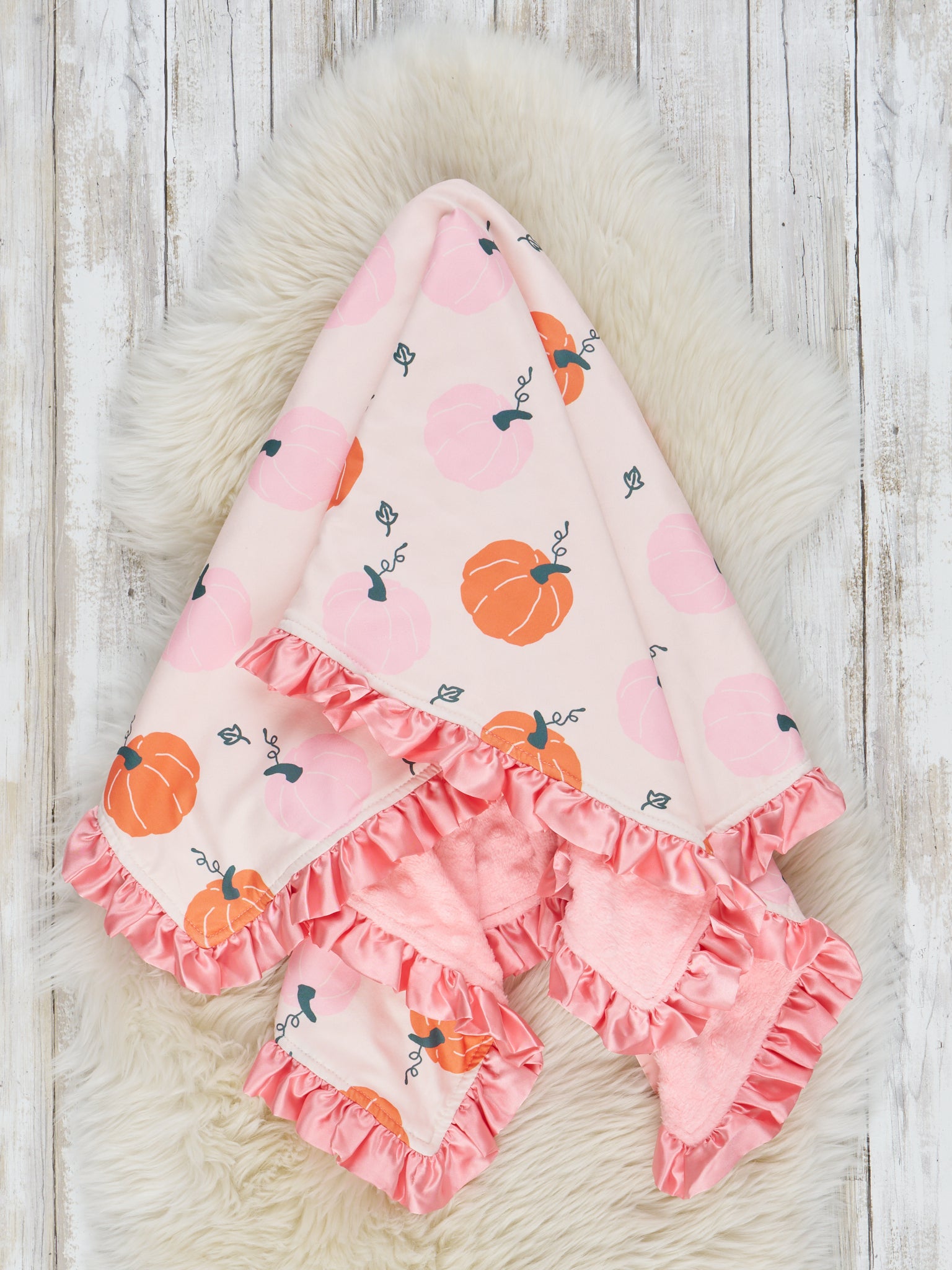 Pink & Orange Sweet Gourds Ruffle Minky Blanket