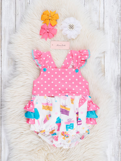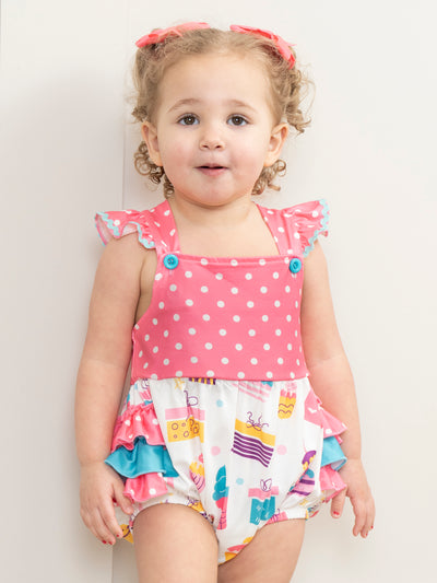 Get ready to party with our Pink Party Treats Ruffle Bubble! This cute and fun bubble features playful pink polka dots and ruffles, perfect for any celebration. Don't forget to snag the matching sister set for double the cuteness. Let the party begin! 🎉