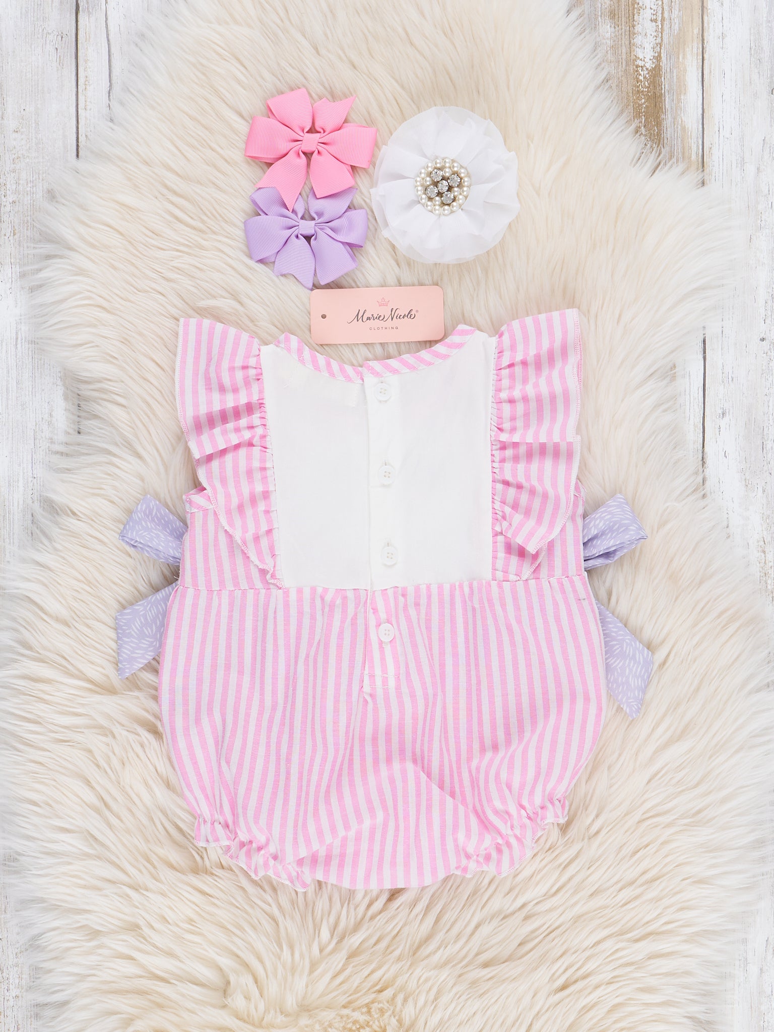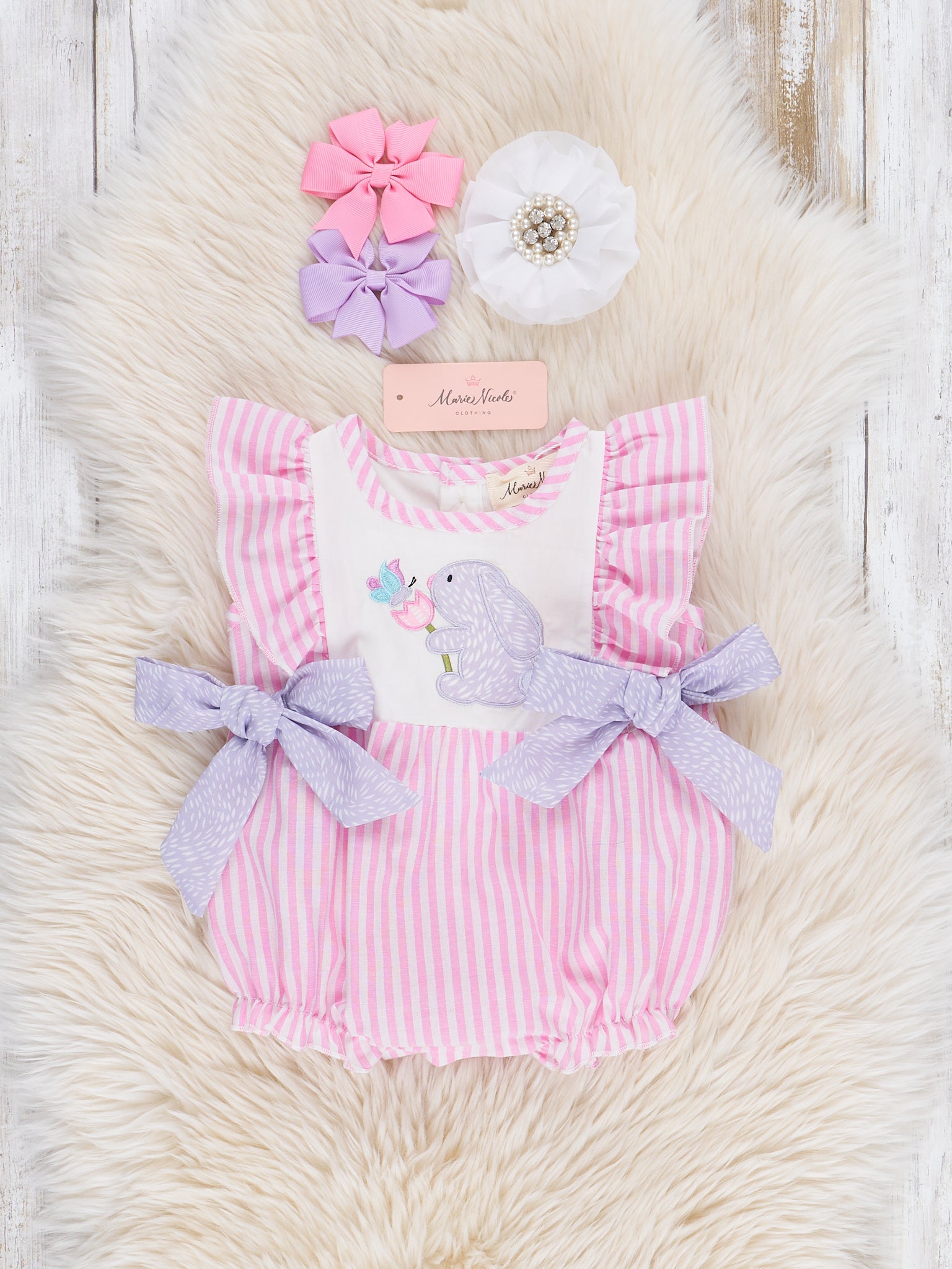 Pink Pinstriped Bunny Ruffle Bubble