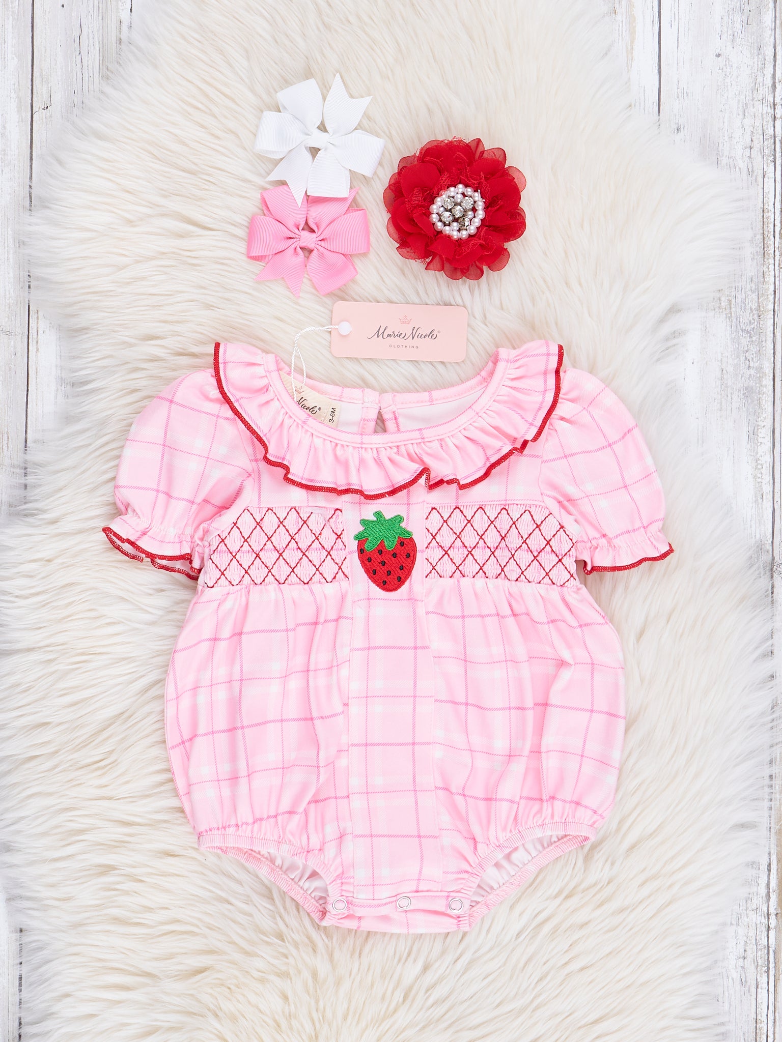 Home › Pink Plaid Smocked Strawberry Sister Set