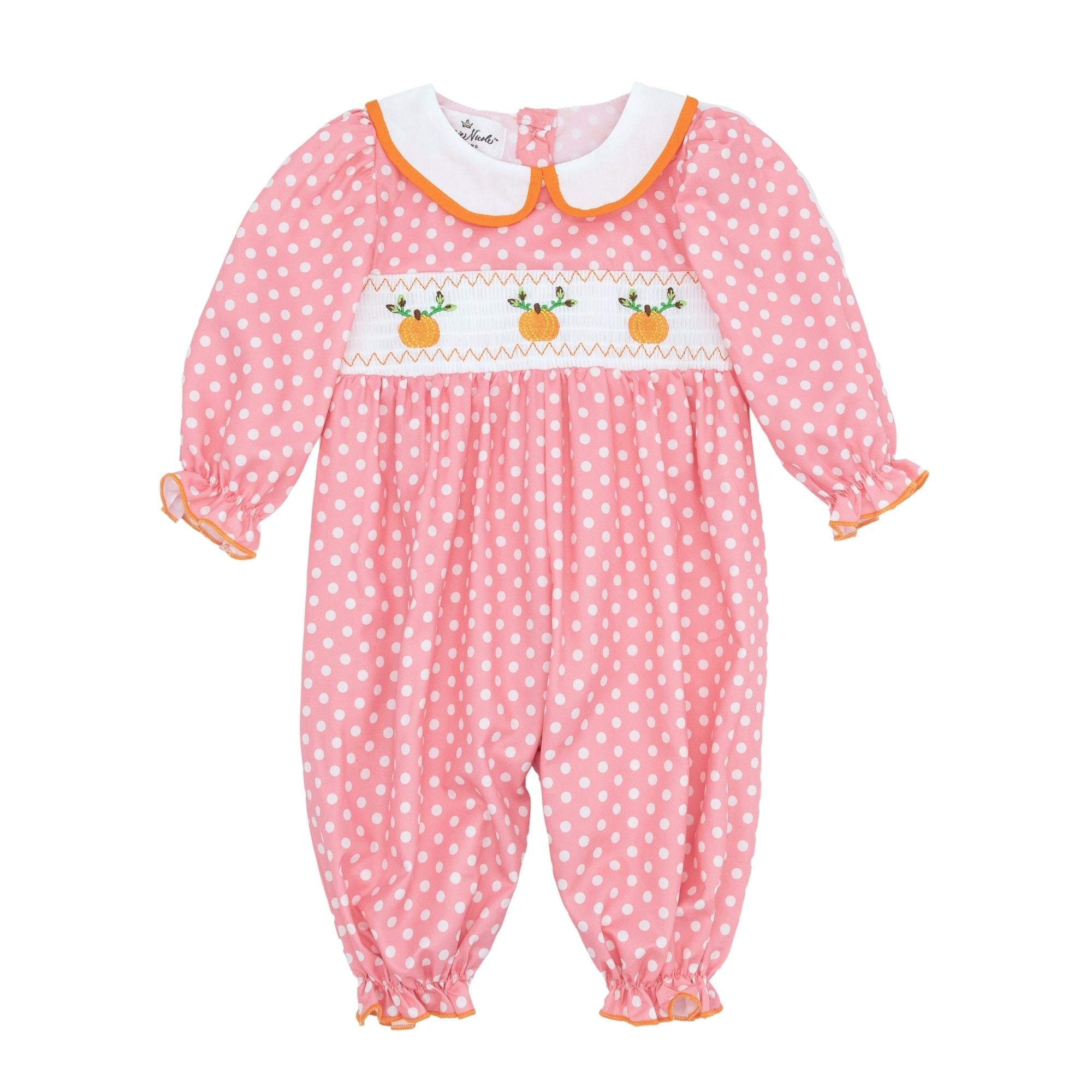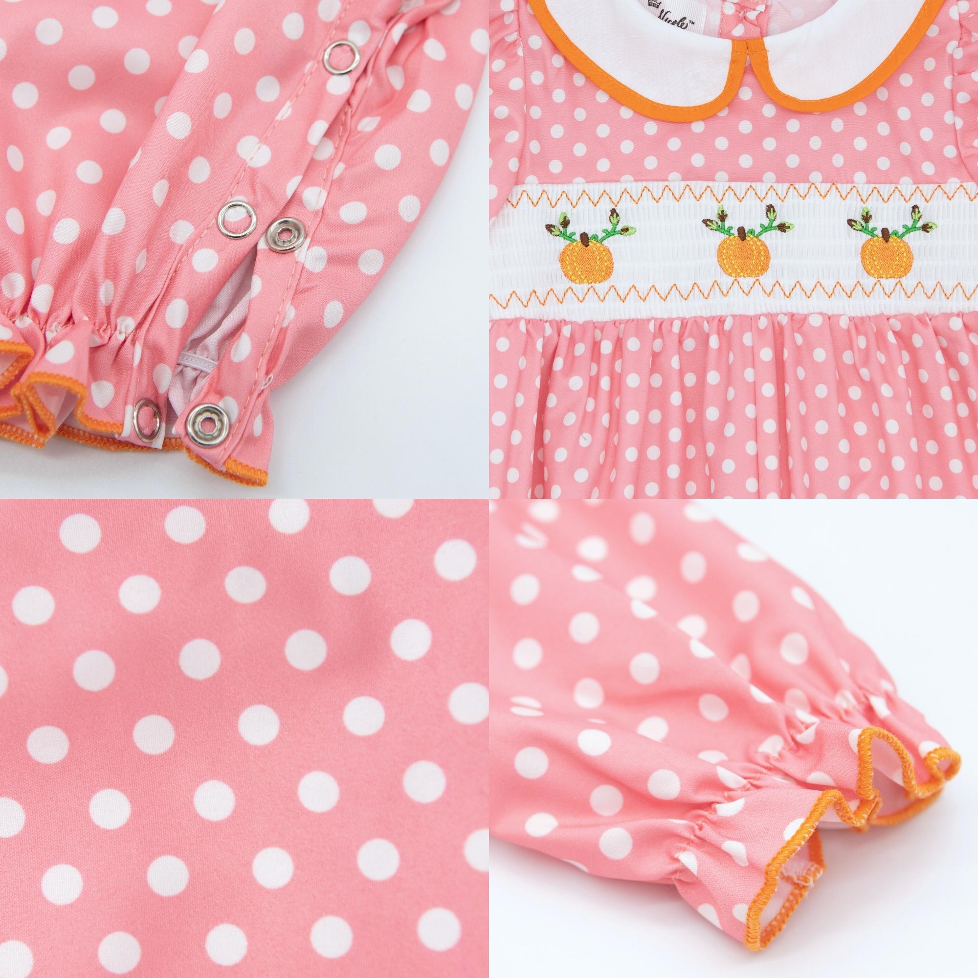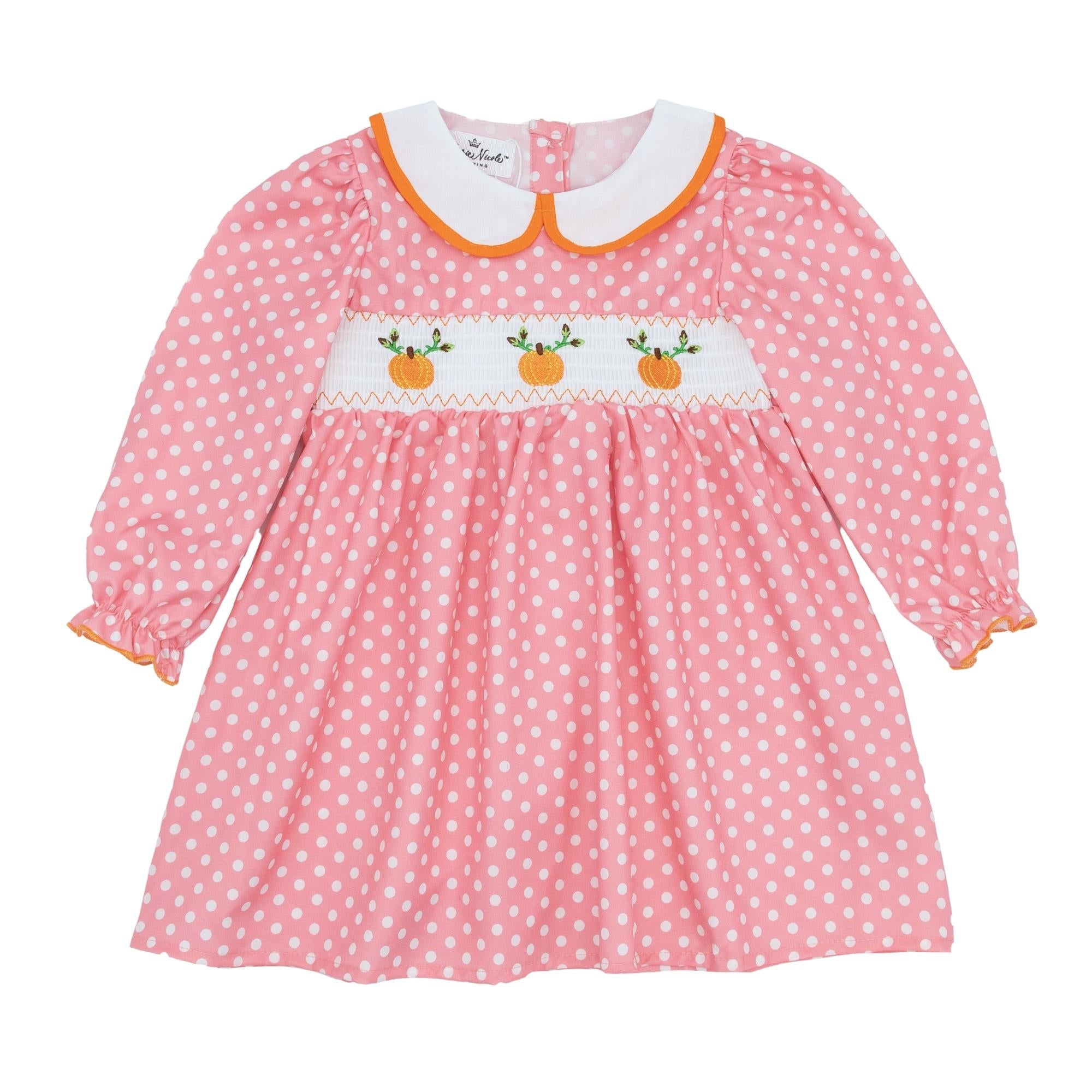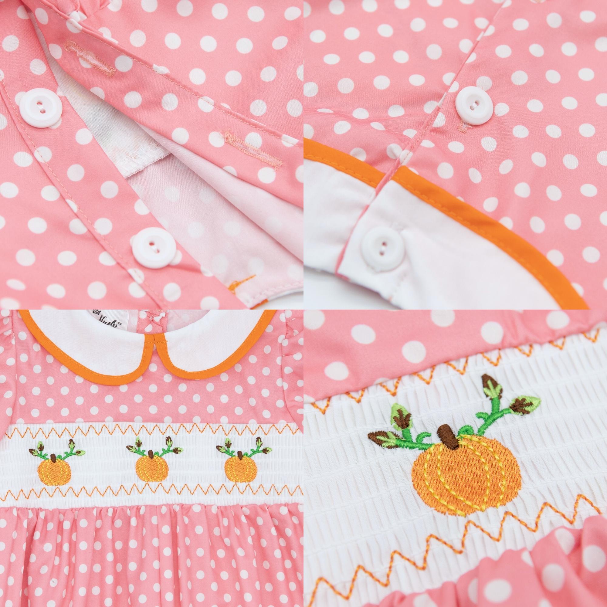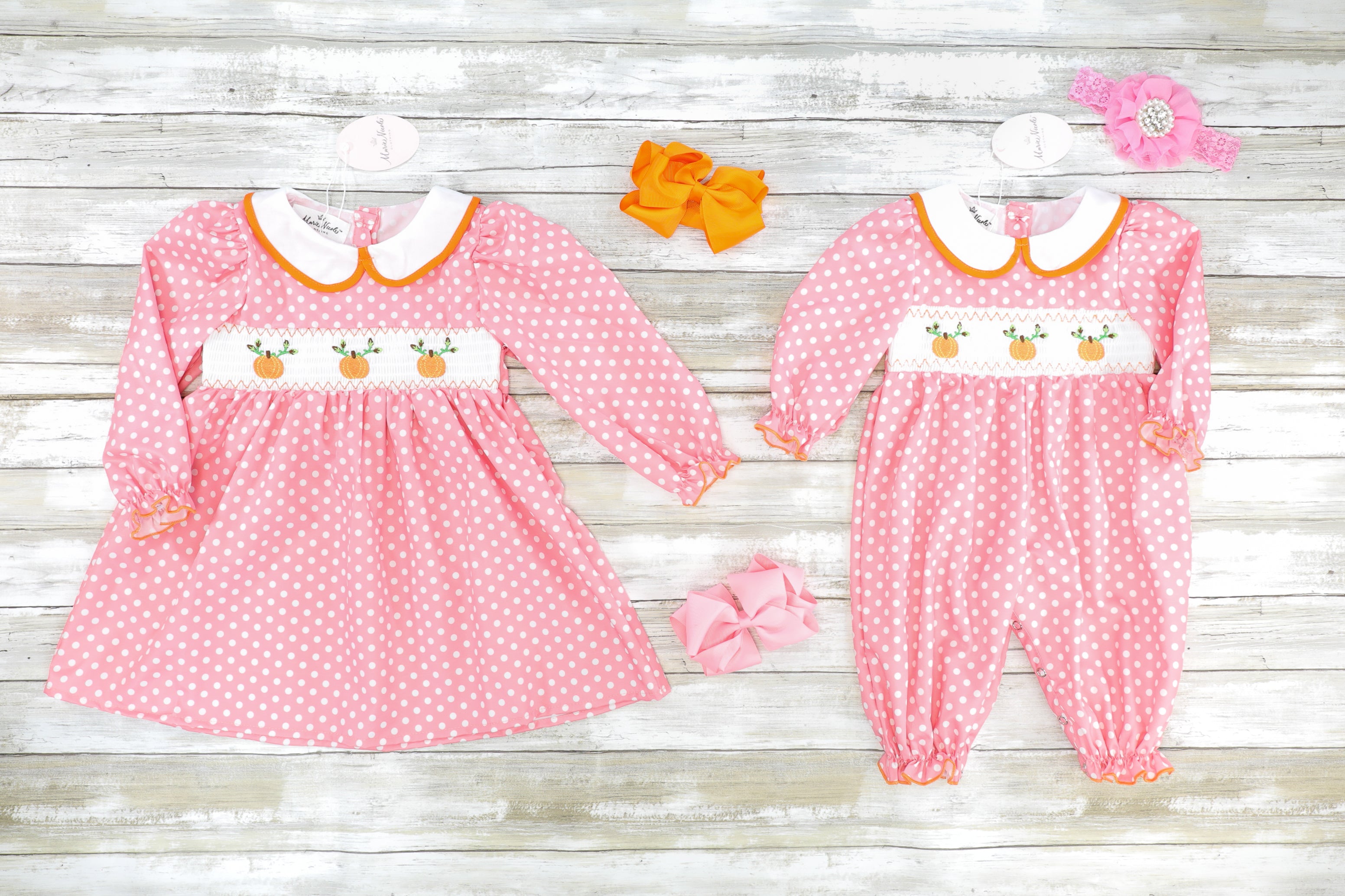Home › Pink Polka Dotted Smocked Pumpkin Sister Set