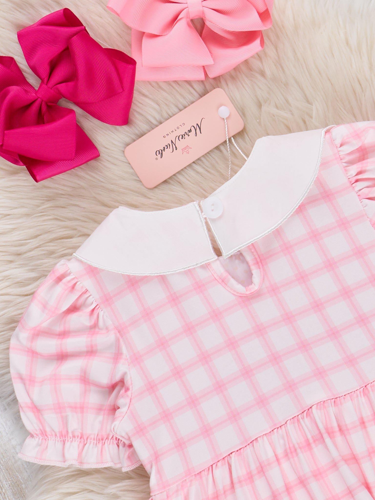 Pink Smocked Crosses Ruffle Bubble