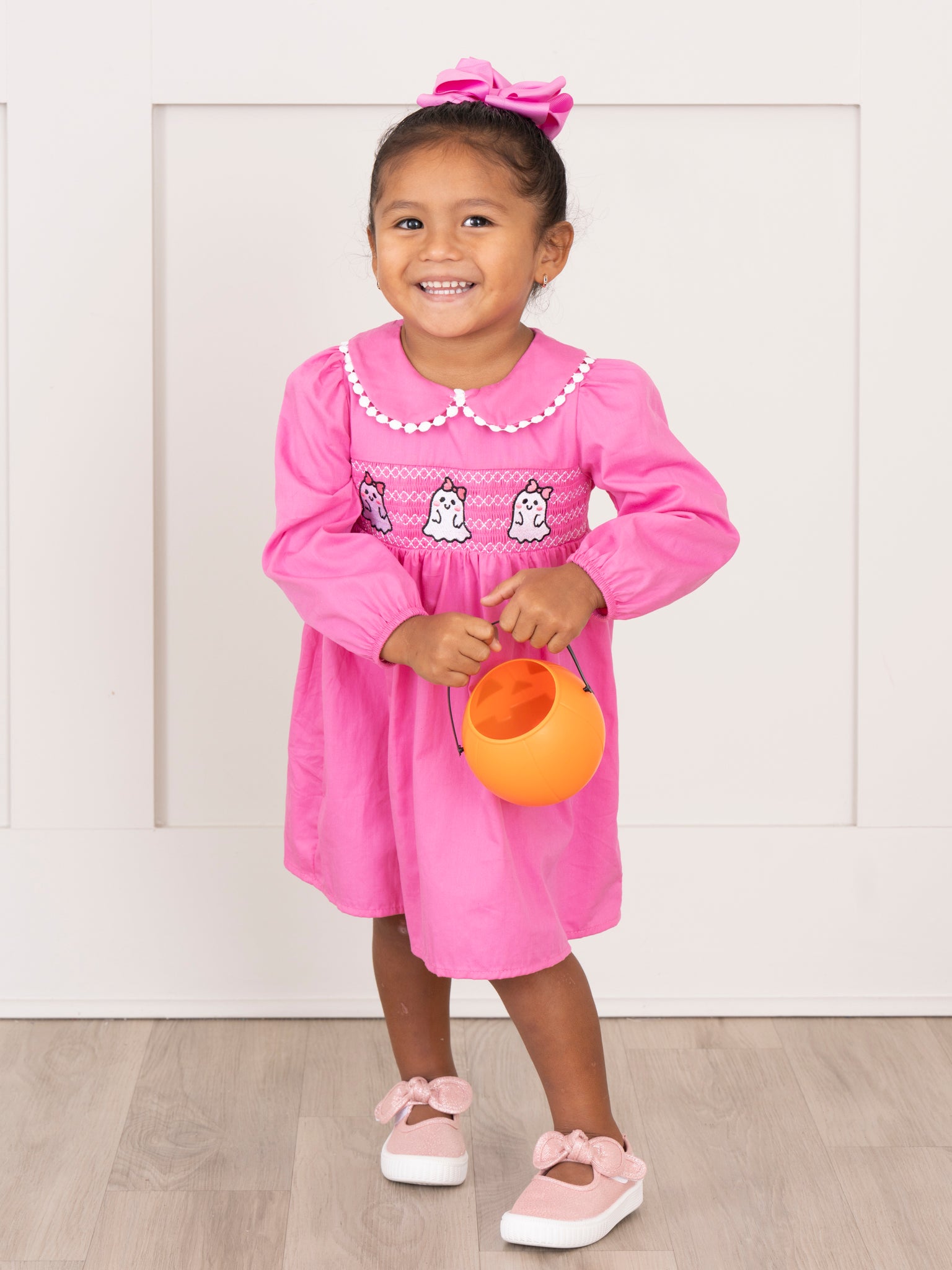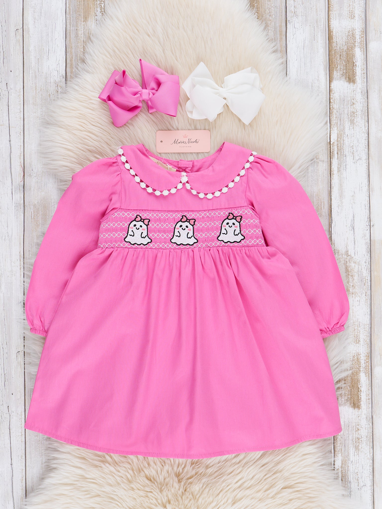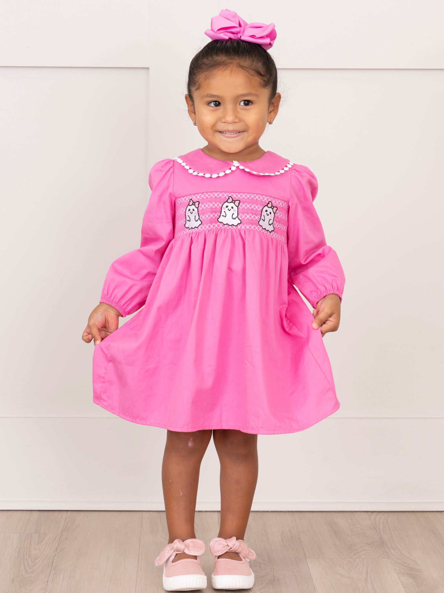 Home › Pink Smocked Ghosts Sister Set