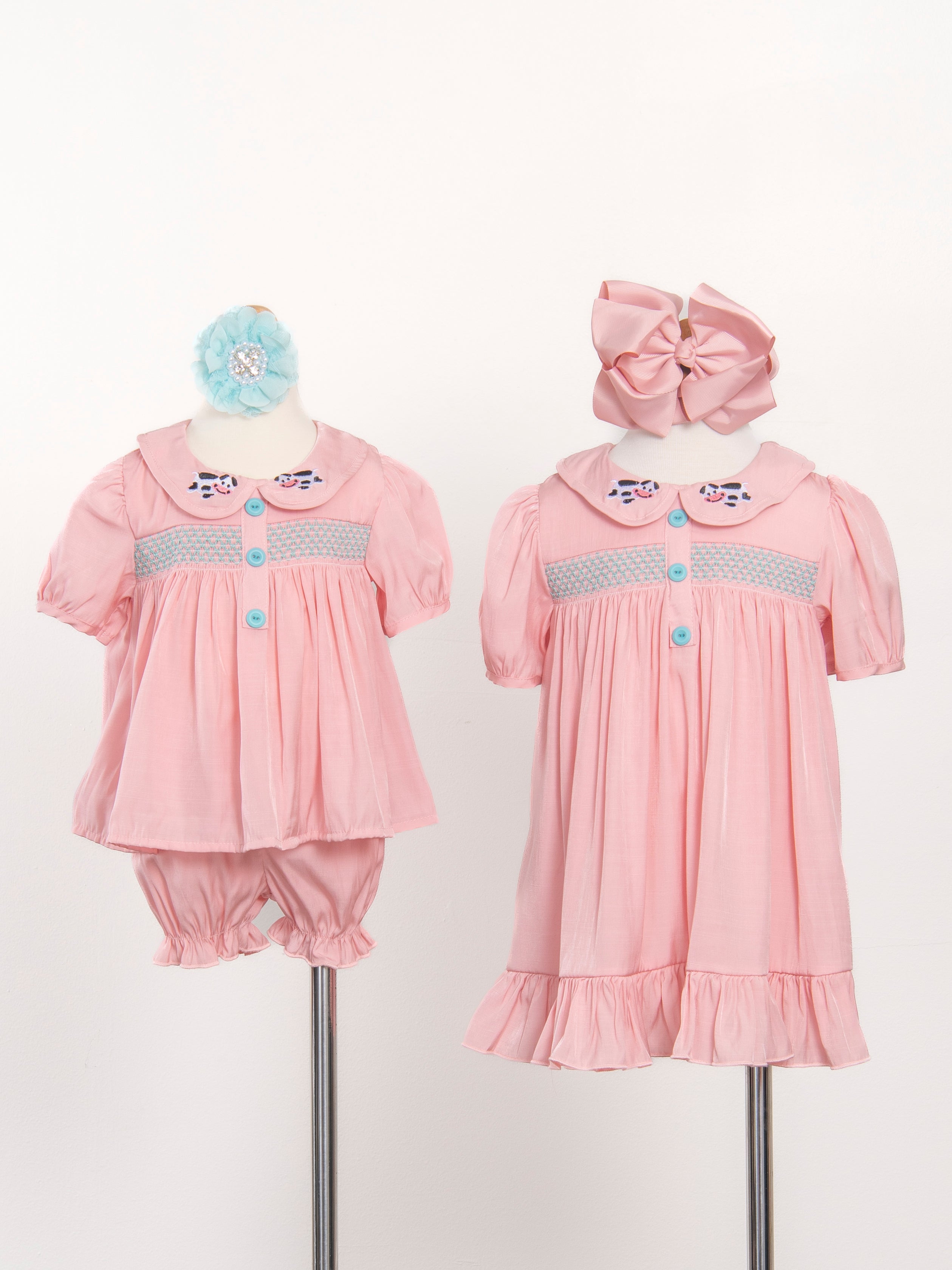 Home › Pink Smocked Vintage Cow Sister Set