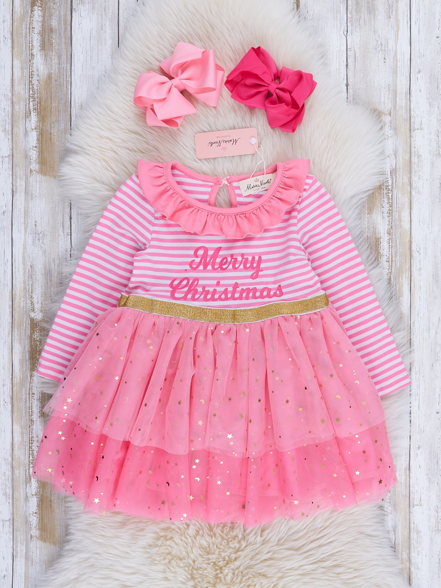 Home › Pink Stripe Embroidered "Merry Christmas" Tulle Sister Set